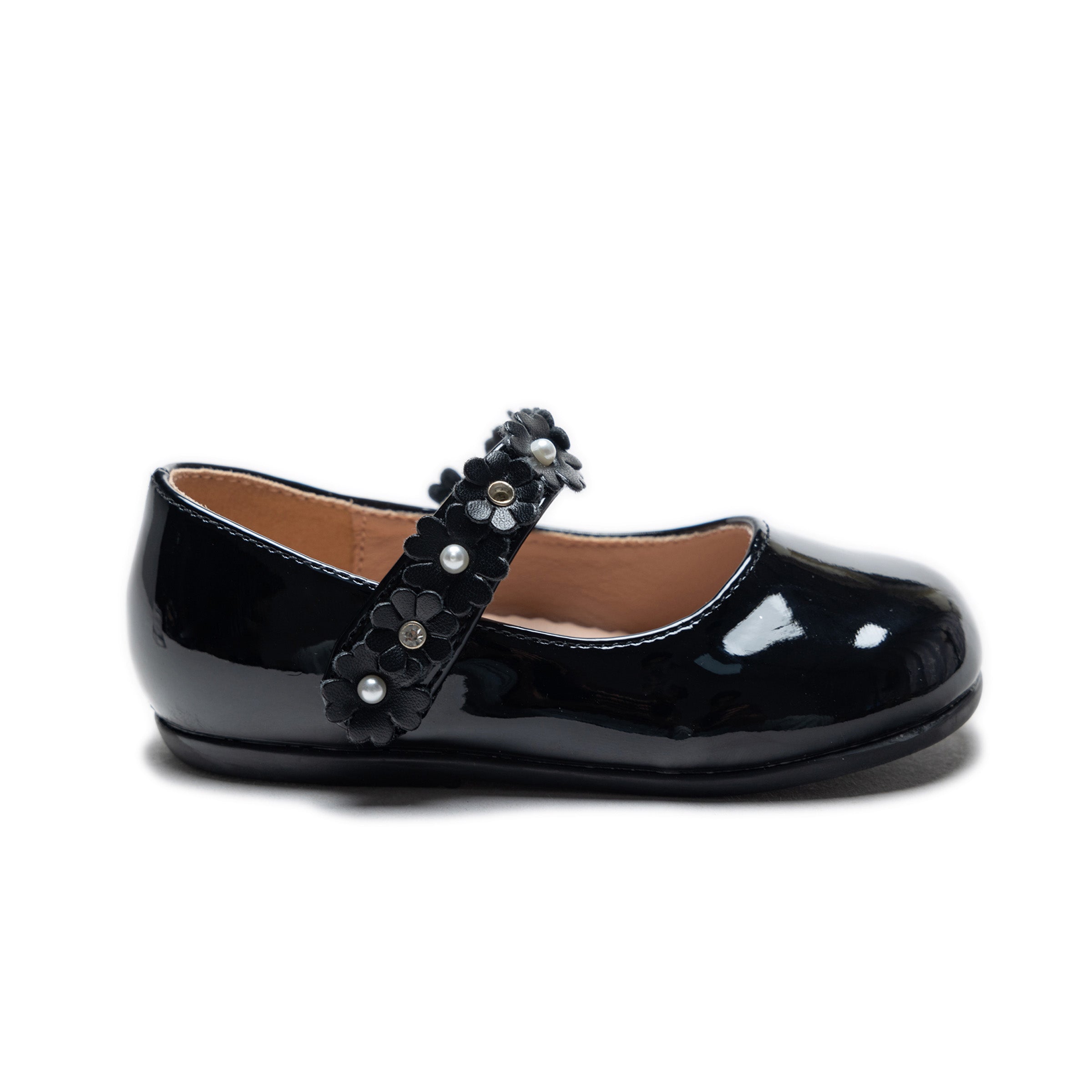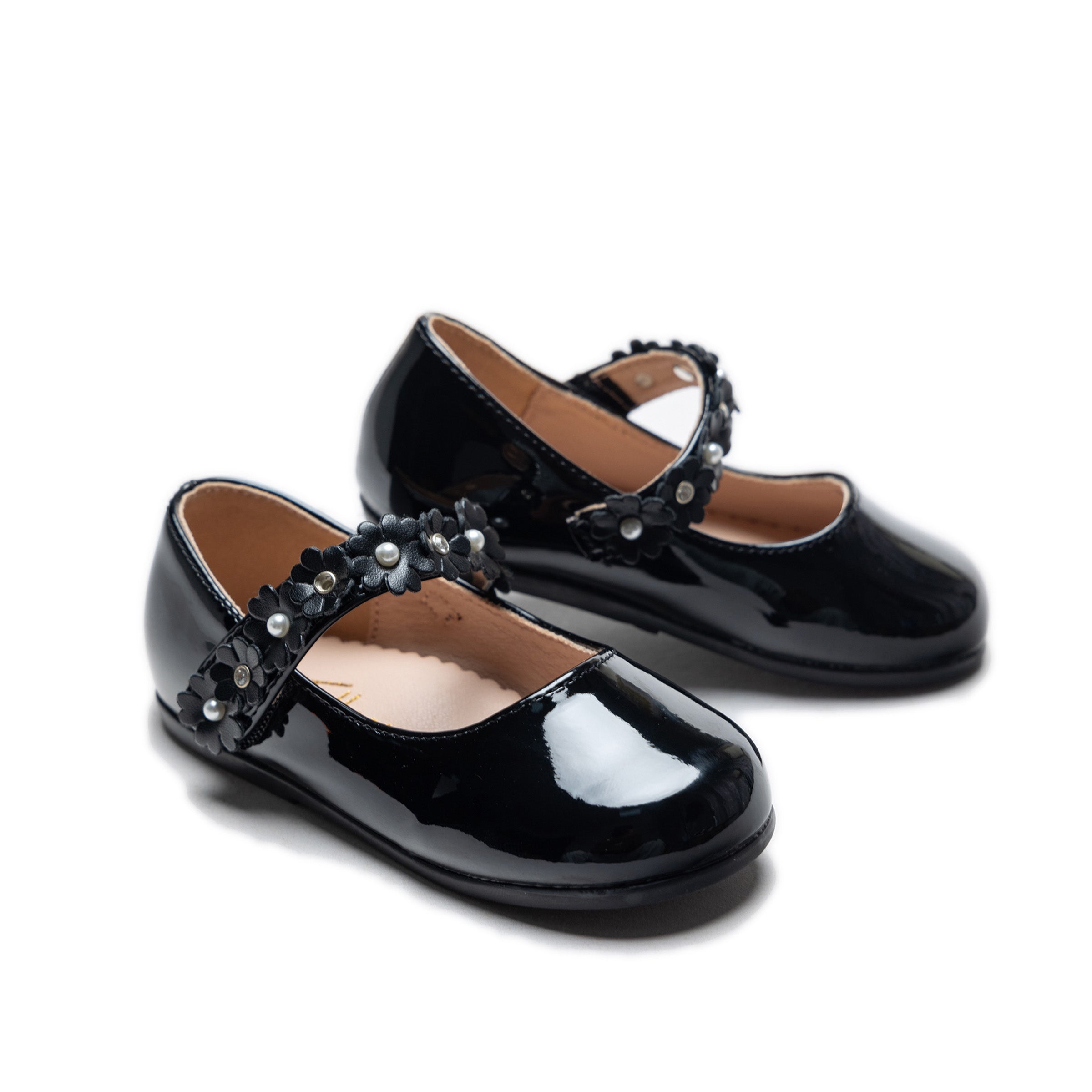 The Black Amelia Floral Band Flats by Tulleen exude bold elegance with their sleek black satin finish. The standout floral garland embossed with pearls along the band adds a touch of refined beauty, making these flats a unique and striking choice.