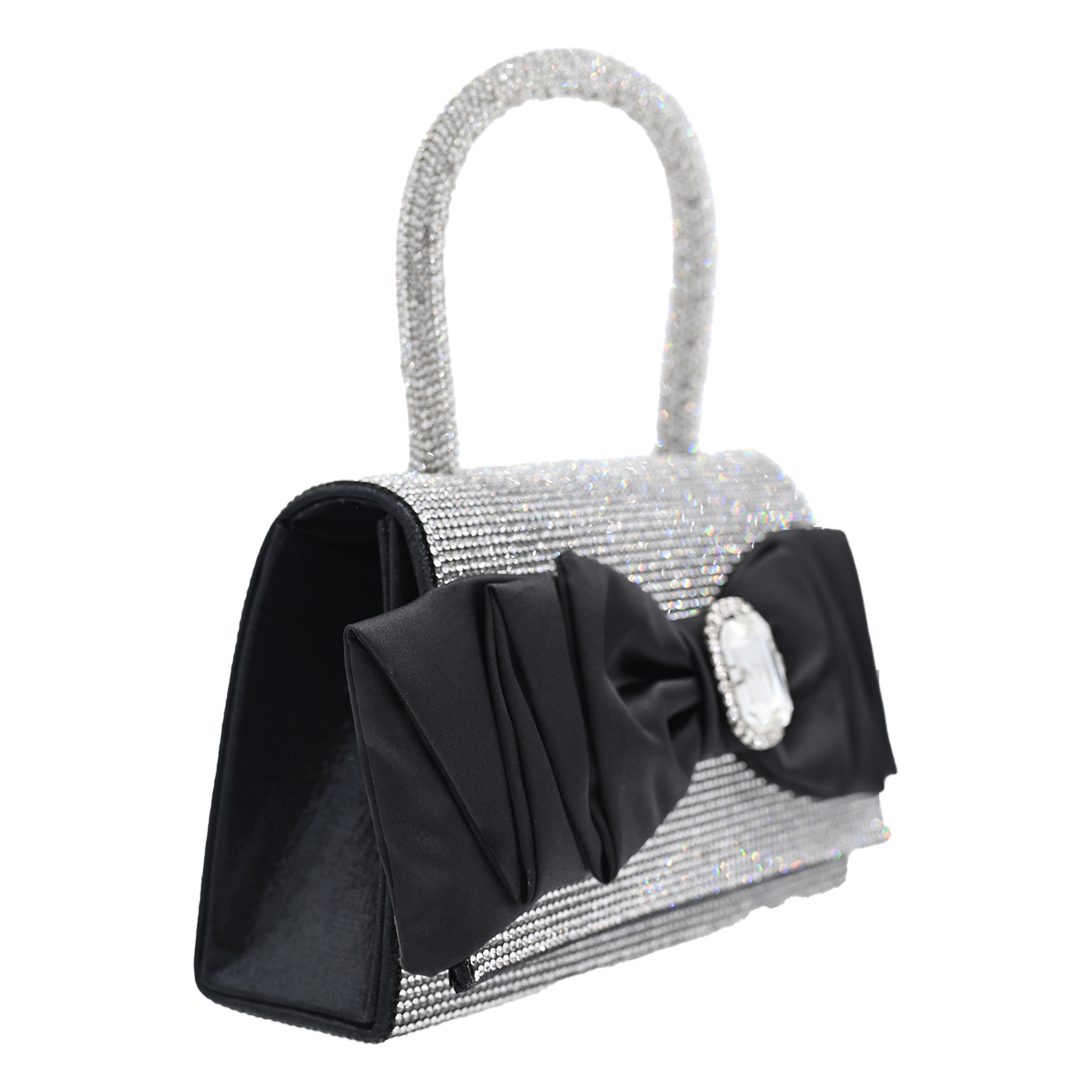 The Black Bow Accented Silver Rhinestone Handbag by Mimi Tutu is the perfect combination of timeless elegance and youthful flair, making it an irresistible addition to a young fashion enthusiast’s wardrobe.