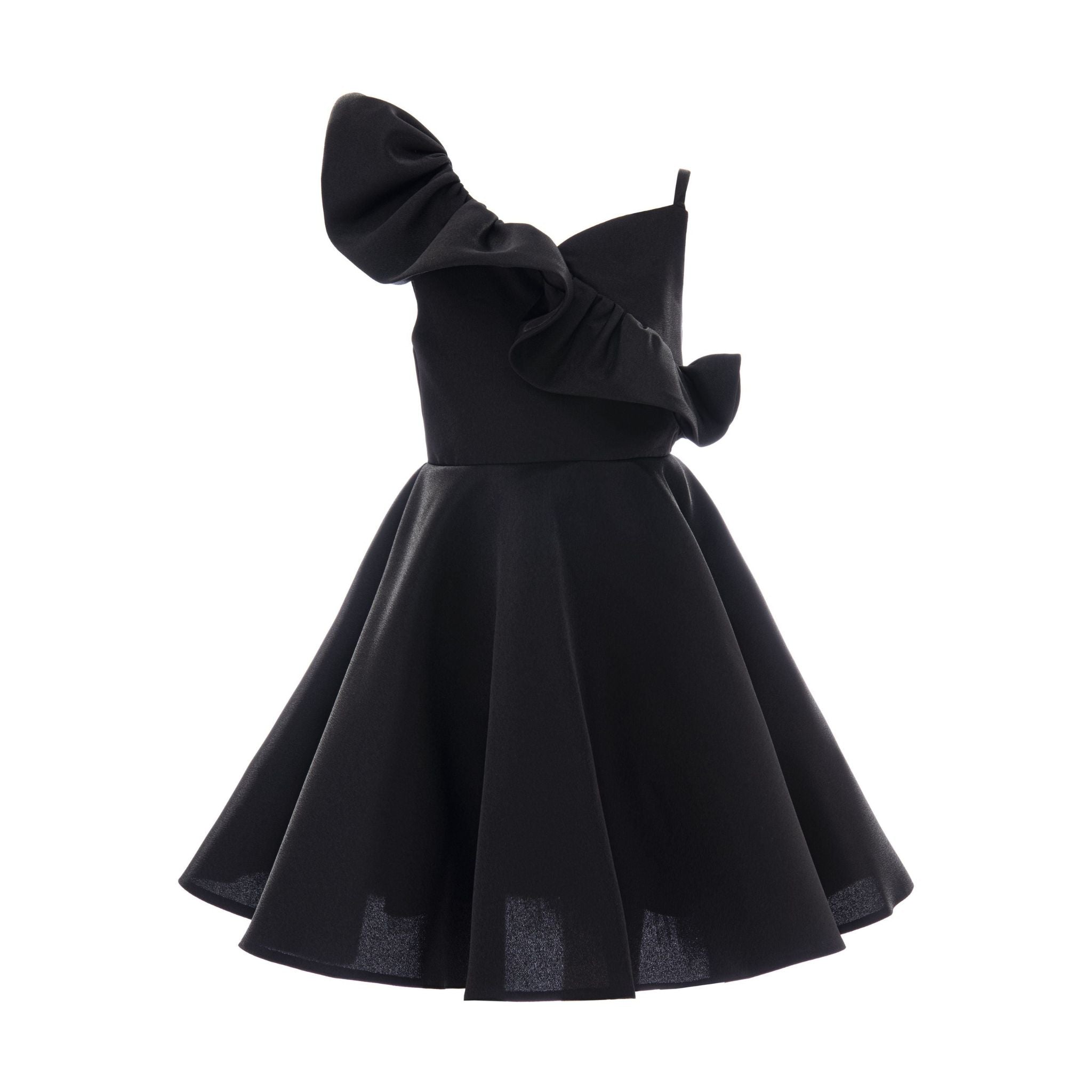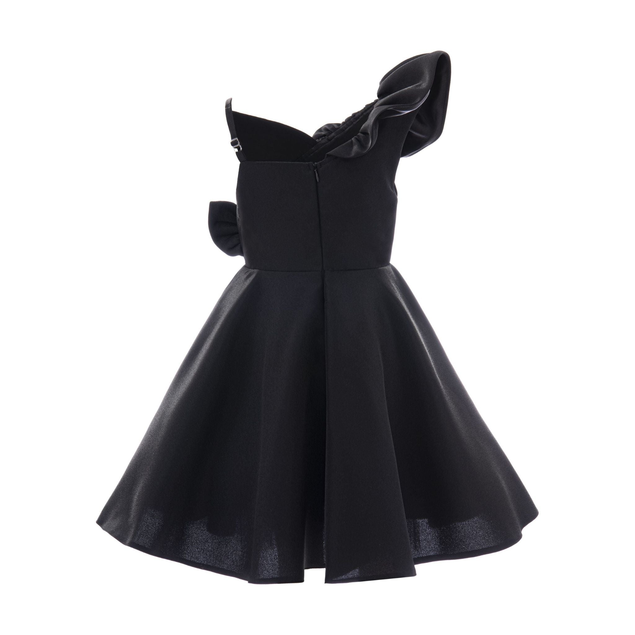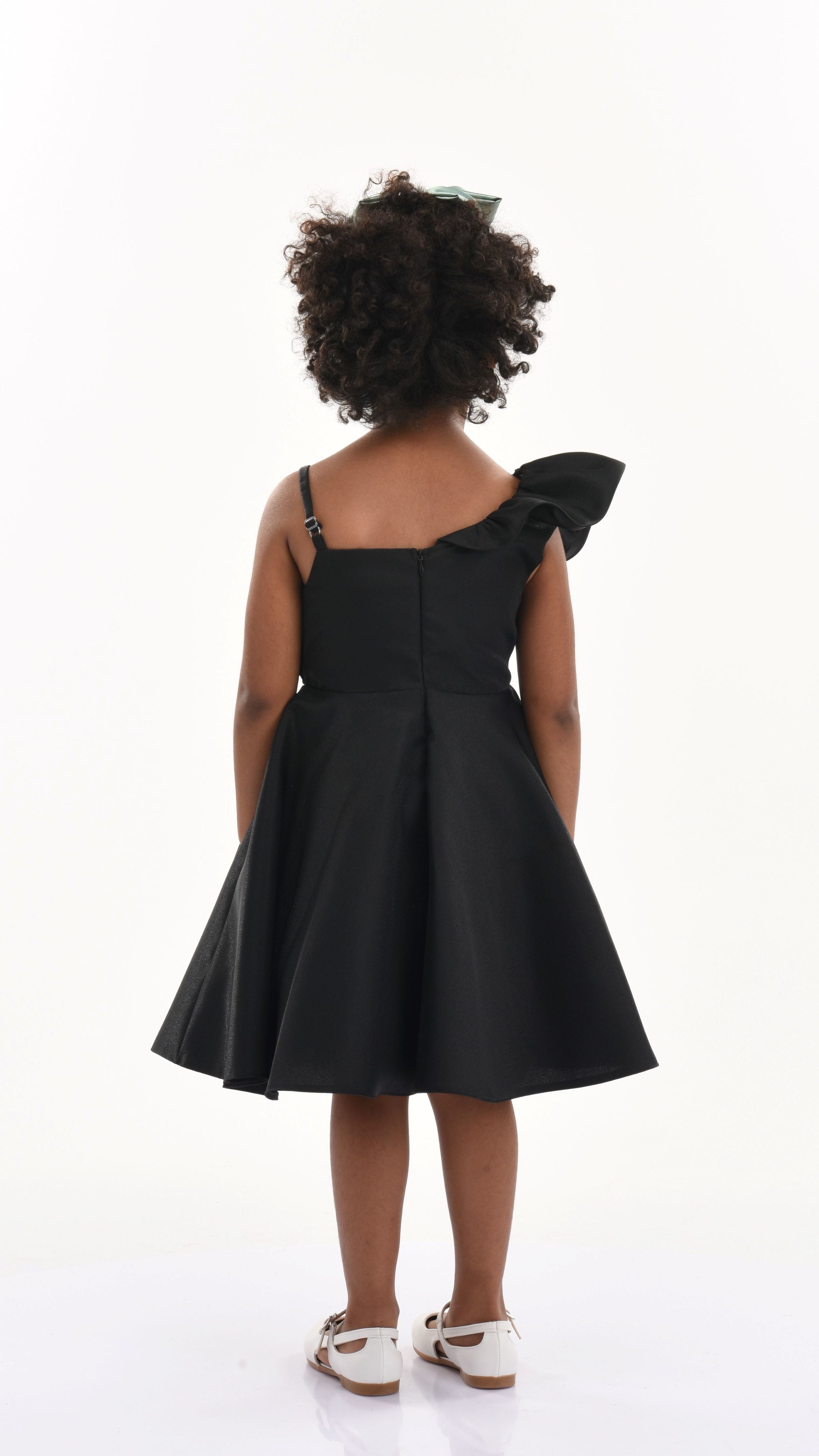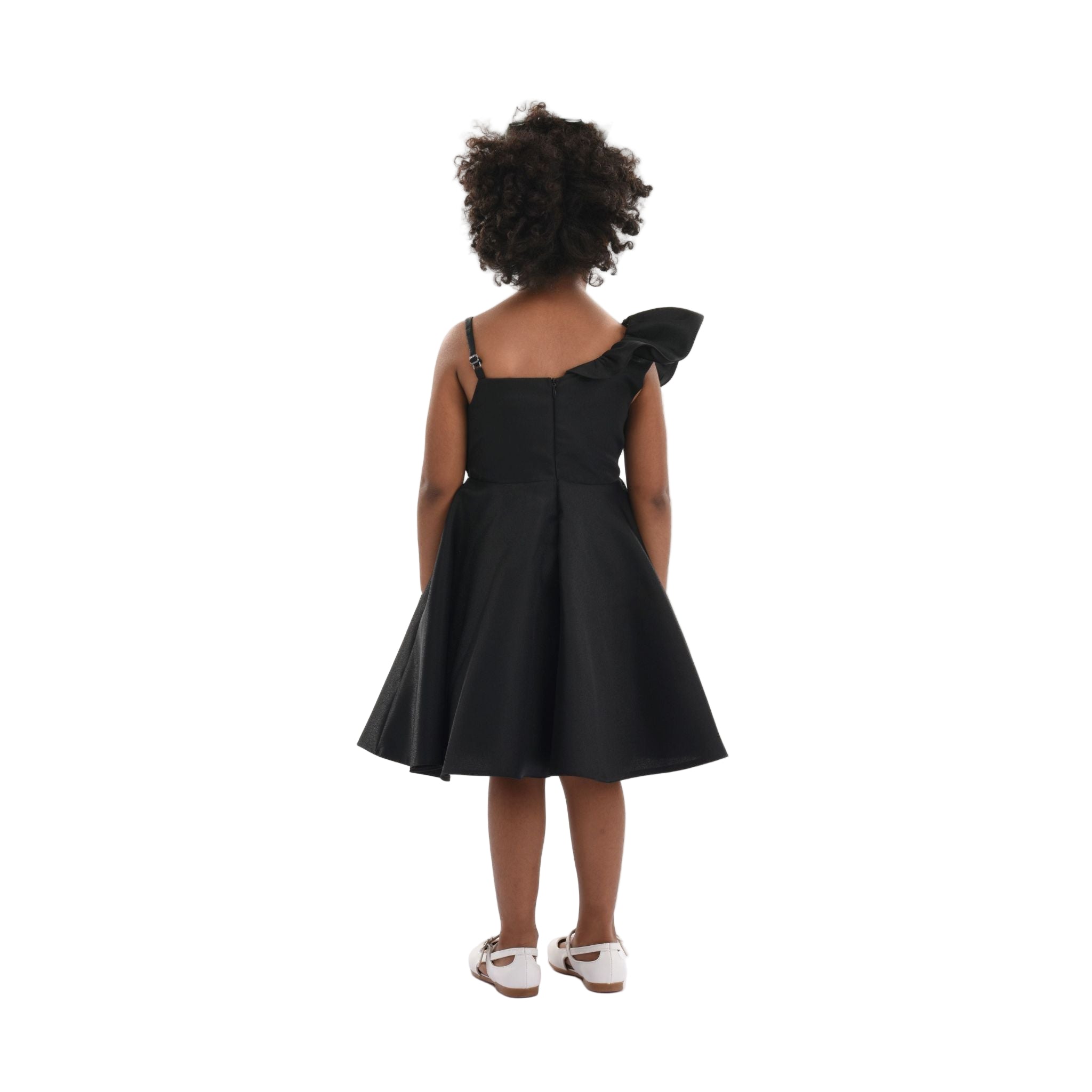 The Black Riviera Off Shoulder Ruffle Dress for kid girls from Tulleen effortlessly combines elegance and playfulness. This dress features an off-shoulder ruffle design, perfect for special occasions that call for glamour. The delicate ruffles cascade gracefully along the neckline, adding a playful flair.