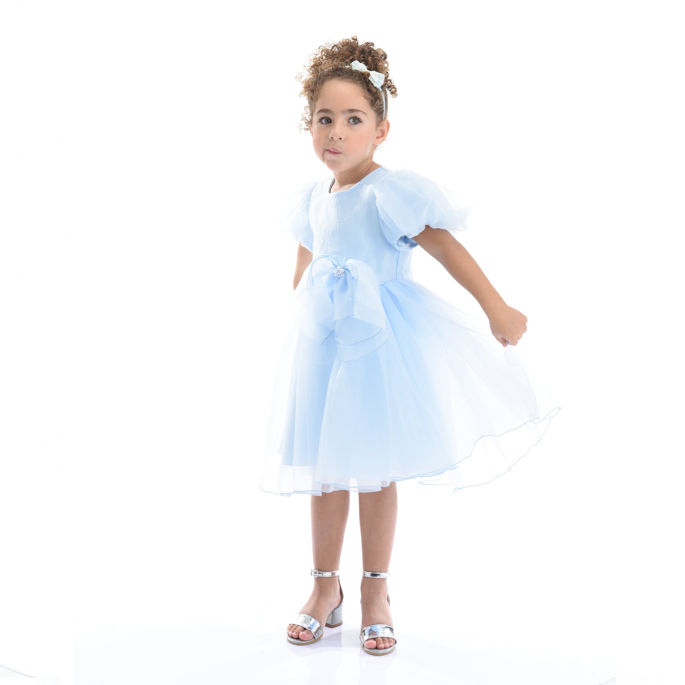 The Blue Bow Organza Puff Shoulder Dress for kid girls from Tulleen combines elegance and charm, making it perfect for any special occasion. This dress features a blue lightweight tulle teacup organza design, ensuring comfort and freedom of movement. The puffy lightweight shoulders add a touch of sophistication and whimsy.