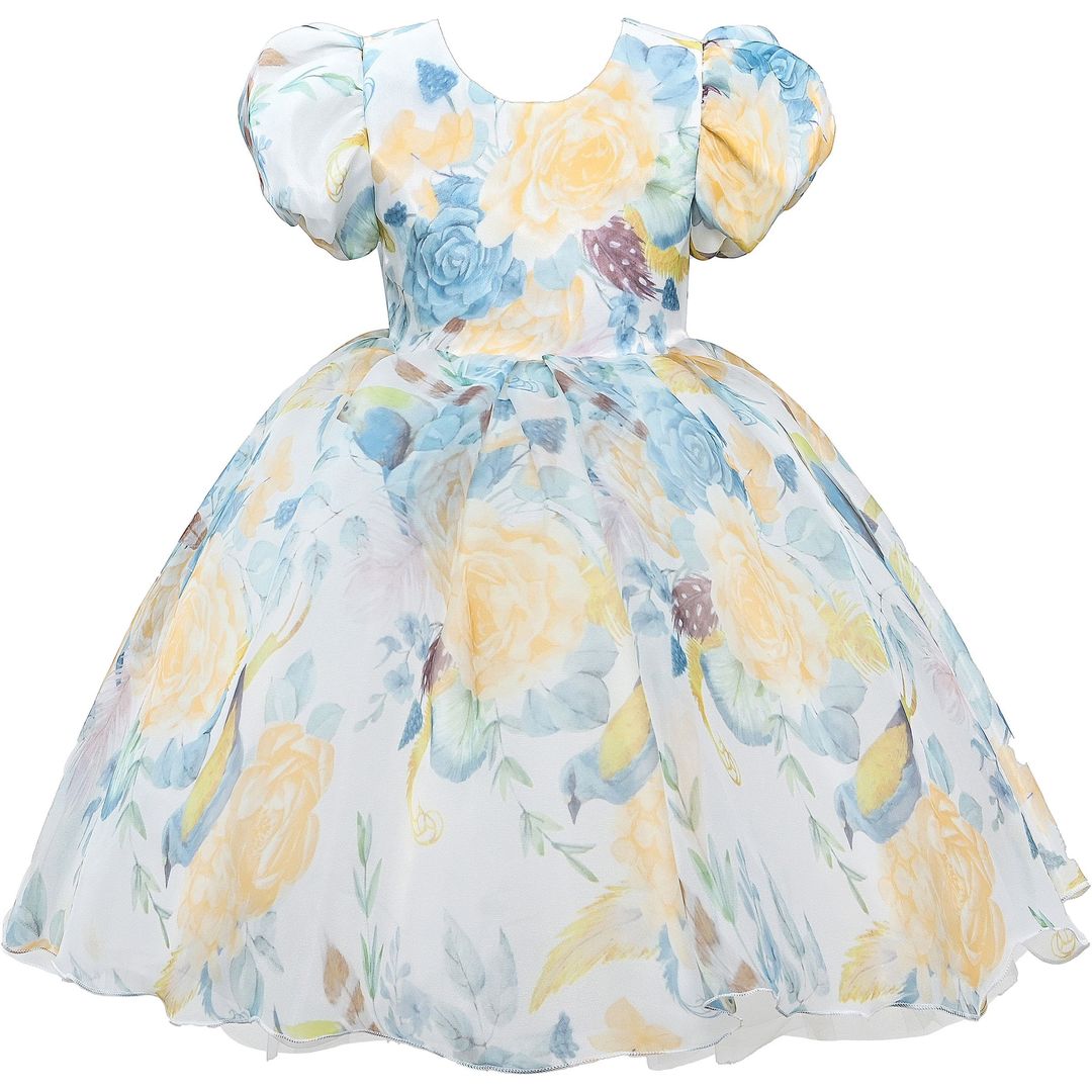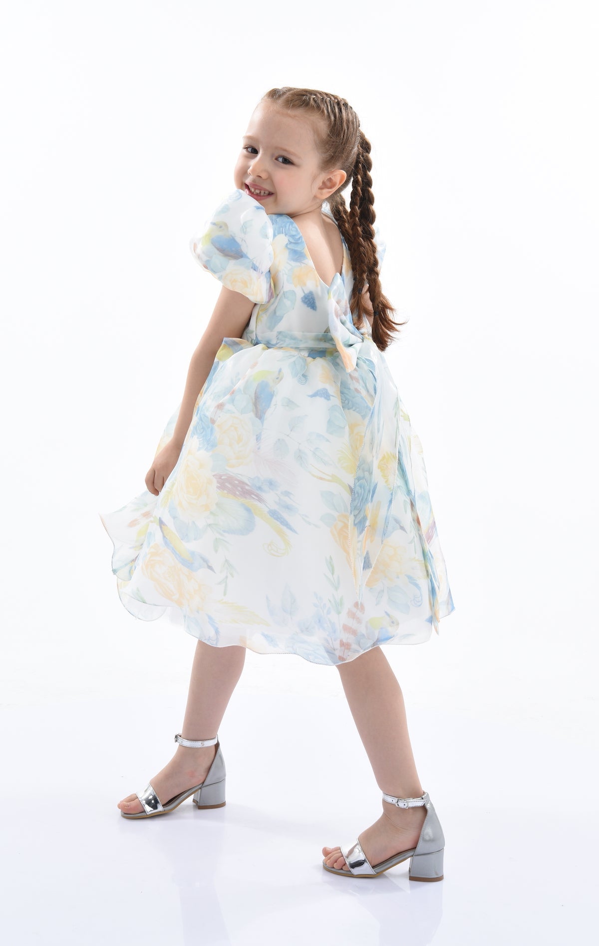 The Blue Chablis Floral Garden Organza Dress for girls from Tulleen is a stunning choice for any special occasion. This dress features a classic round neck that exudes timeless charm while providing comfort for your little one. Additionally, the adorable puff shoulders add a touch of volume and grace, enhancing the overall elegance of the dress.