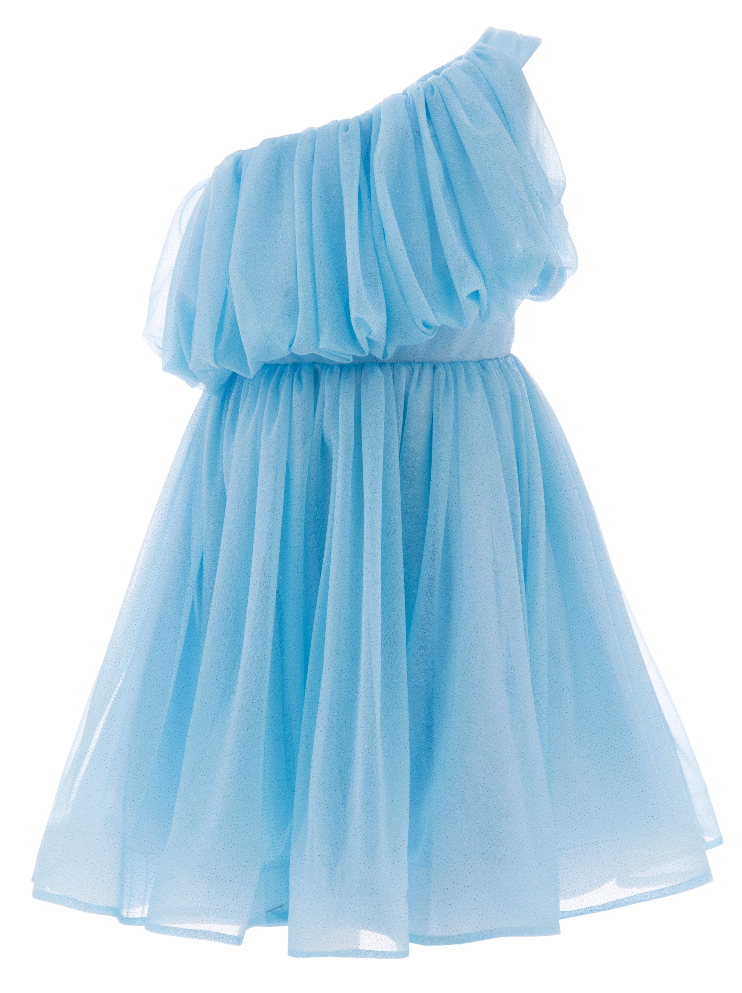 The Blue Izorah Off Shoulder Glitter Tulle Dress for kid girls from Tulleen is a captivating piece perfect for any special occasion. This dress features an off-shoulder design with a delicate tulle overlay, adding a touch of elegance and sophistication. The high waist lightweight tulle skirt flows gracefully, creating a beautiful and enchanting silhouette.