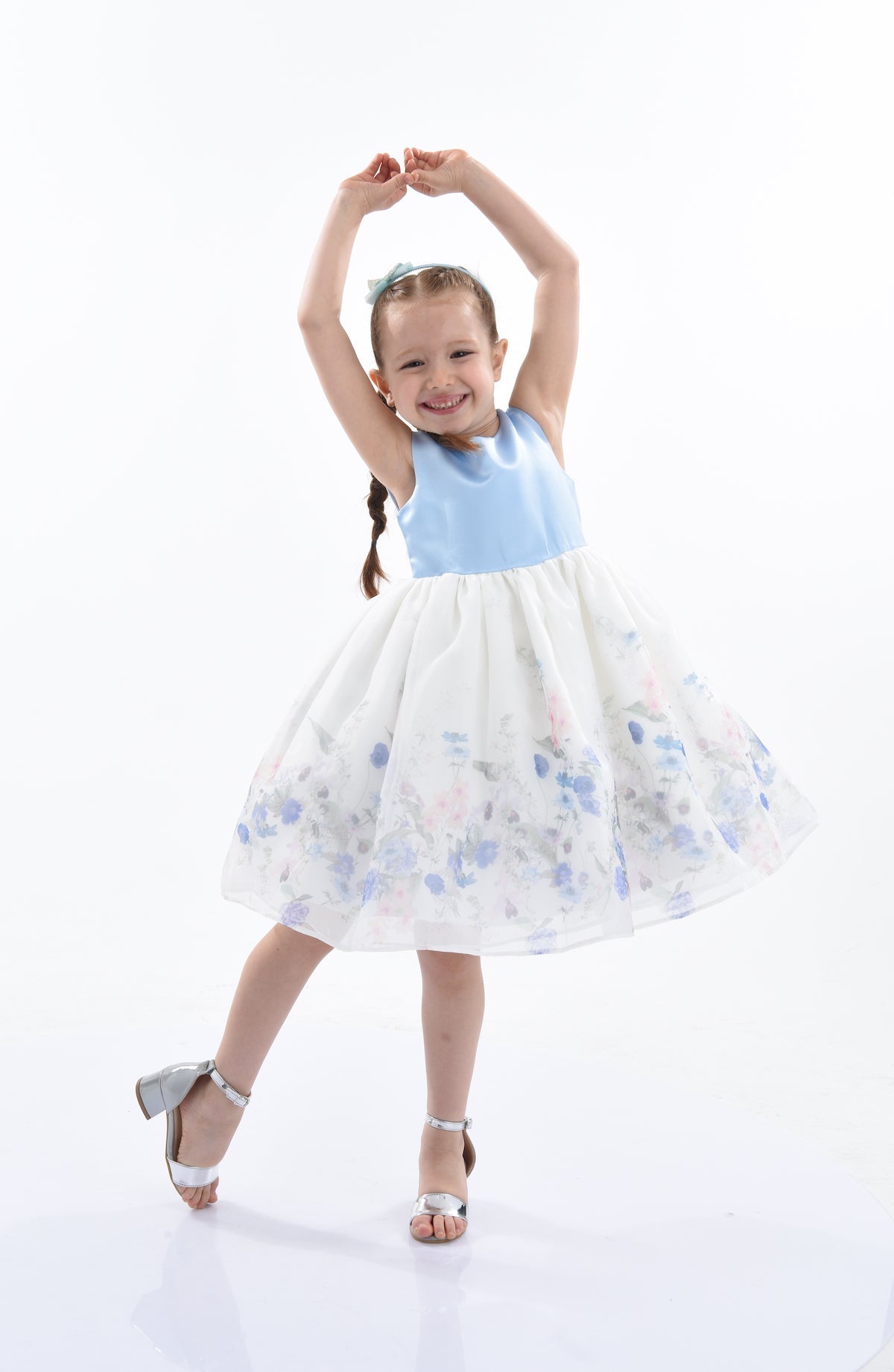 The Blue Mabel Floral Garden Organza Dress combines elegance, comfort, and enchanting design elements, making it a perfect addition to any young girl's wardrobe. This dress ensures your child looks and feels special at any event.