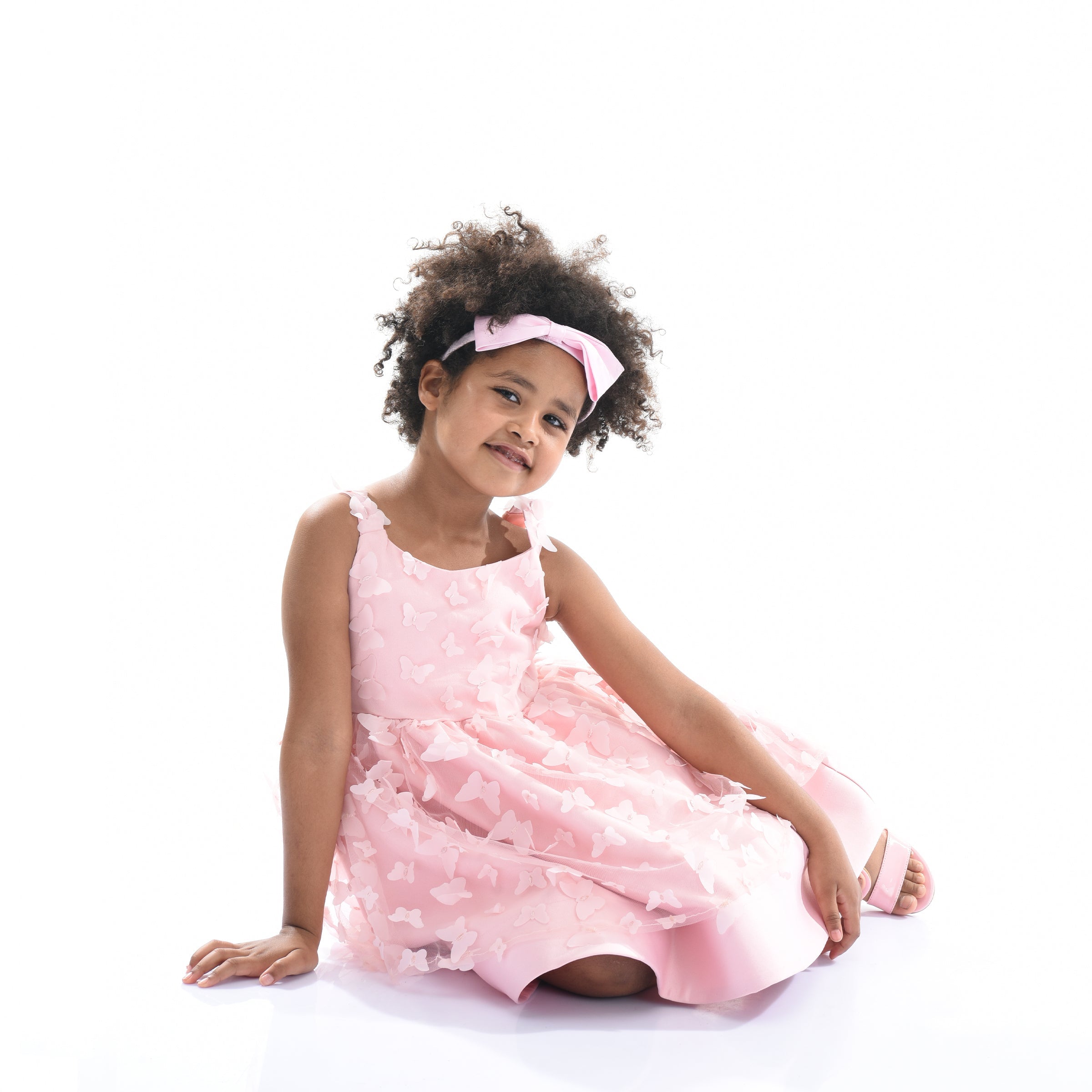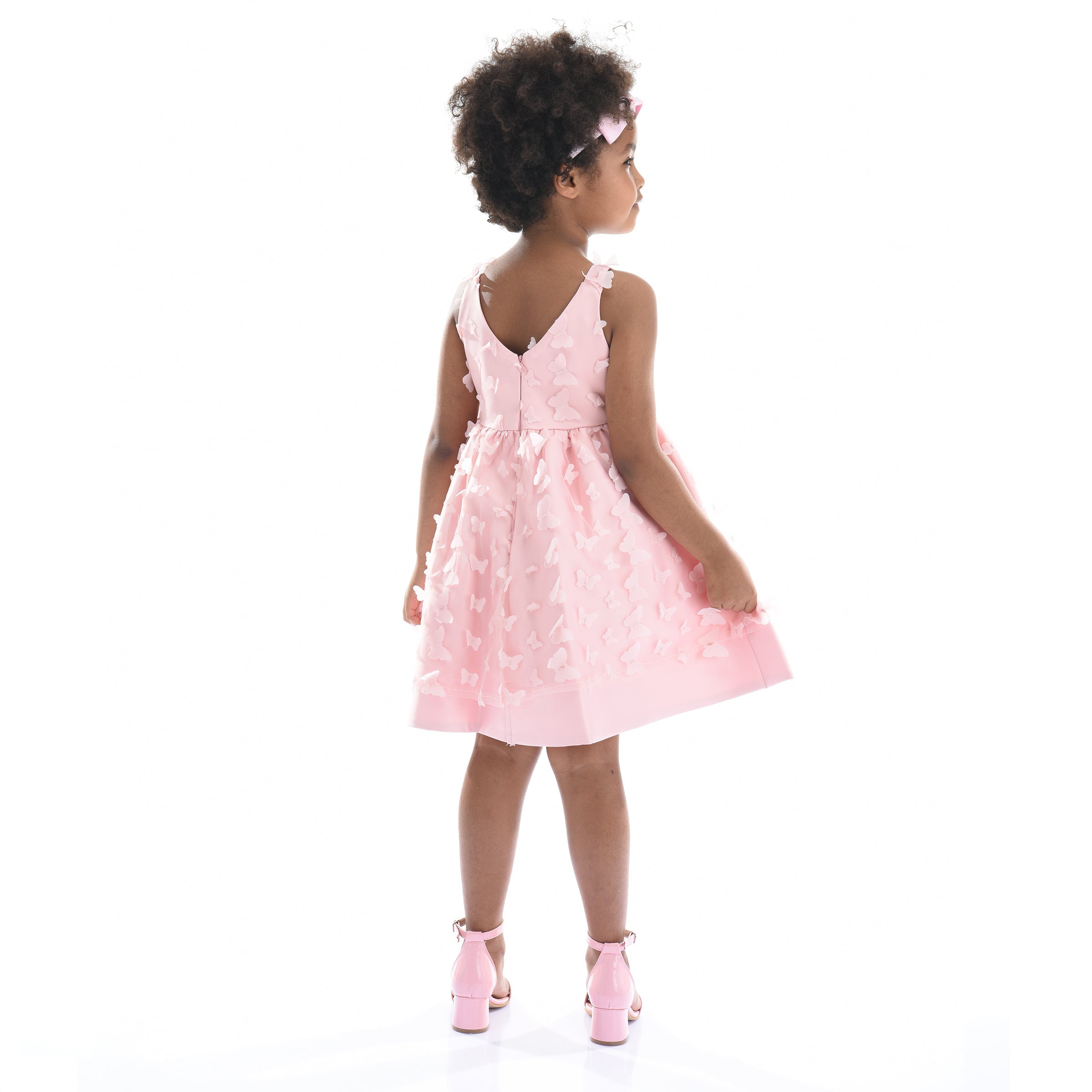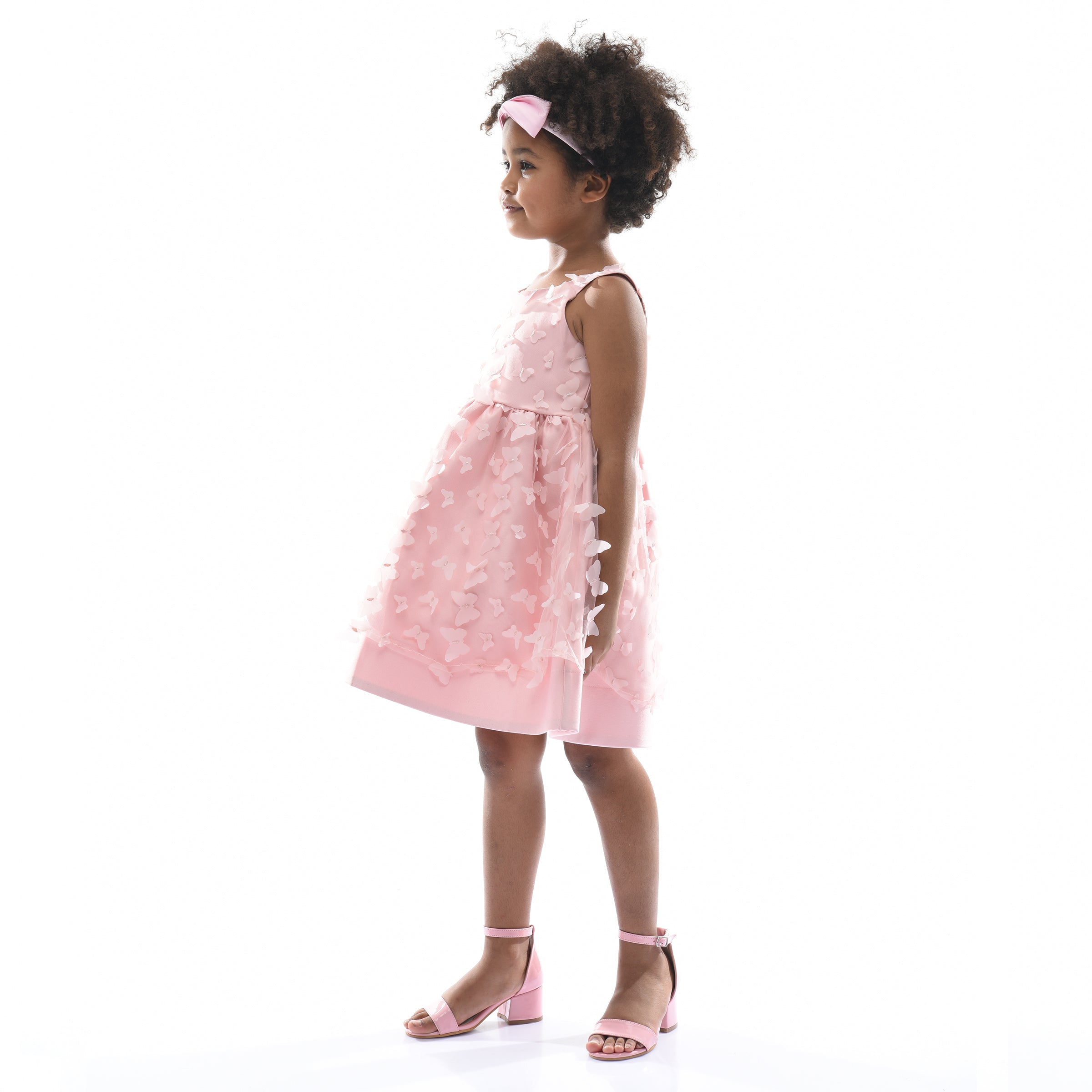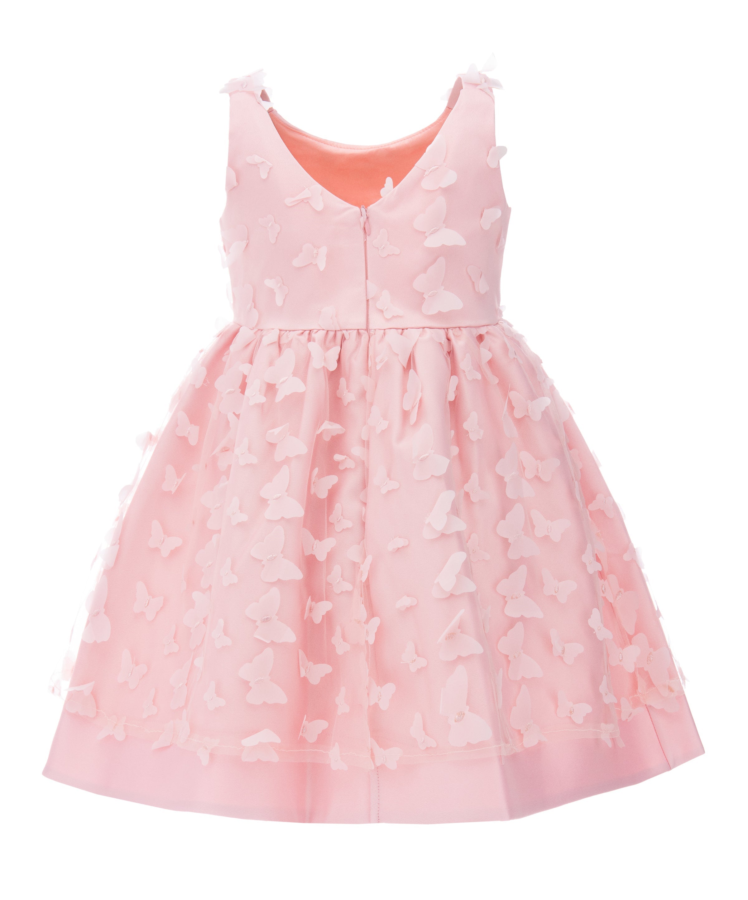 The Blush Mariposa Tulle Dress for kid girls from Tulleen is a charming and whimsical choice for any special occasion. This dress is decorated with 3D butterfly embellishments, adding a touch of magic and elegance. Firstly, the sleeveless cut and round neck ensure a comfortable and classic fit.