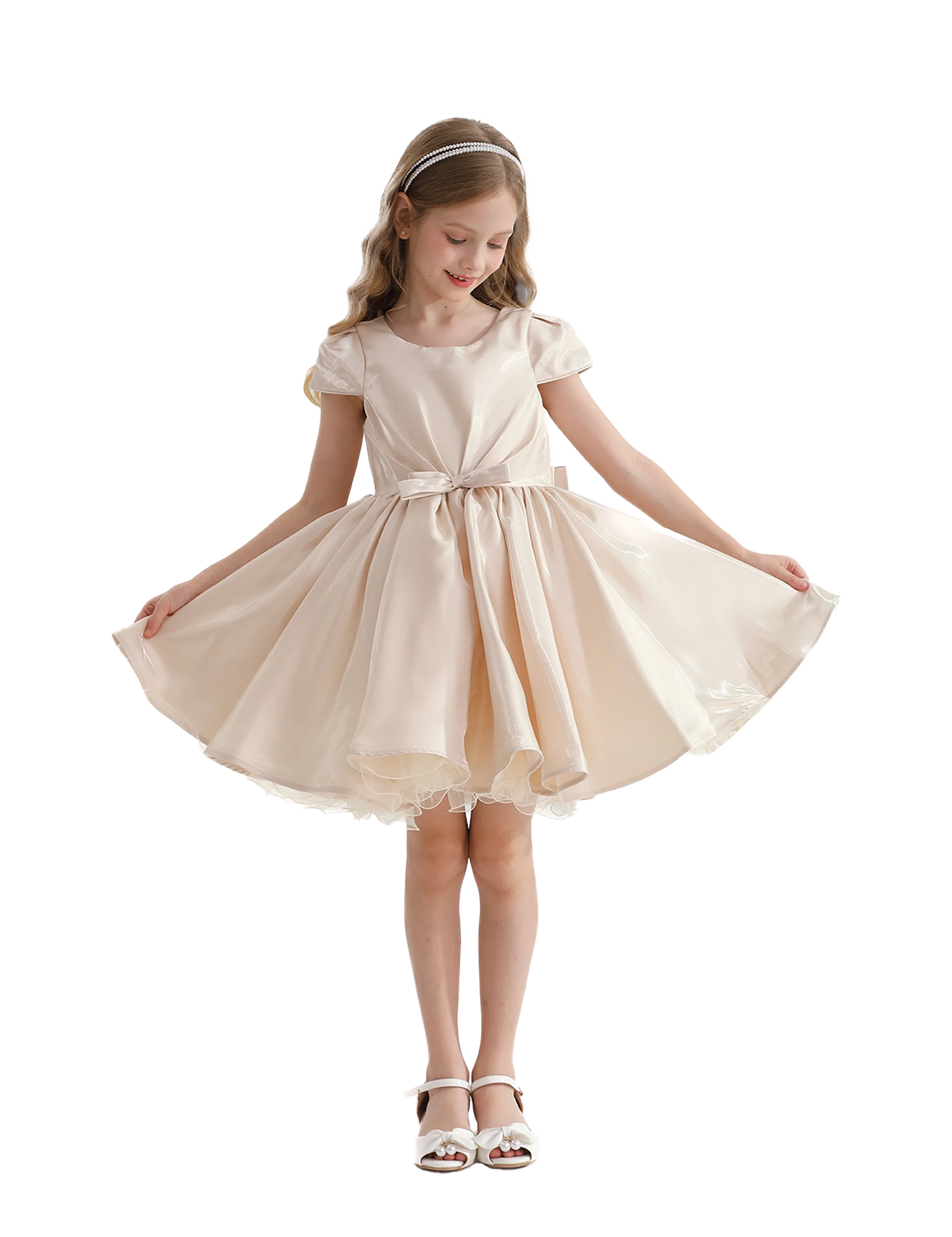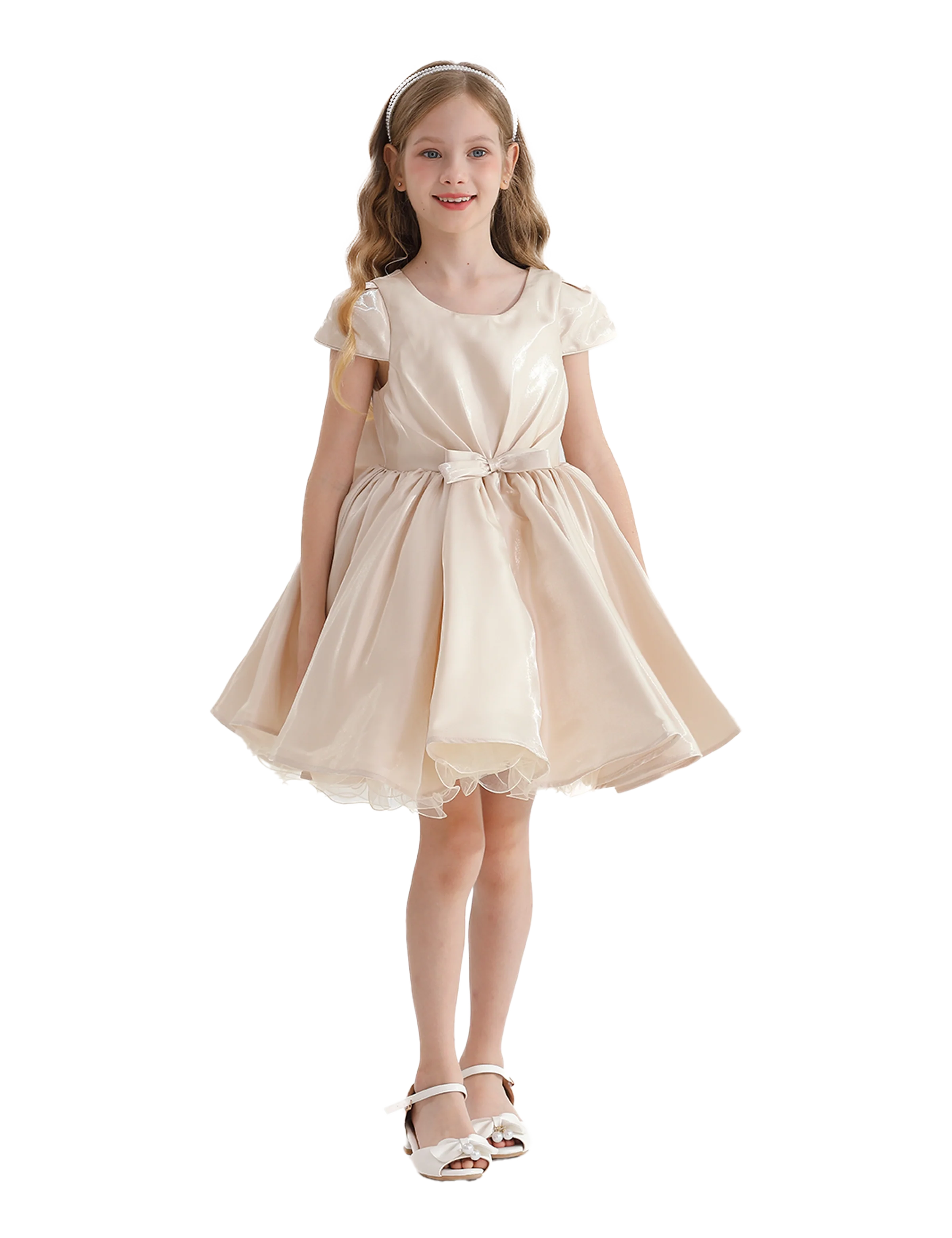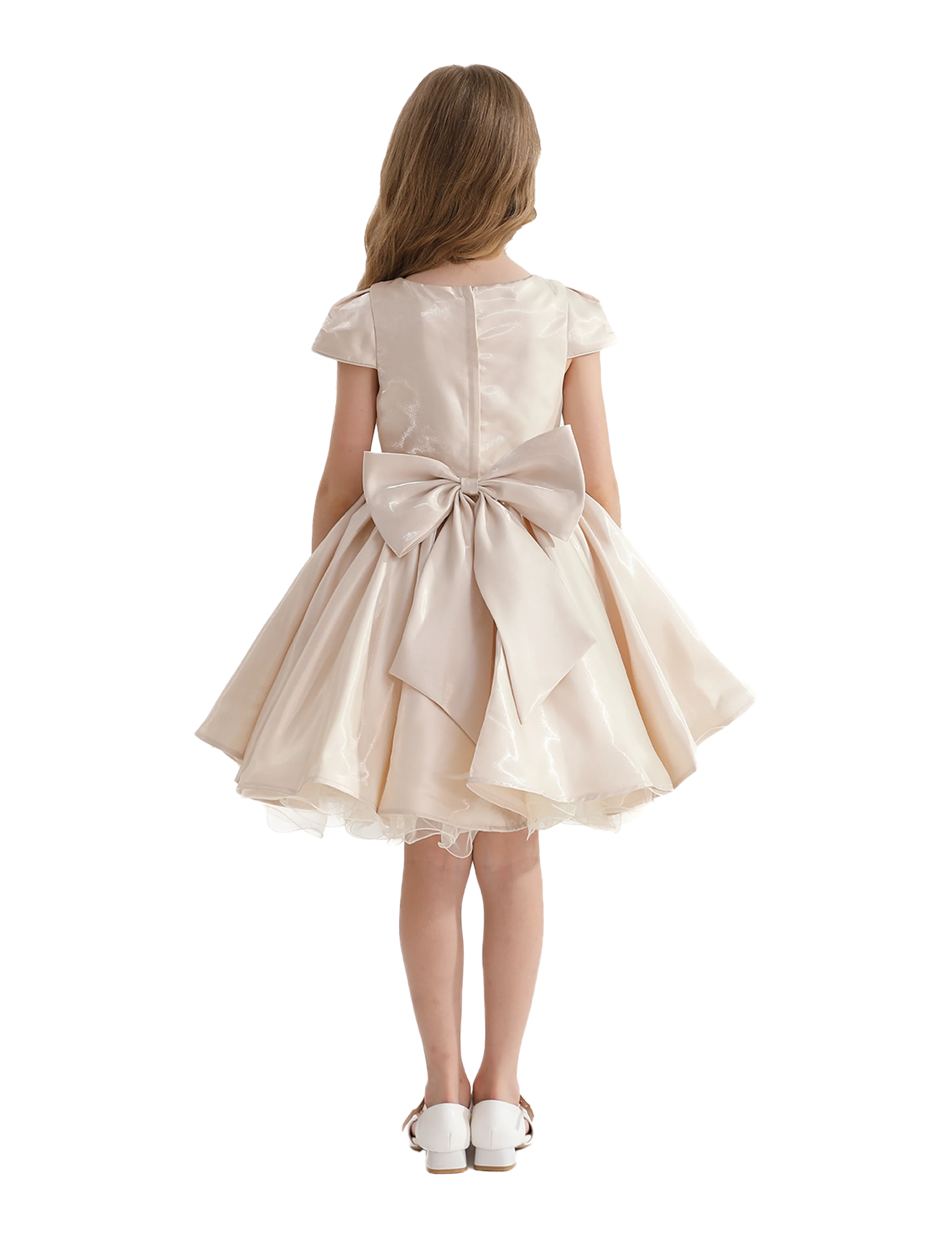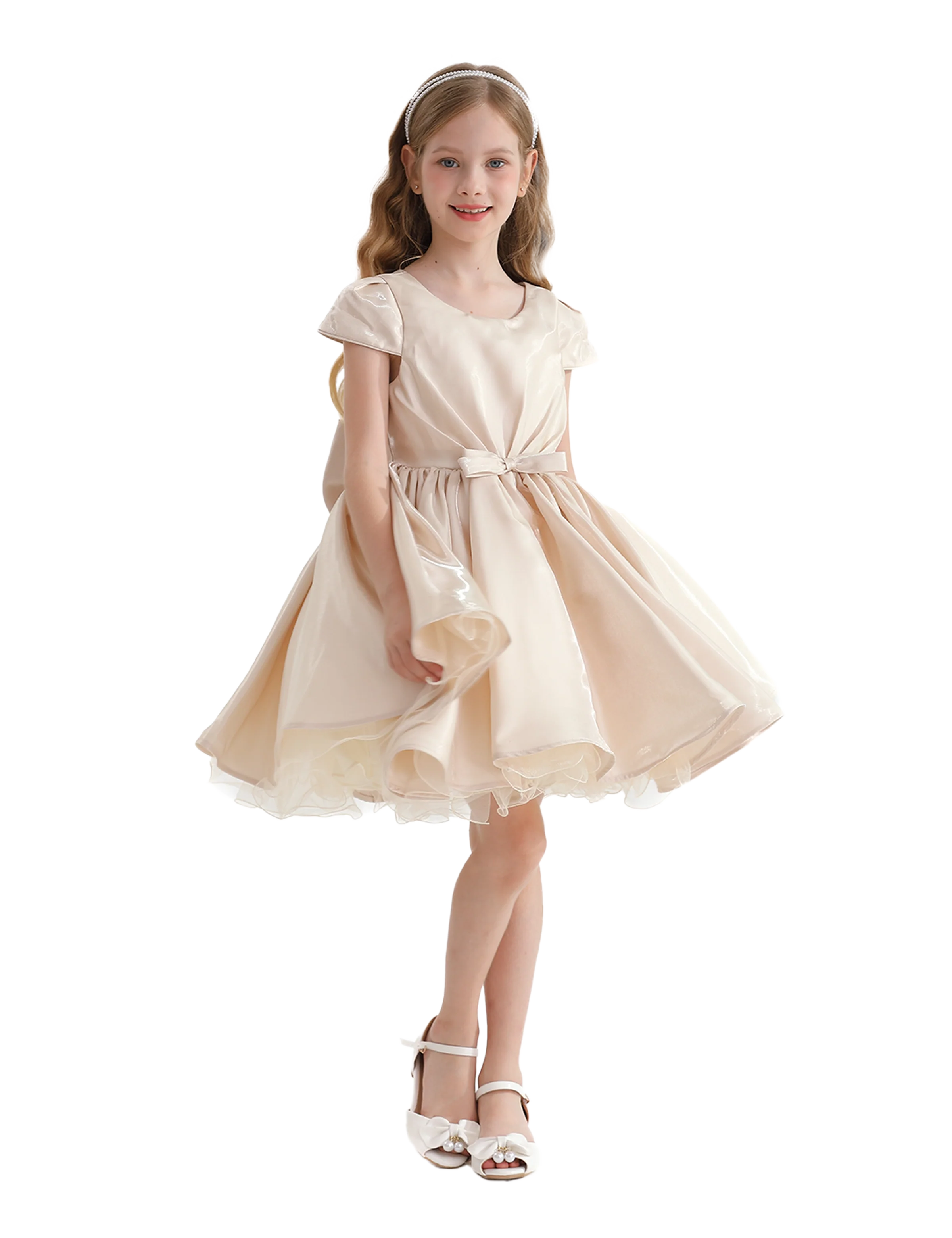 The Champagne Bow Short Solera Dress by Tulleen is the perfect choice for any young girl who loves to stand out in style, offering comfort and beauty in every step.