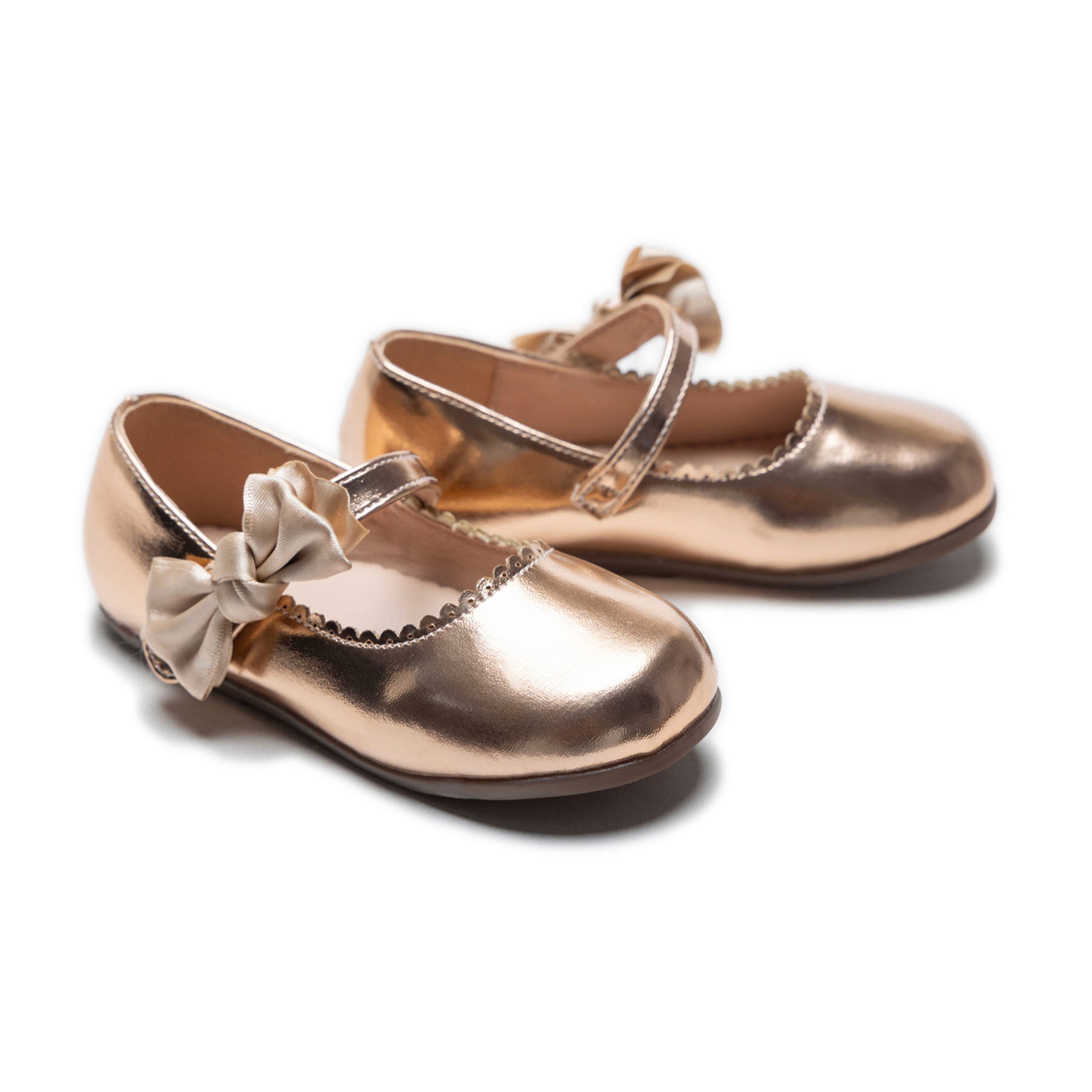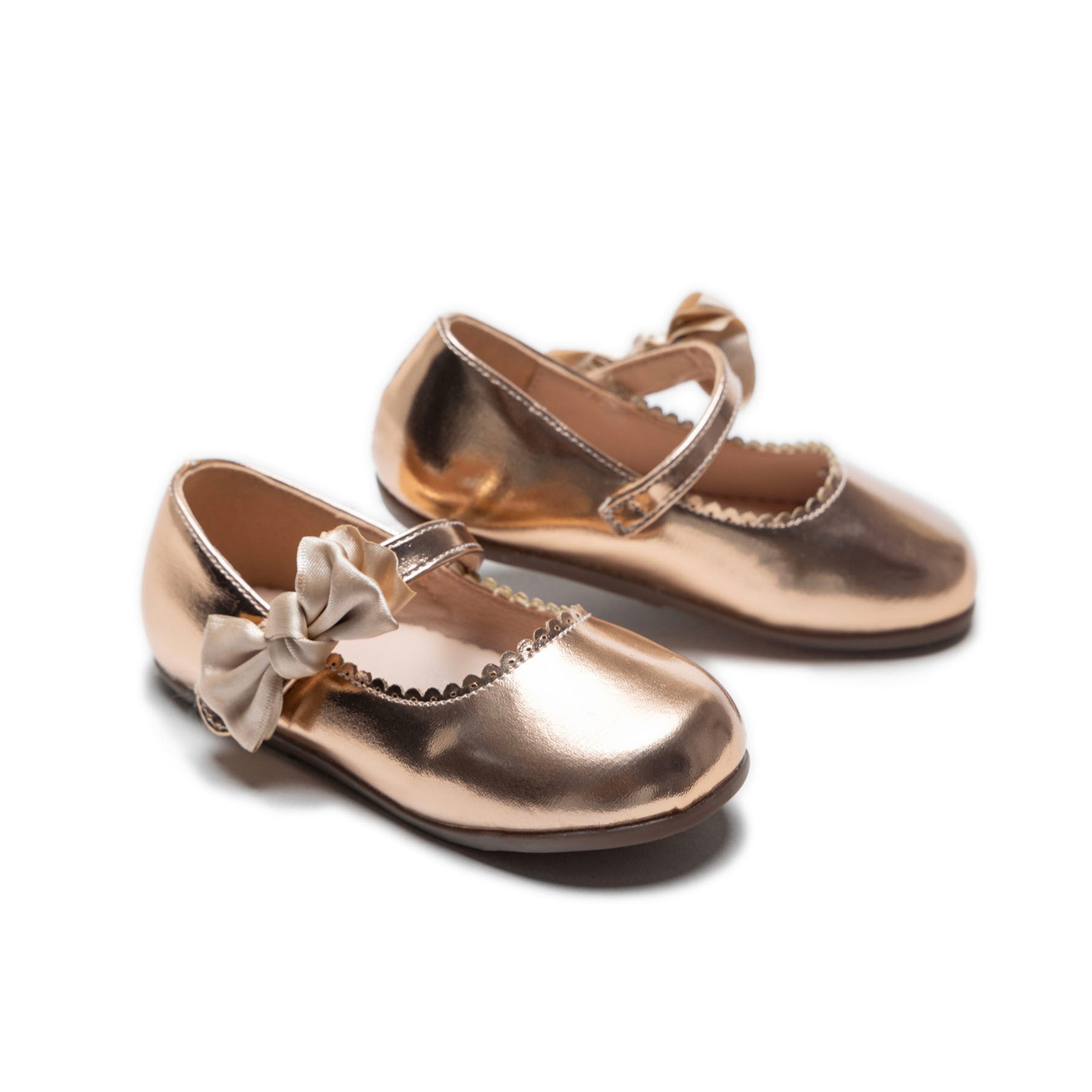 A delicate cotton bow graces the front, adding a touch of charm, while the Elodie-styled doily opening brings intricate detailing for a timeless appeal. Despite their lustrous look, these flats provide a comfortable and lightweight feel, ensuring little girls can move with ease and grace.