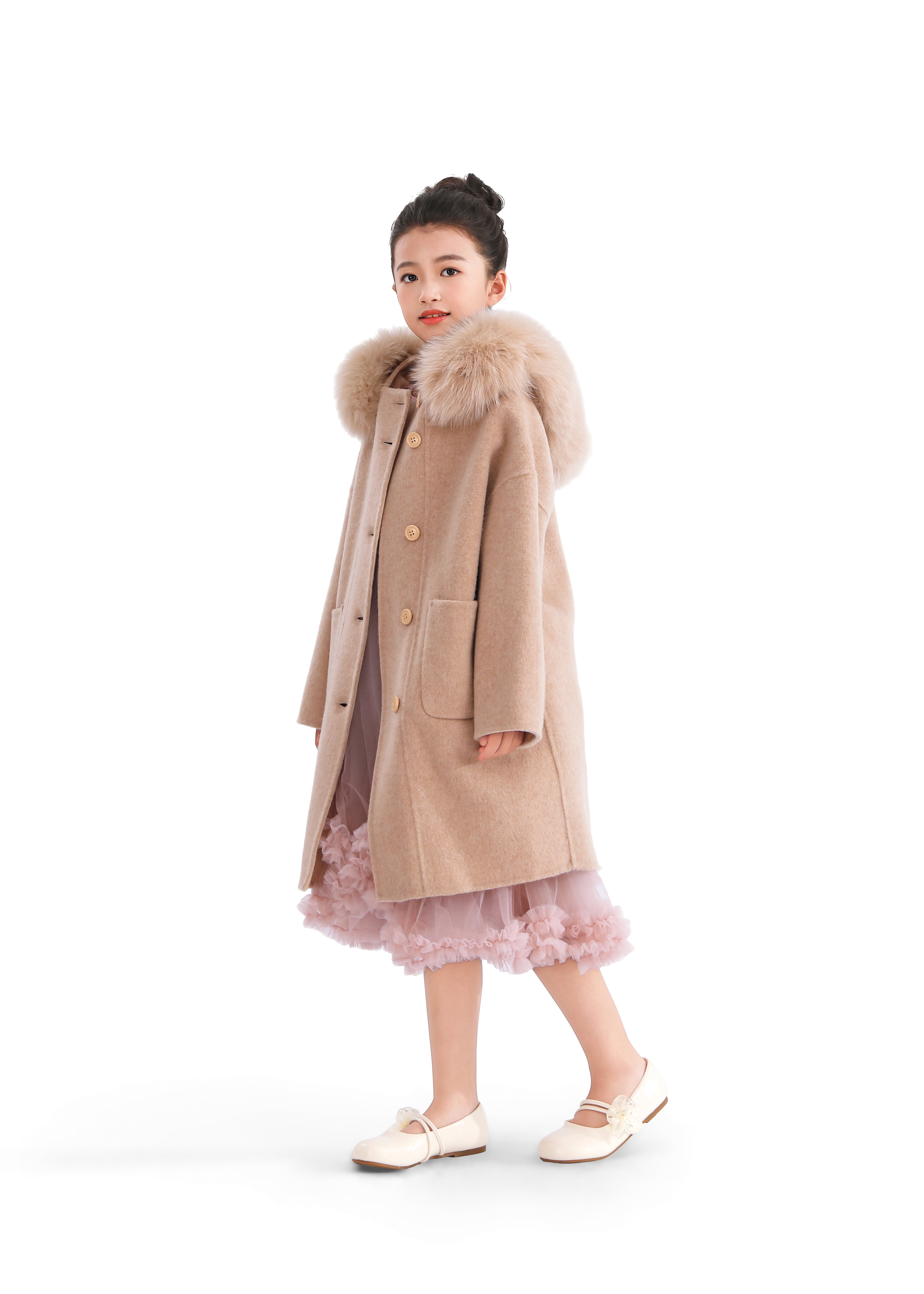 Wrap her in warmth and elegance with this cozy champagne winter coat, designed to turn chilly days into stylish adventures. The plush faux fur hood and oversized silhouette make it a standout piece for seasonal layering.