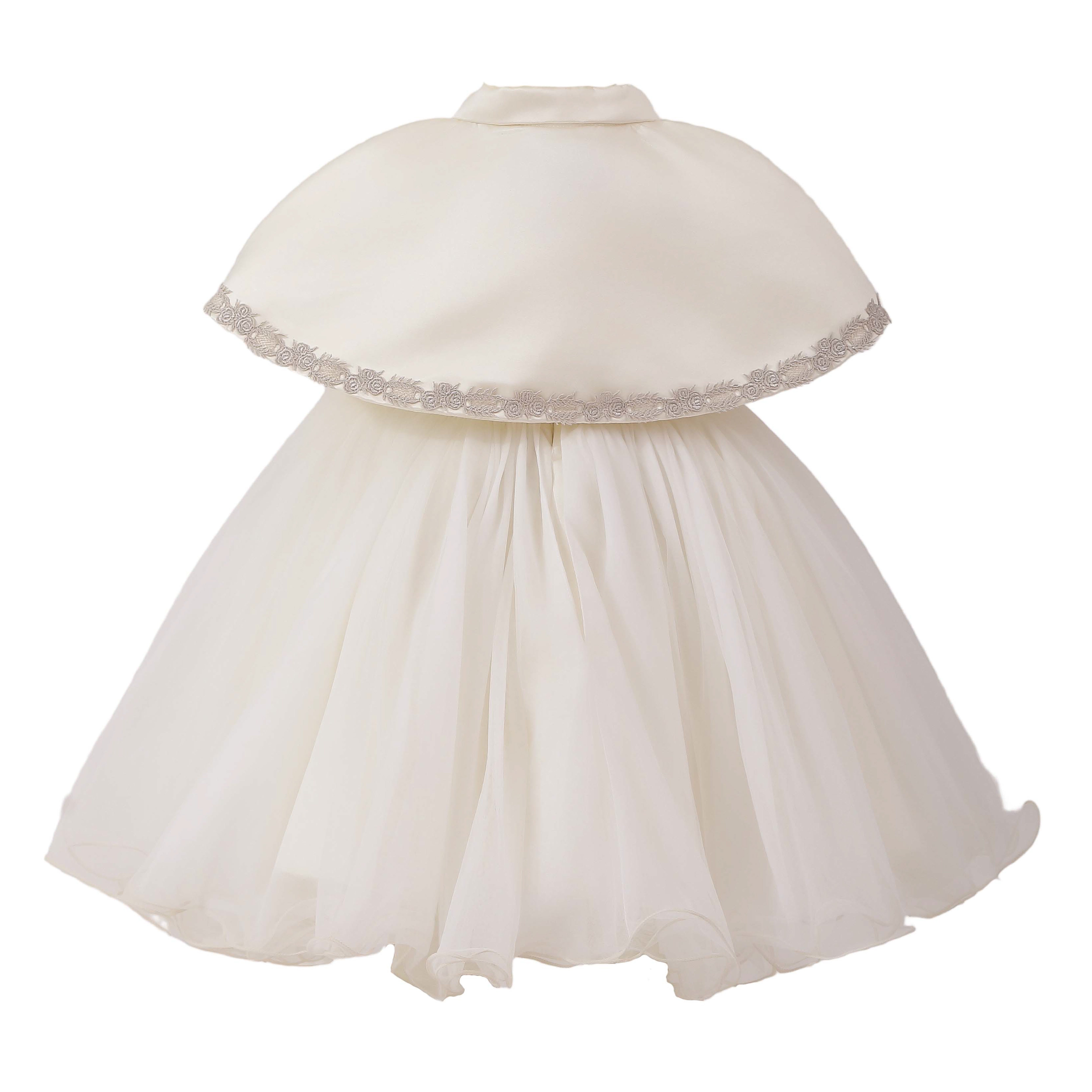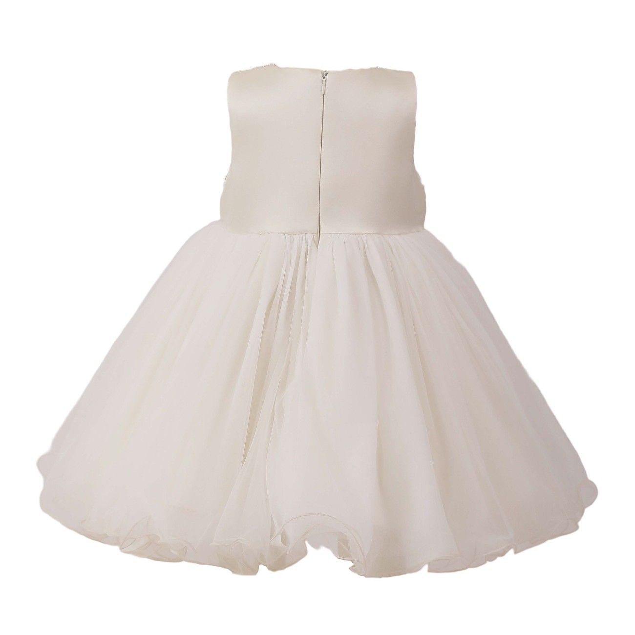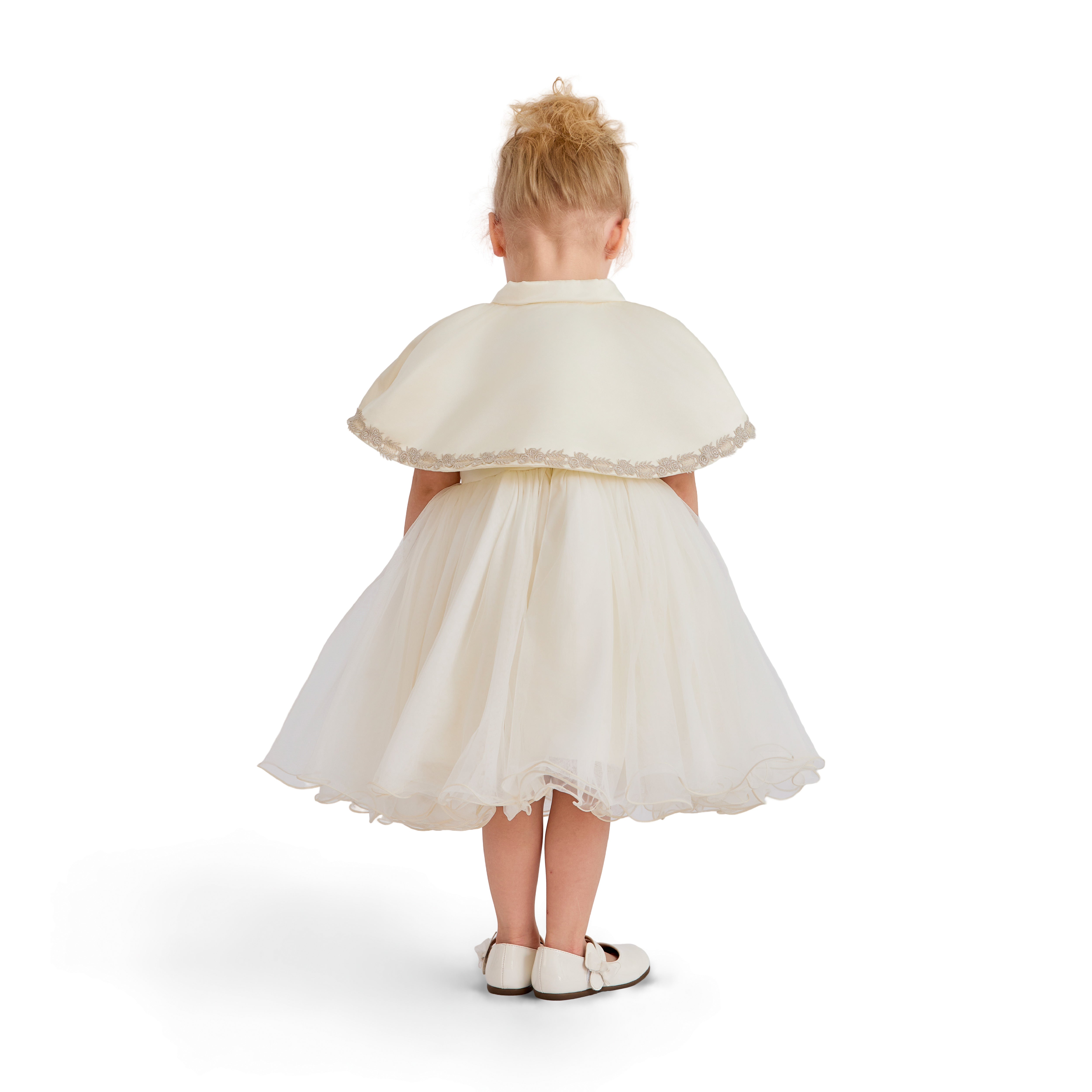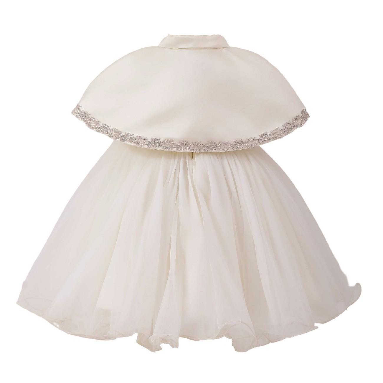 A charming dress for a child that balances classic refinement with a playful statement bow; the structured bodice and full, flared skirt create a polished silhouette perfect for weddings, christenings, and formal celebrations.