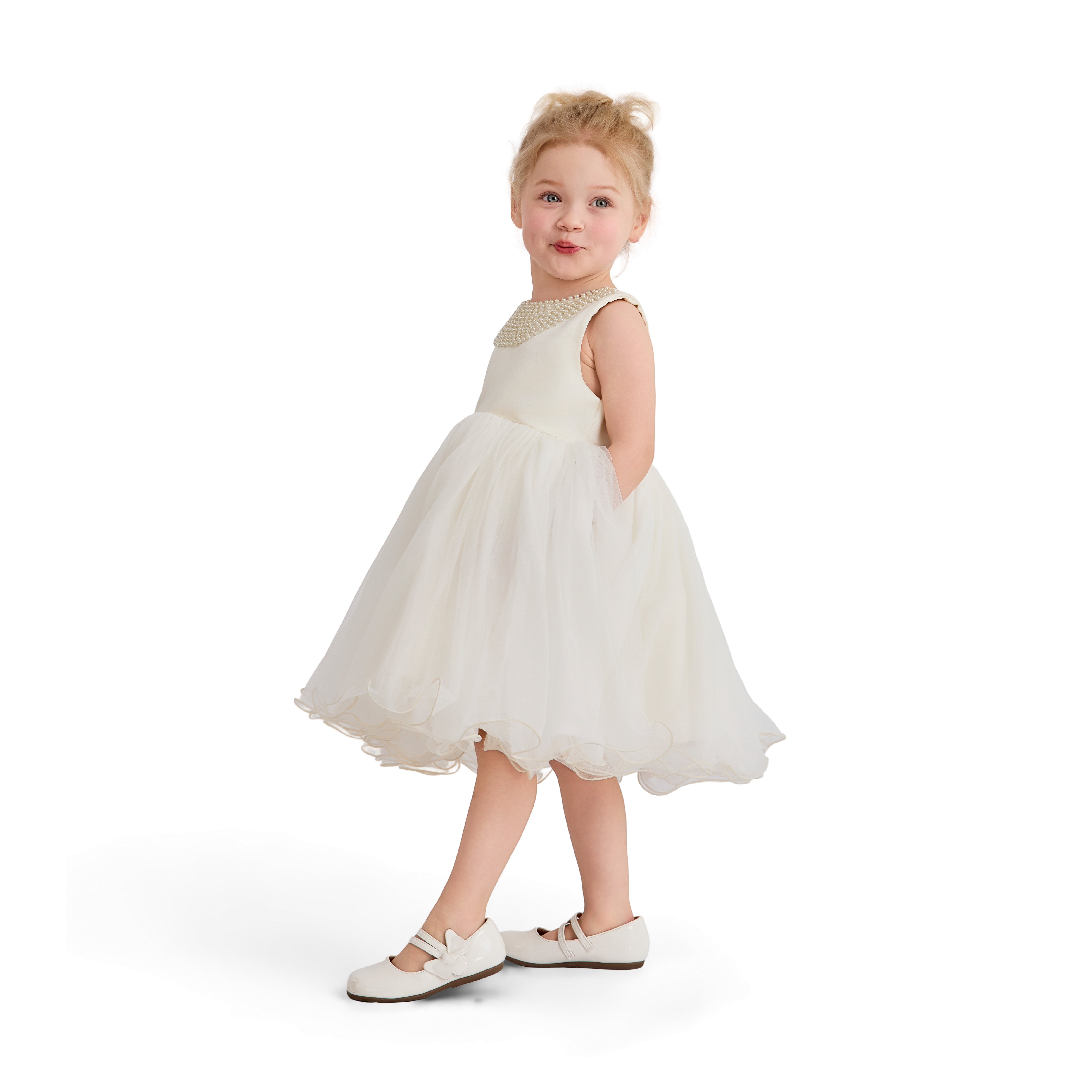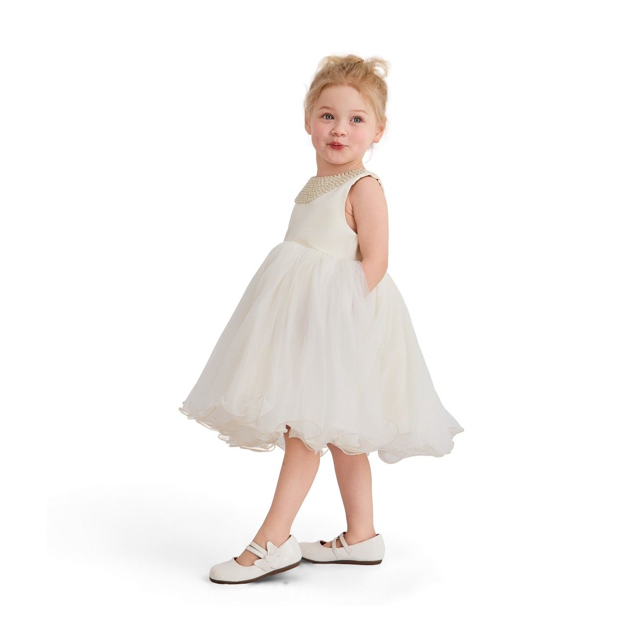 - Fabric and finish: Satin-like bodice with a voluminous, tulle-like skirt for soft movement