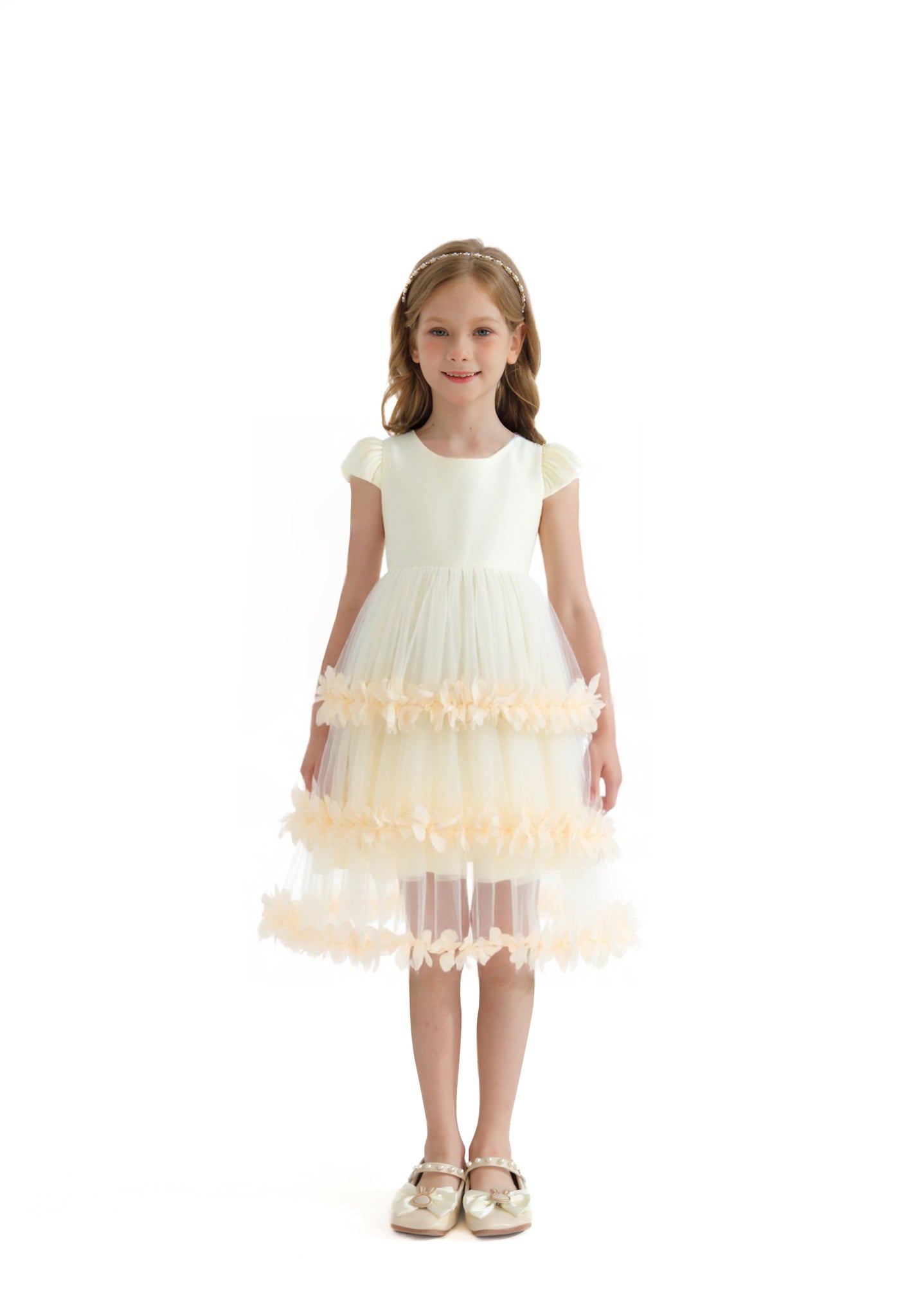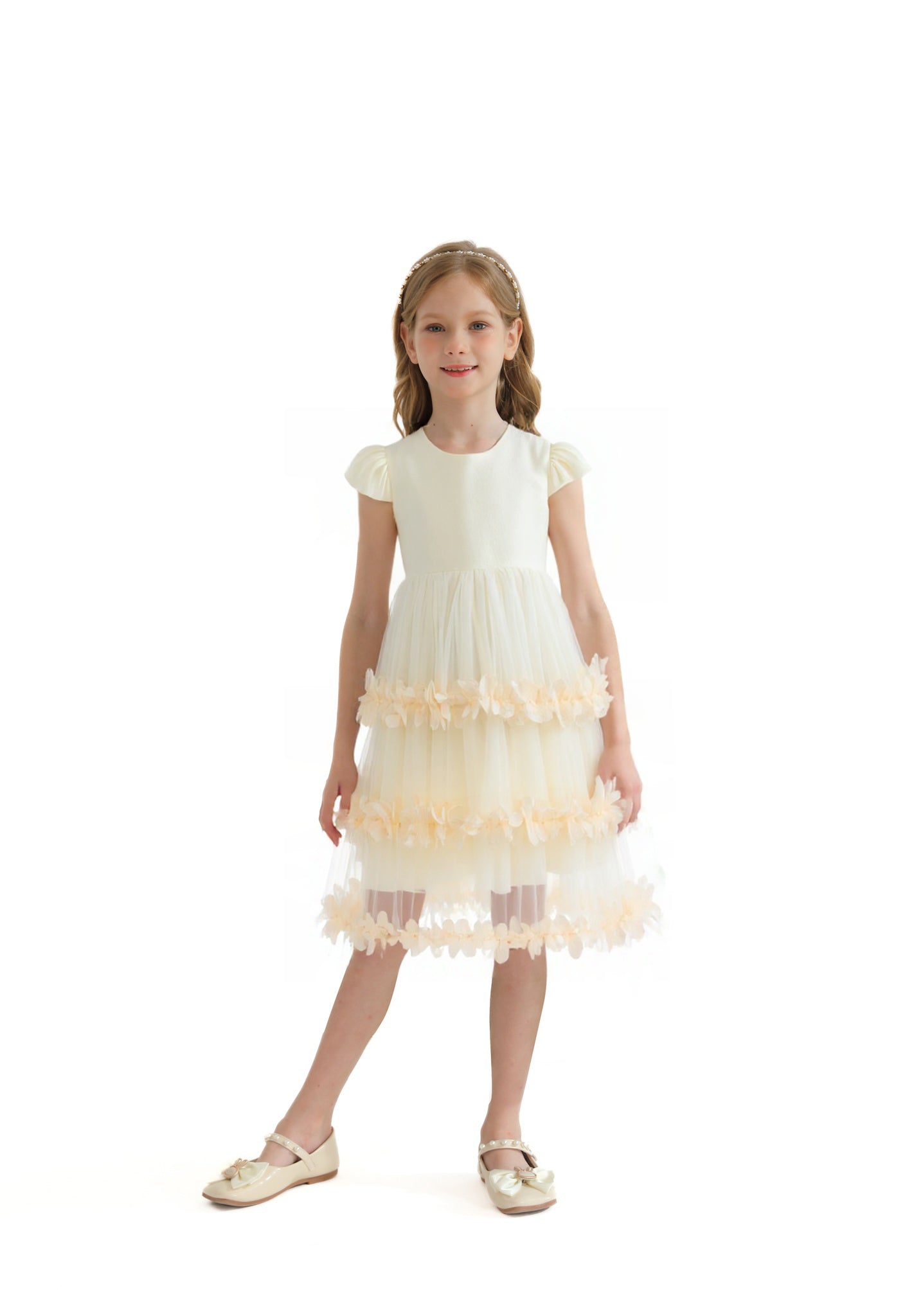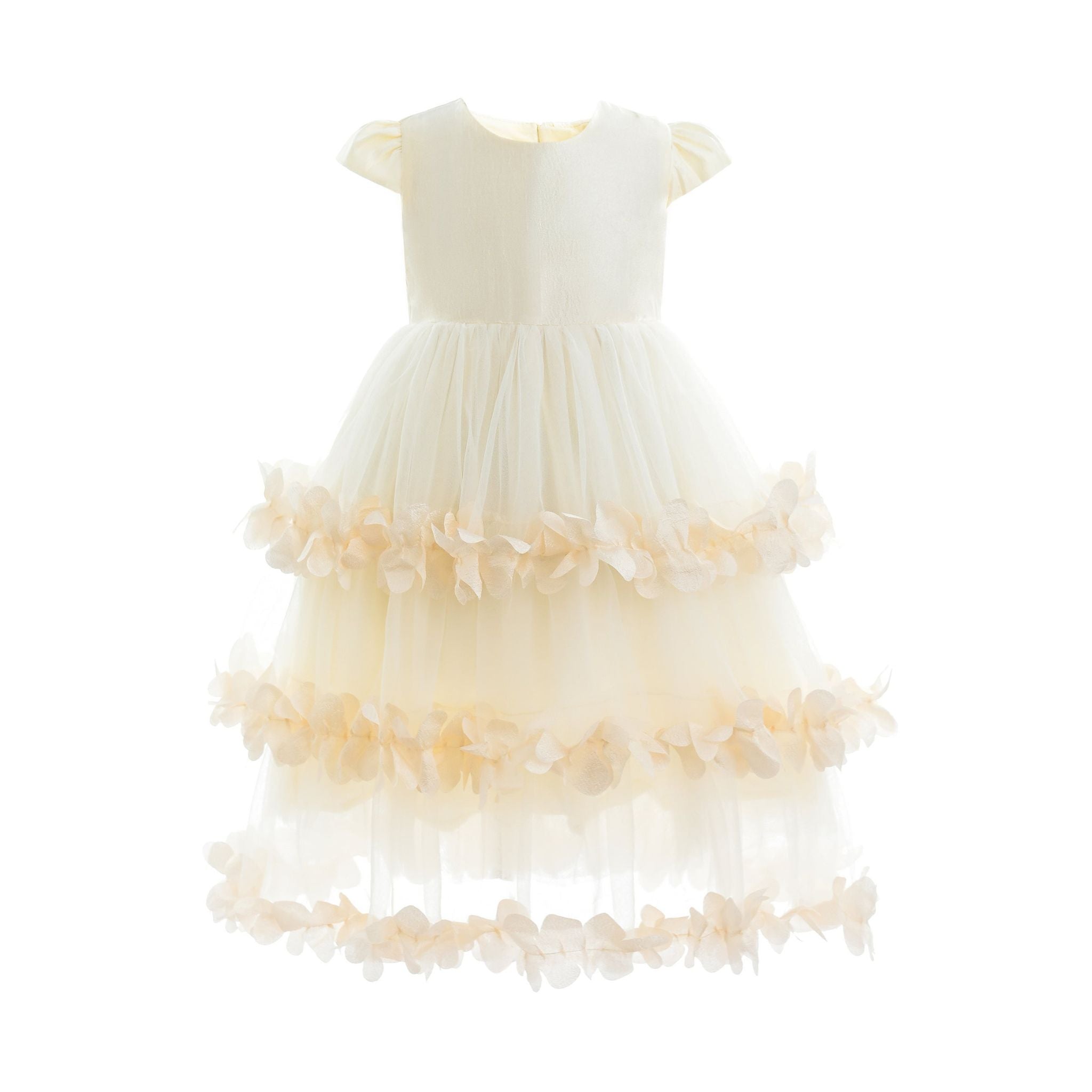 Whether your little one is attending a wedding or birthday celebration., this dress elevates the moment with charm and style. The versatile cream color serves as a neutral canvas for accessories, headbands, or sparkling shoes, making it easy to style for various occasions. It's an ideal choice for festive gatherings and formal dinners.