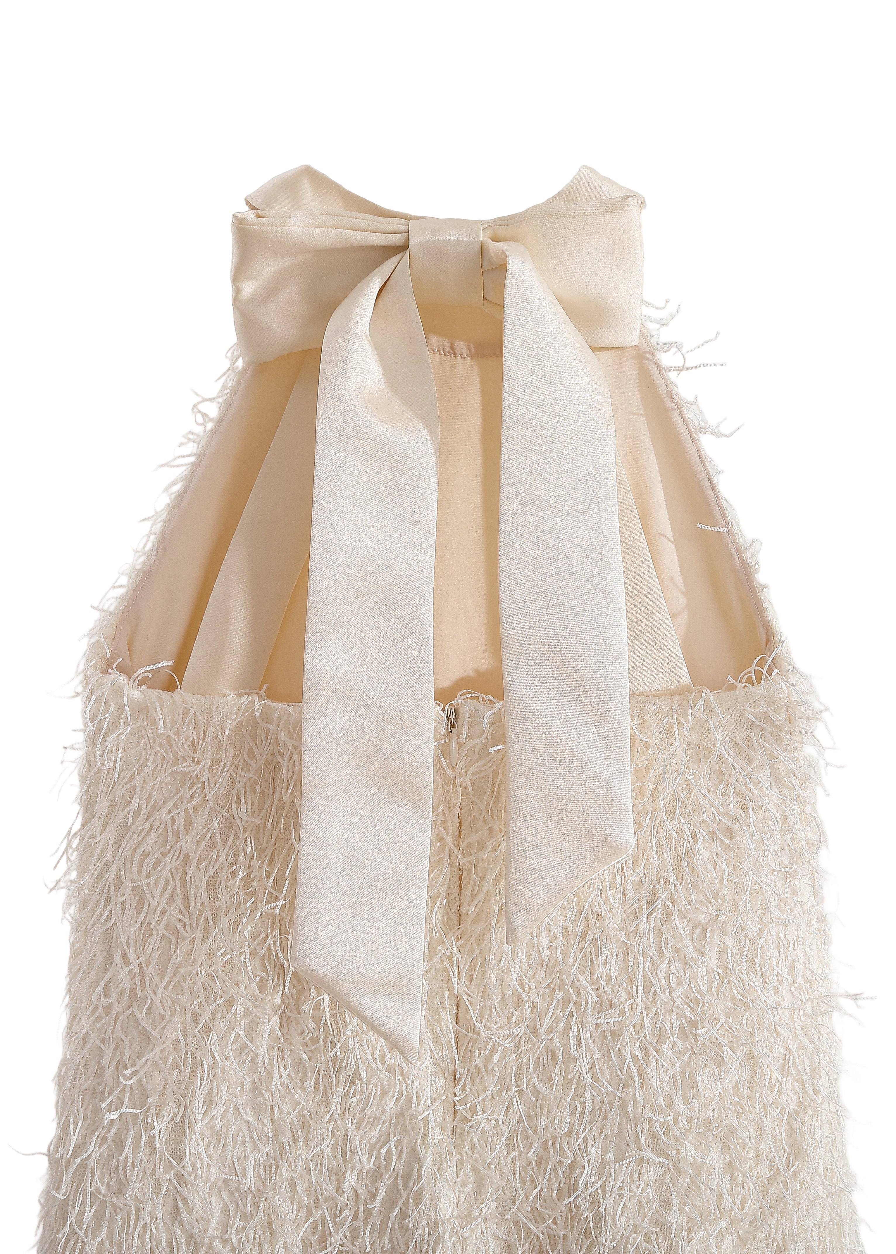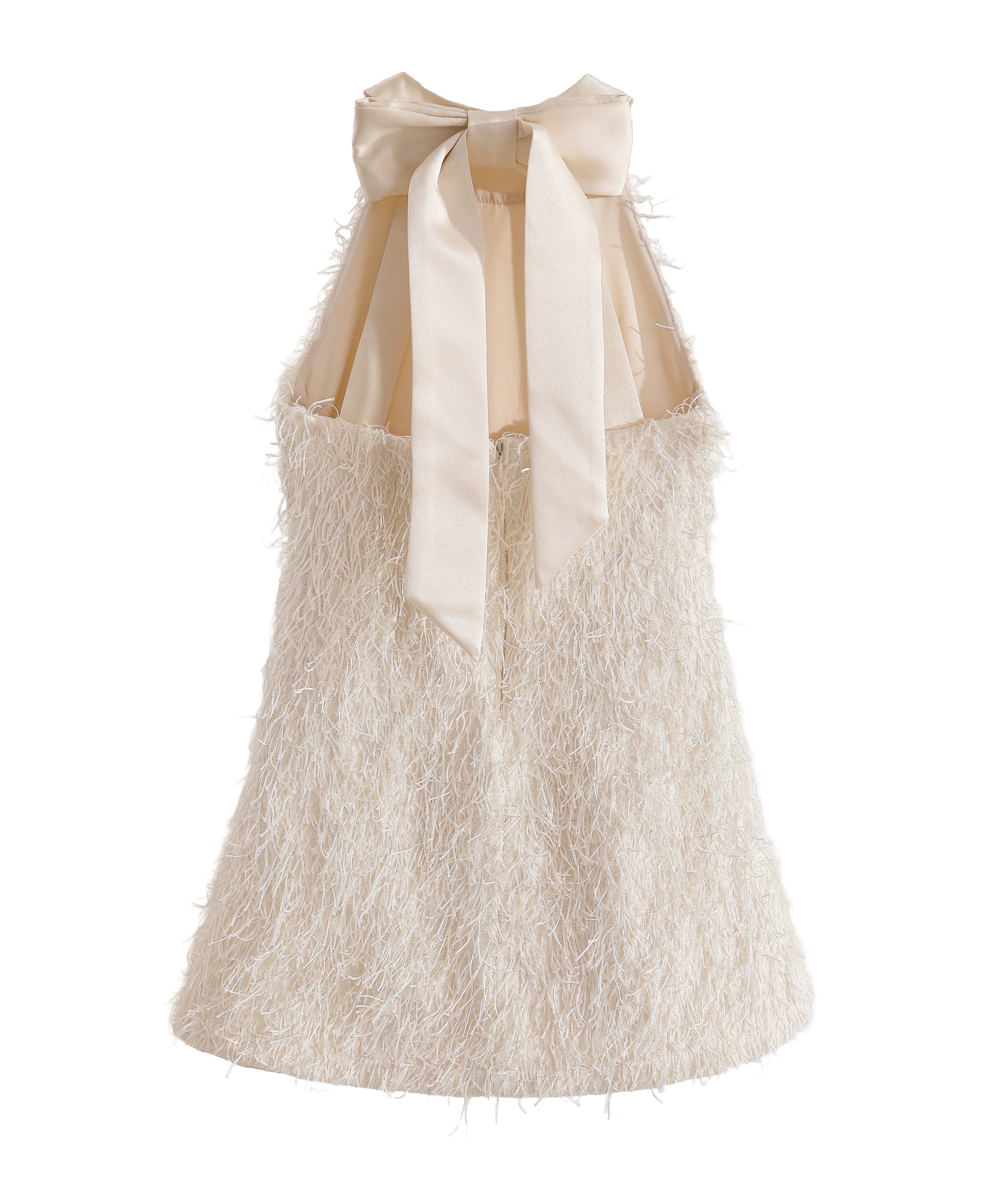 Cream Rosette Ribbon-Back Dress