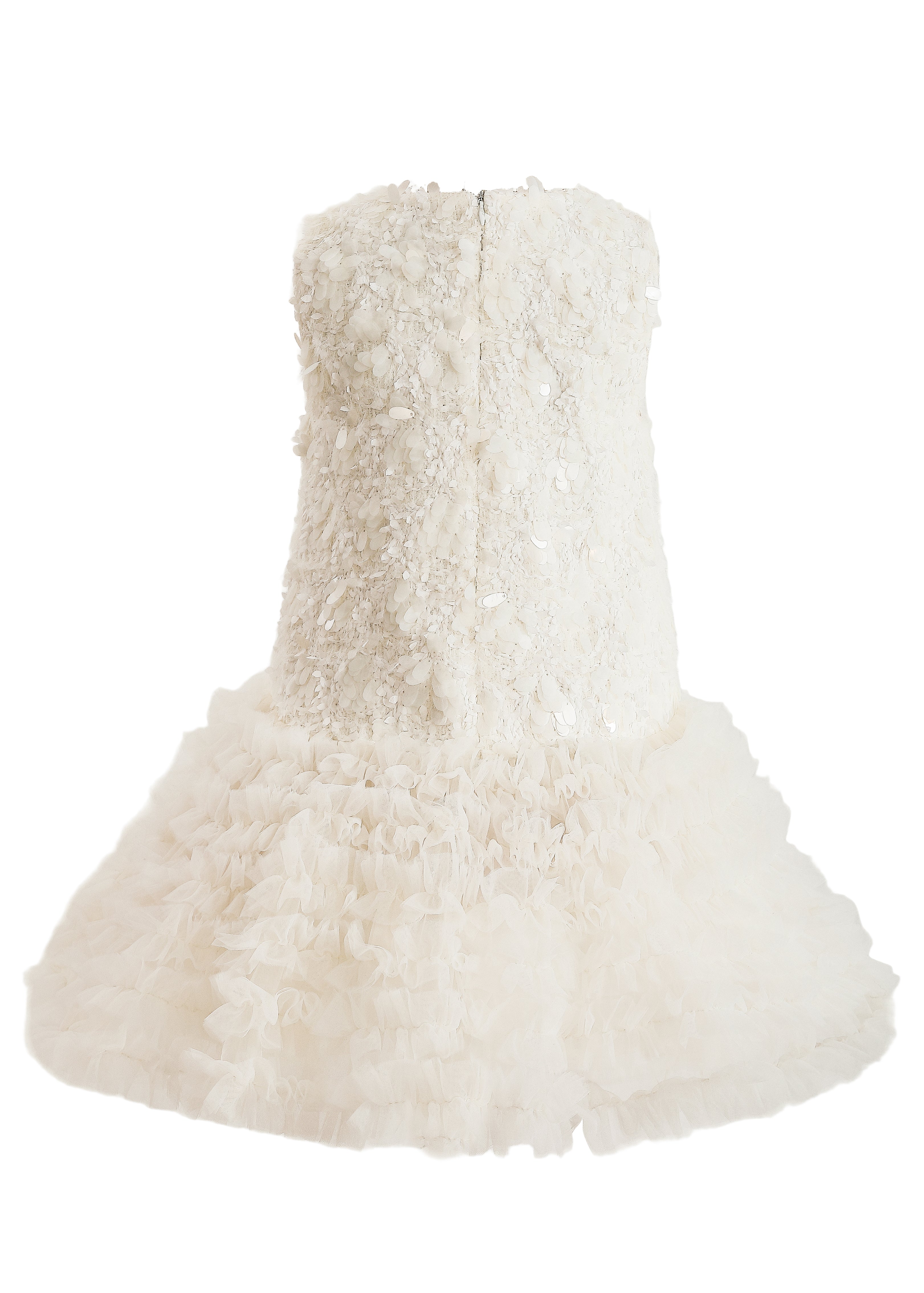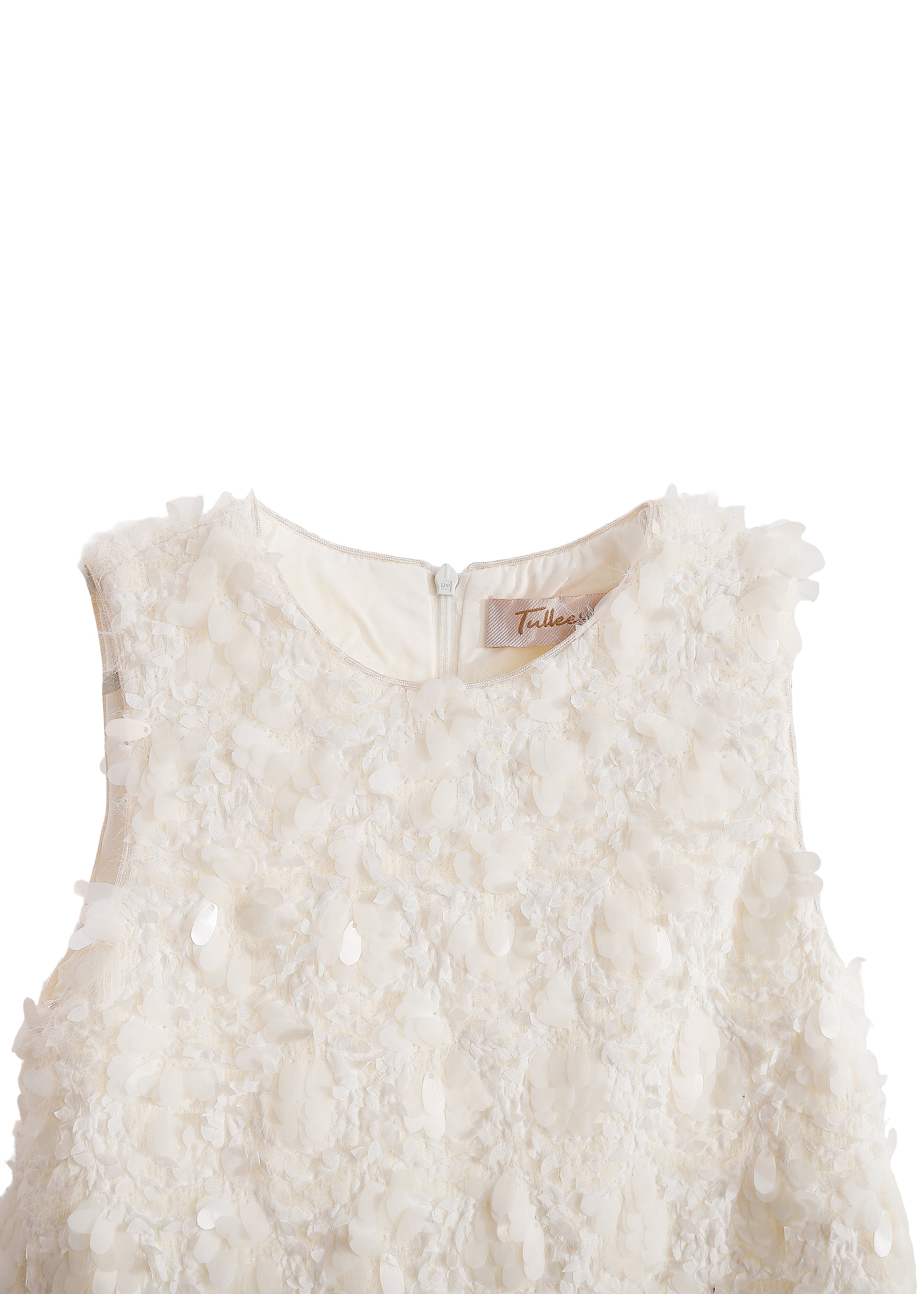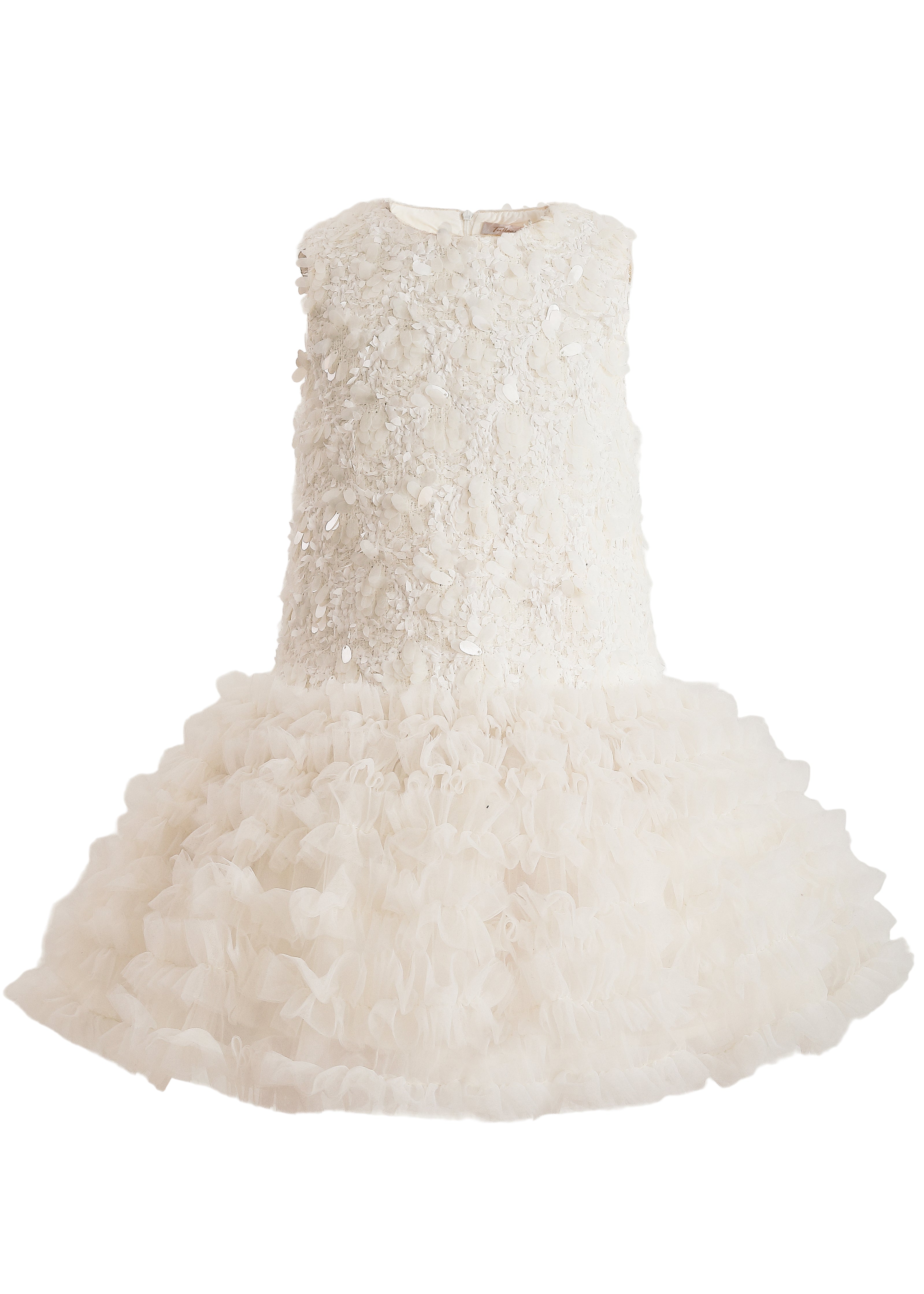 Delicate and dreamy, this sleeveless Tulleen dress features a bouquet-inspired bodice and a frothy tulle skirt. Perfect for twirling through weddings, birthdays, or any moment that calls for a little magic.