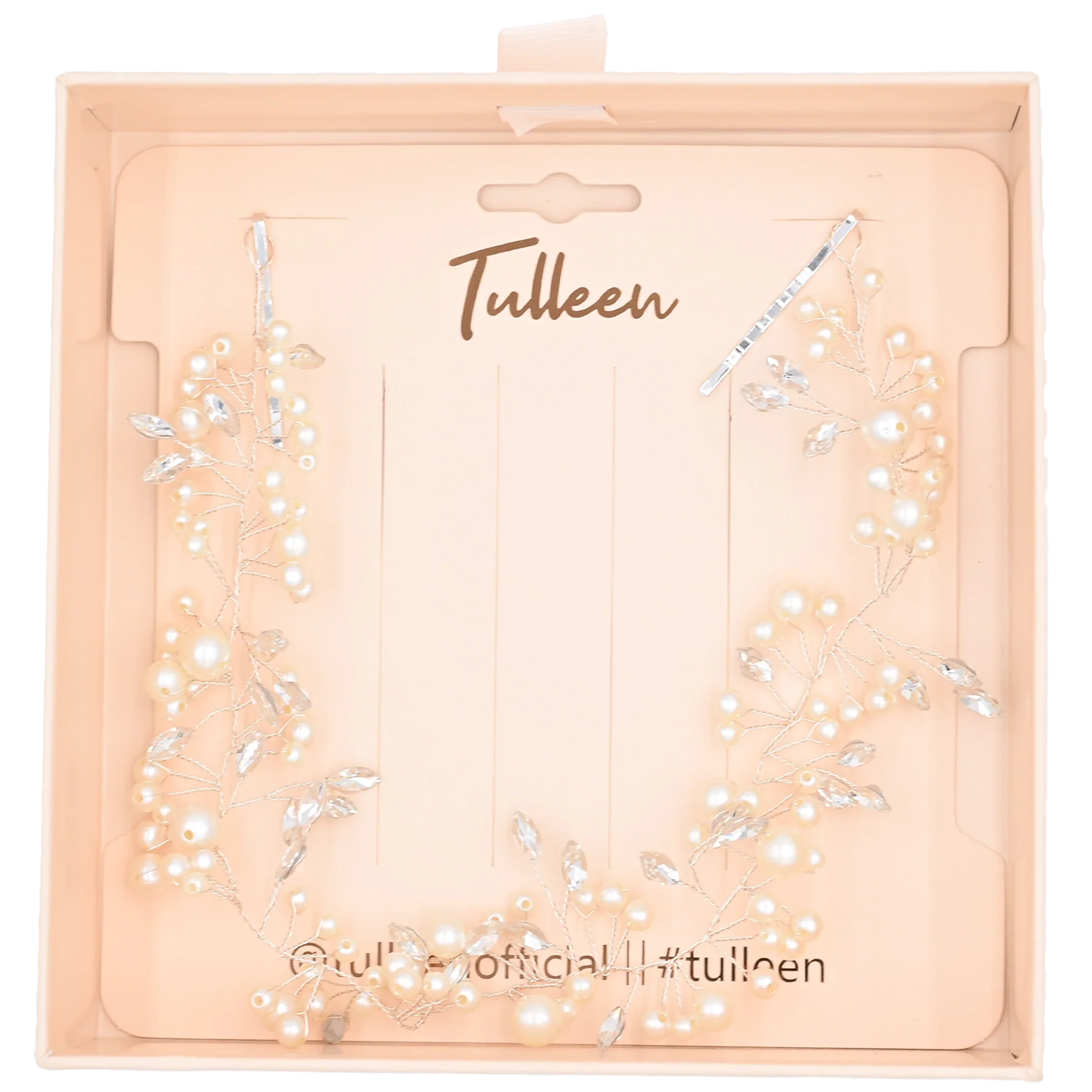 Crystal Accent Pearl Hair Vine for kid girls from Tulleen. Featuring a floral gem and crystal design with pearl and leaf appliques with bobby pin closure.
