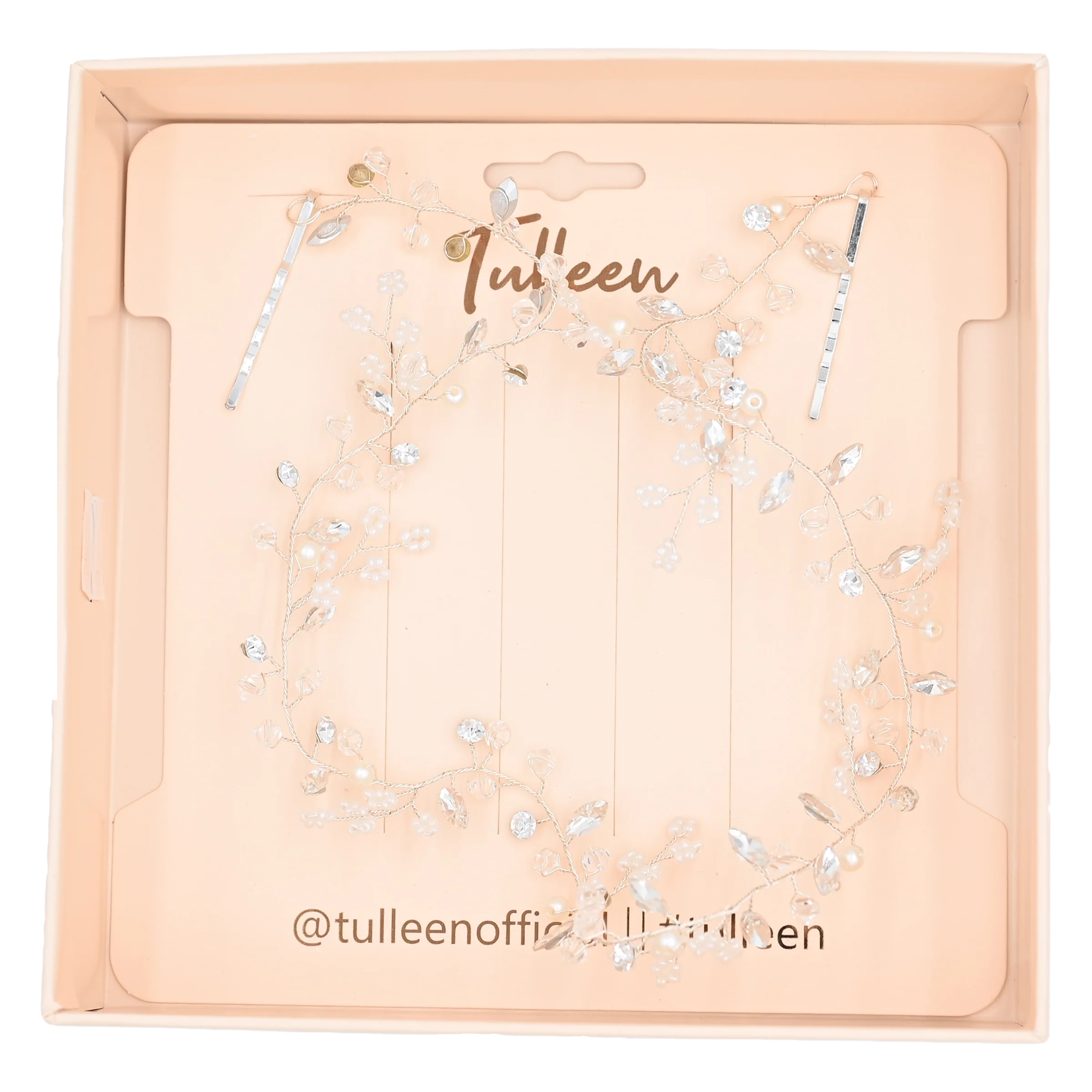 Crystal Floral Accented Hair Vine for kid girls from Tulleen. Featuring a floral gem and crystal design with leaf appliques and bobby pin closure.