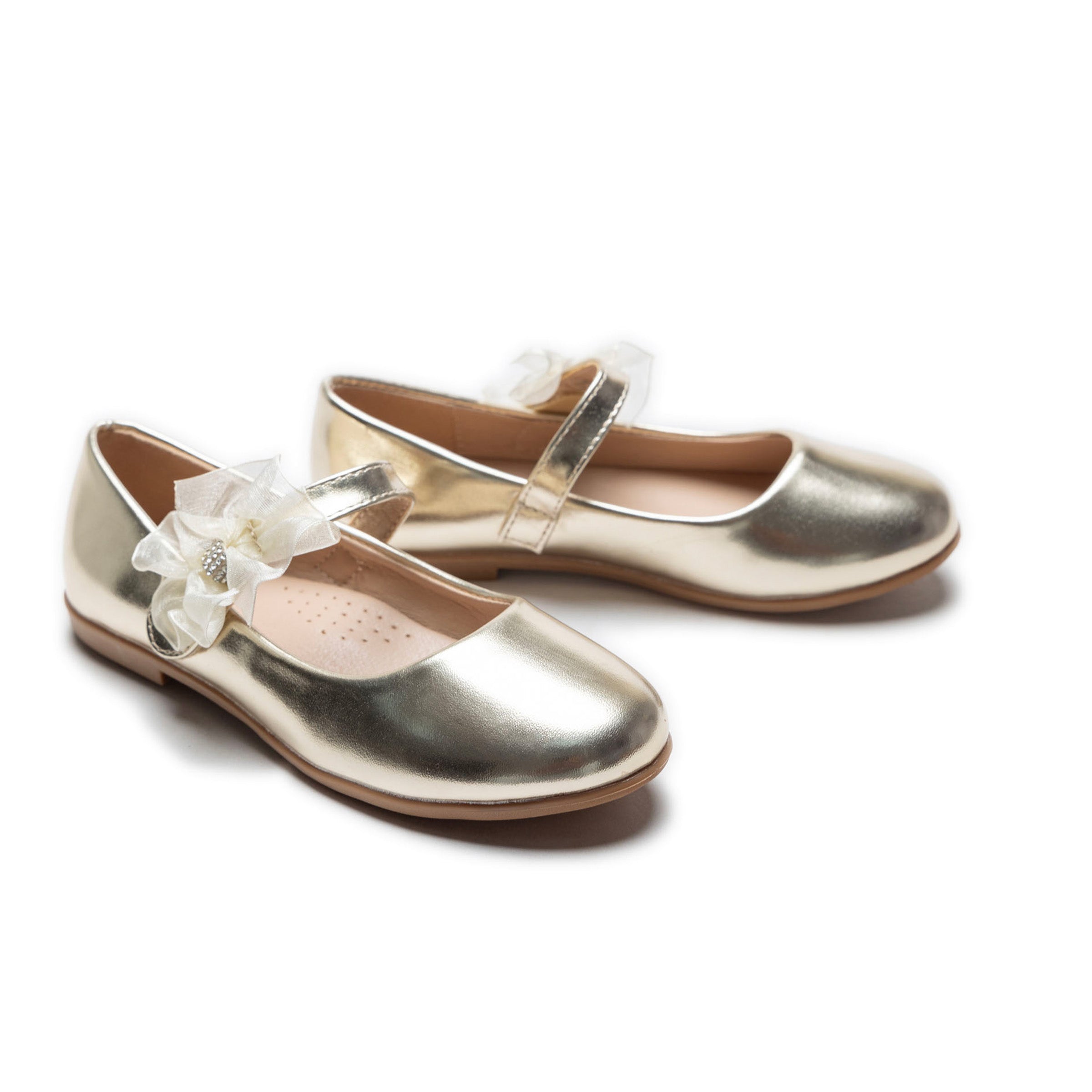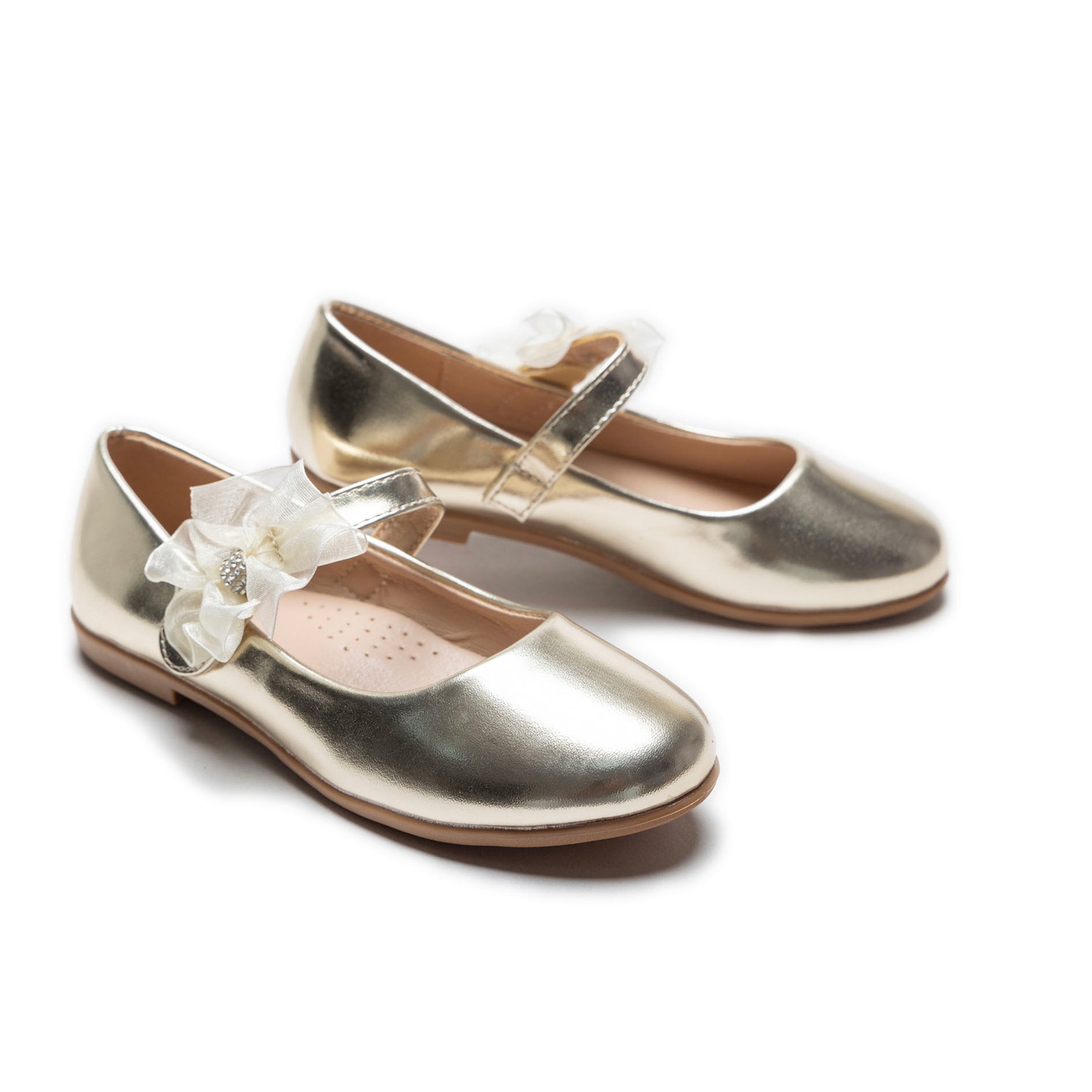 The Gold Haile Rhinestone Flower Flats by Tulleen combine playful charm with refined elegance, making them a perfect addition to any young girl’s wardrobe. Whether it’s a formal gathering or a casual outing, these flats effortlessly elevate any outfit with a touch of luxurious sparkle.
