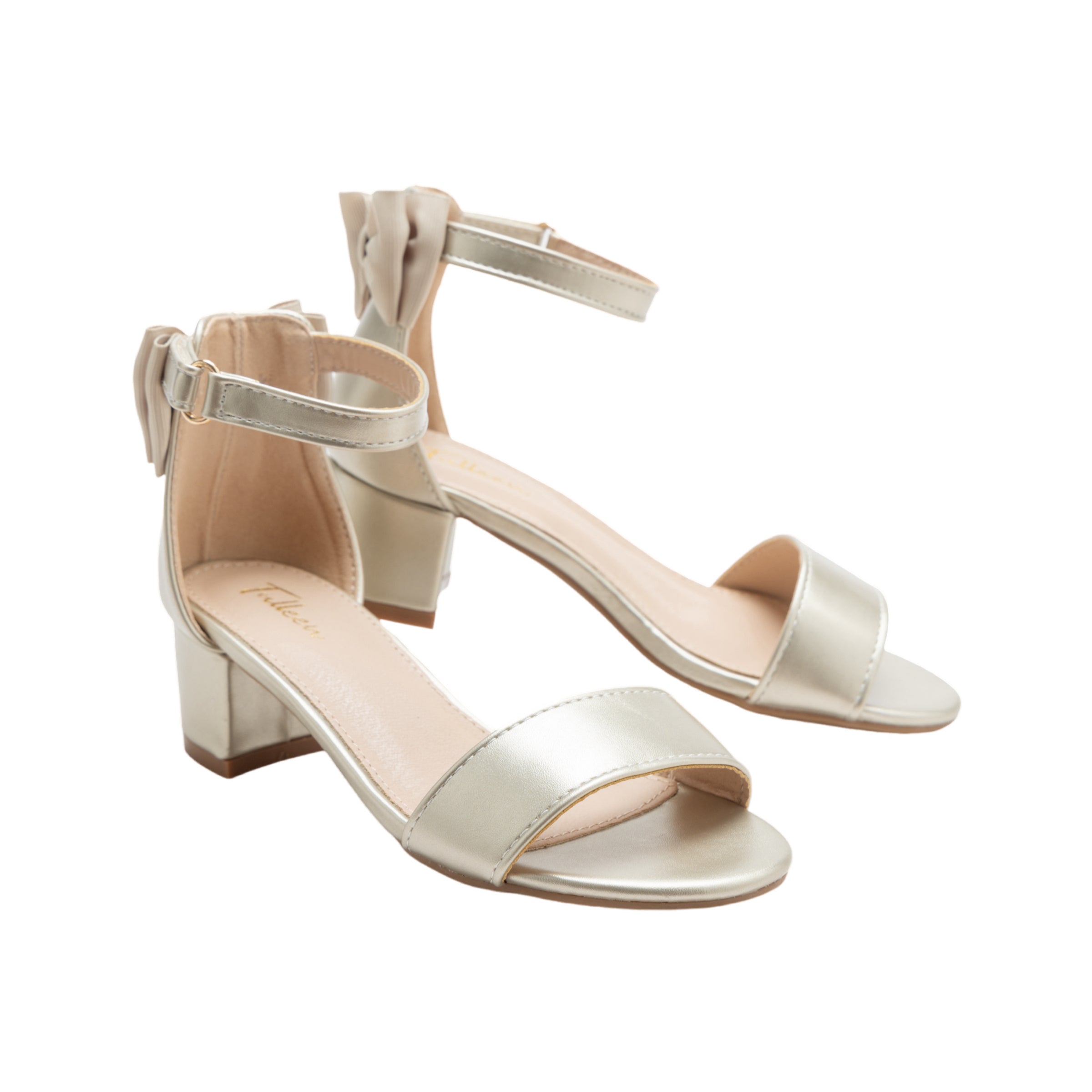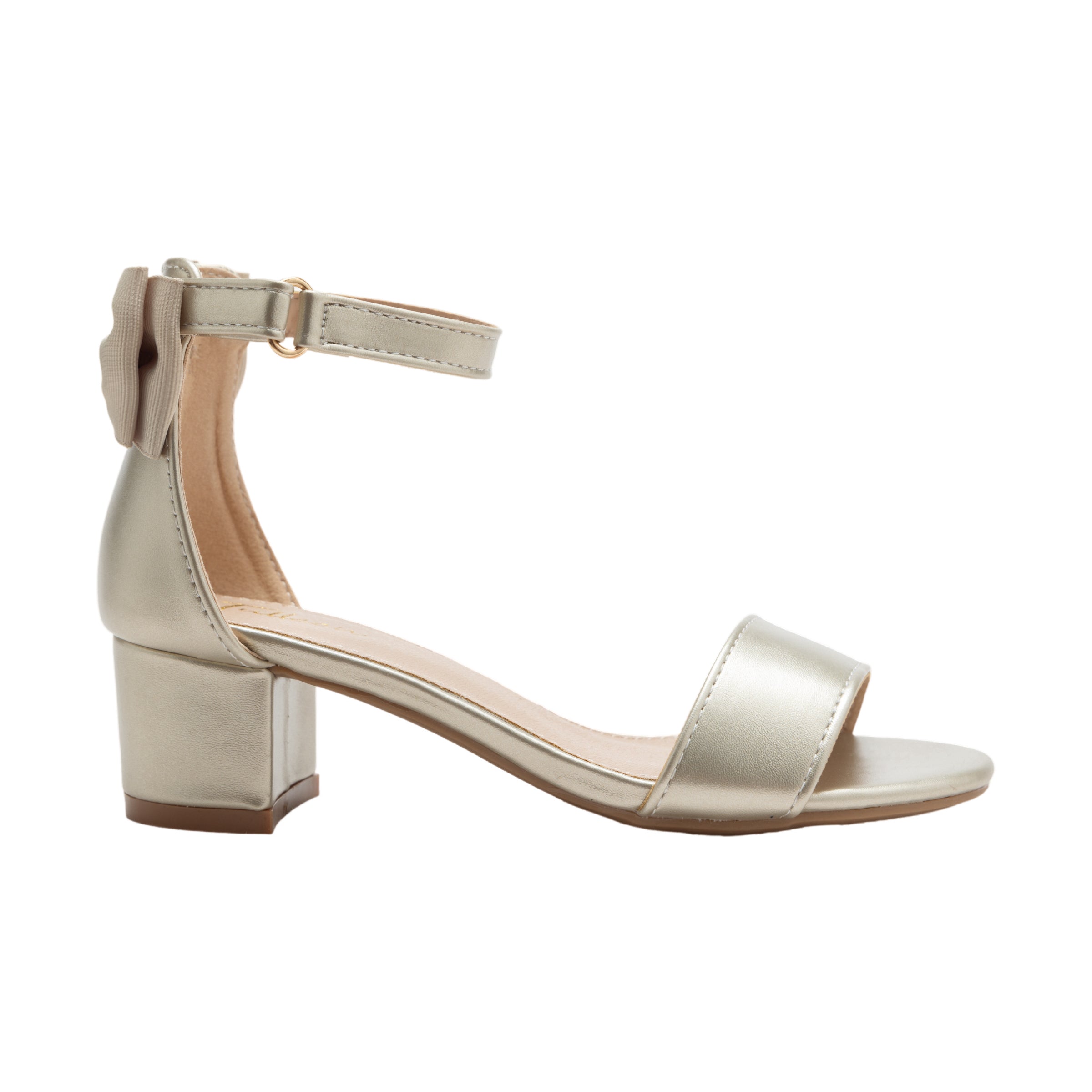 Introducing the Gold Satin Banded Block Heels by Tulleen, featuring a radiant gold satin finish that epitomizes sophistication and charm. The luxurious satin texture adds a refined elegance to these heels, making them an exquisite choice for little girls who love a graceful and fashionable look.