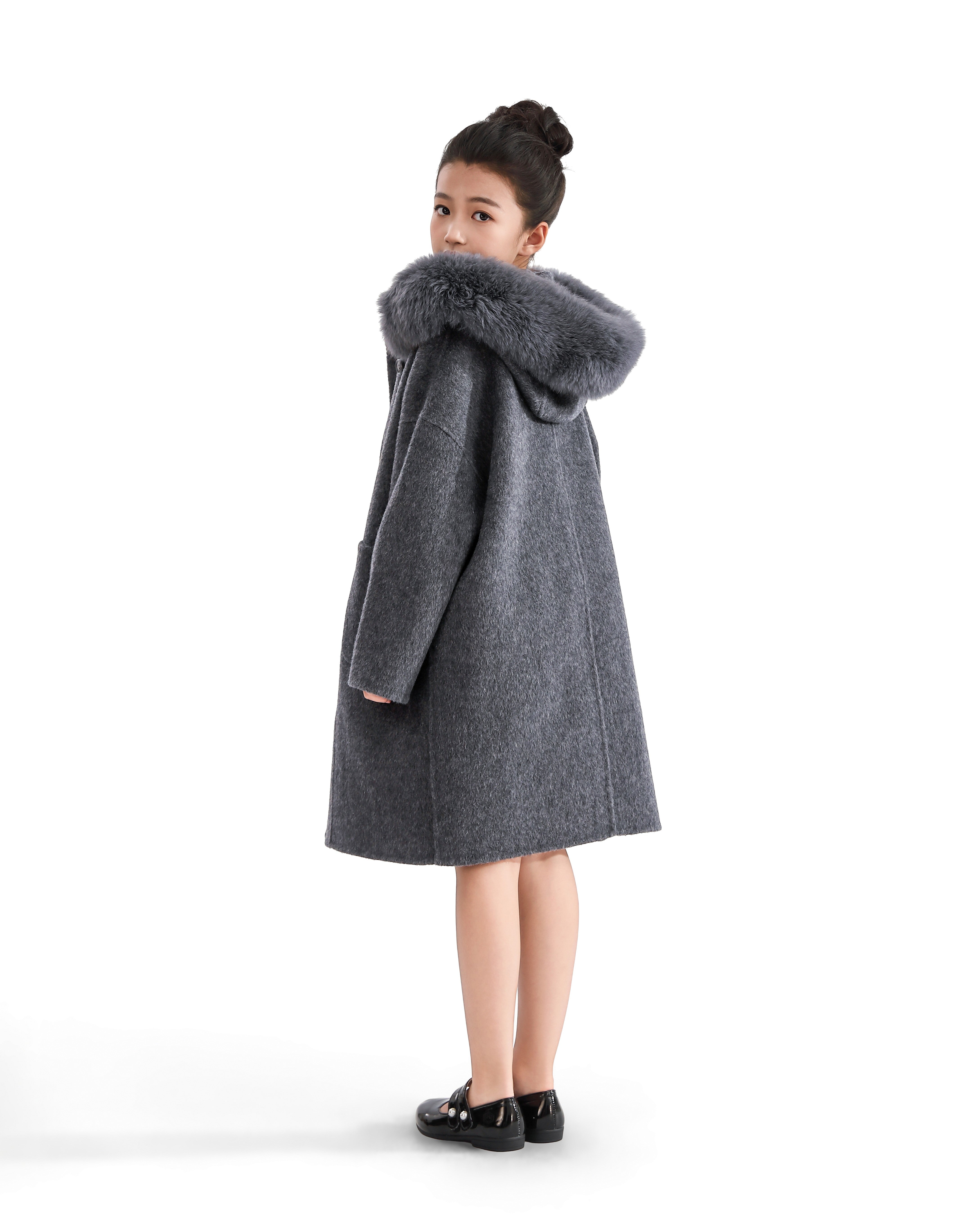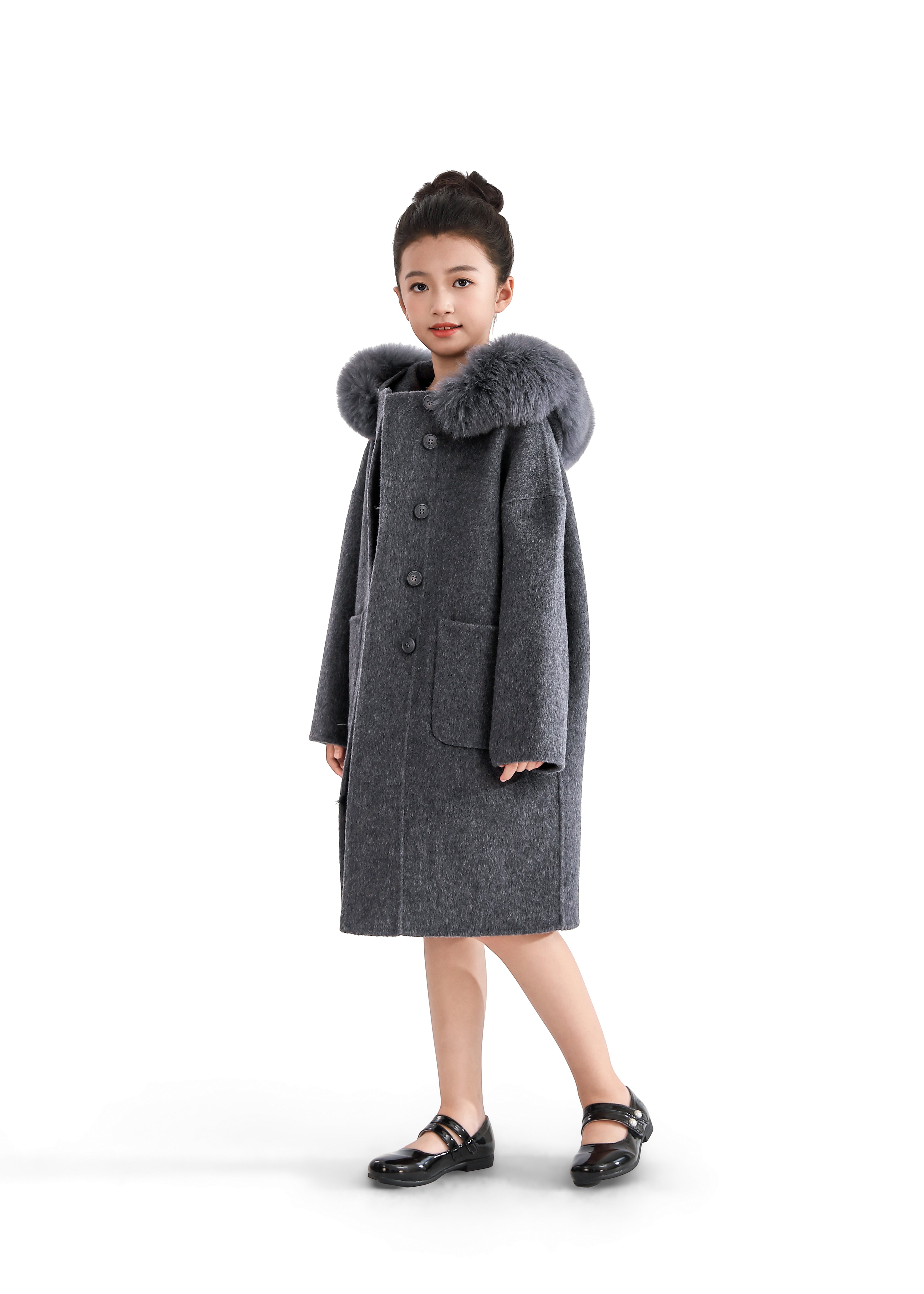 Wrap her in warmth and elegance with this cozy gray winter coat, designed to turn chilly days into stylish adventures. The plush faux fur hood and oversized silhouette make it a standout piece for seasonal layering.