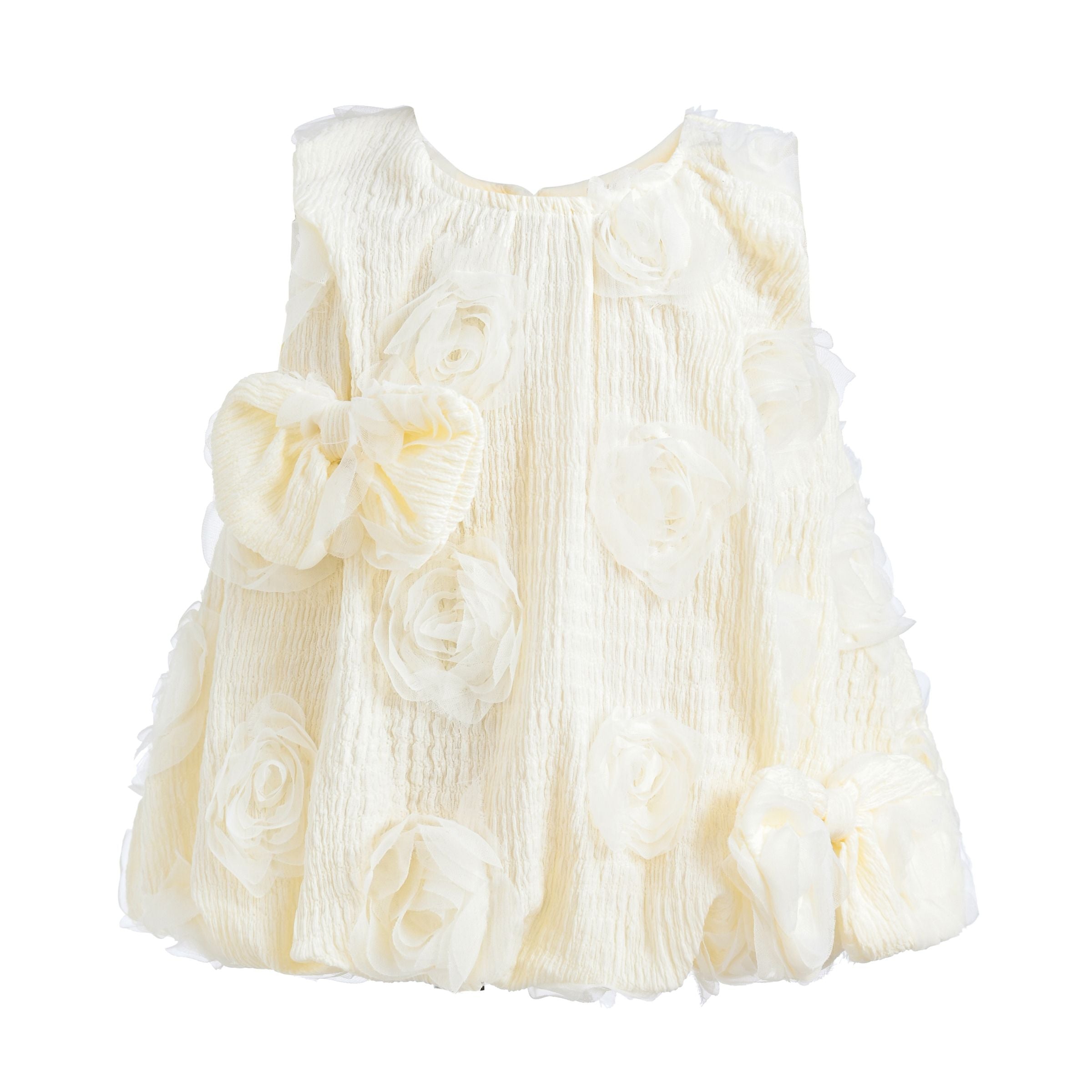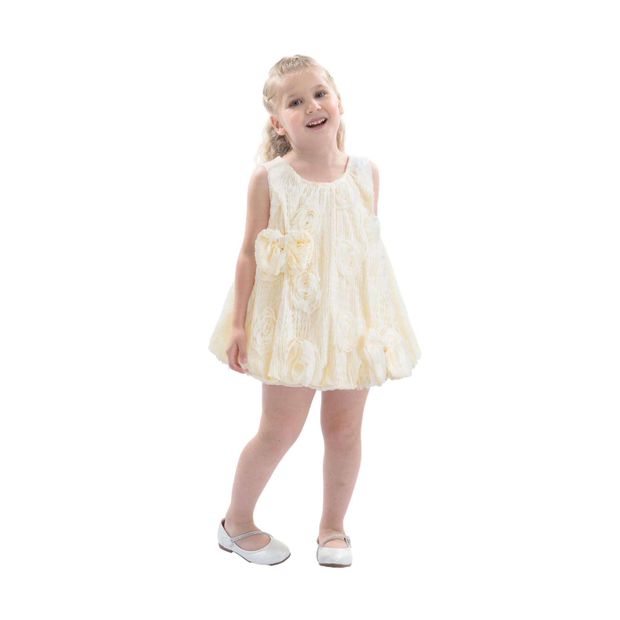 The Ivory Bow Flower Sleeveless Dress combines soft elegance with playful charm. Featuring delicate floral accents and a sweet bow detail at the waist, this dress offers a refined yet whimsical look.
