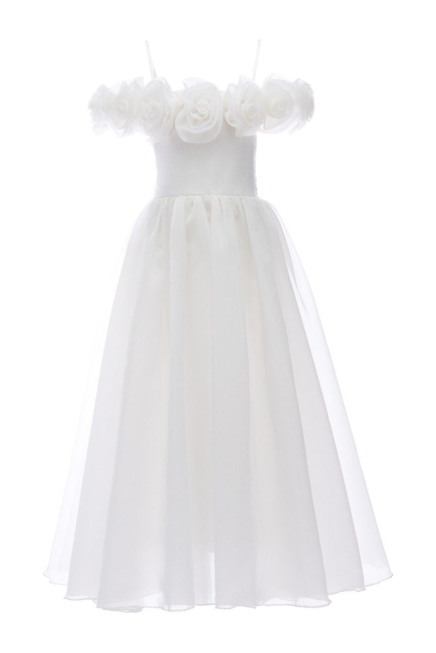Ivory Chloe Rose Appliqué Tulle Dress