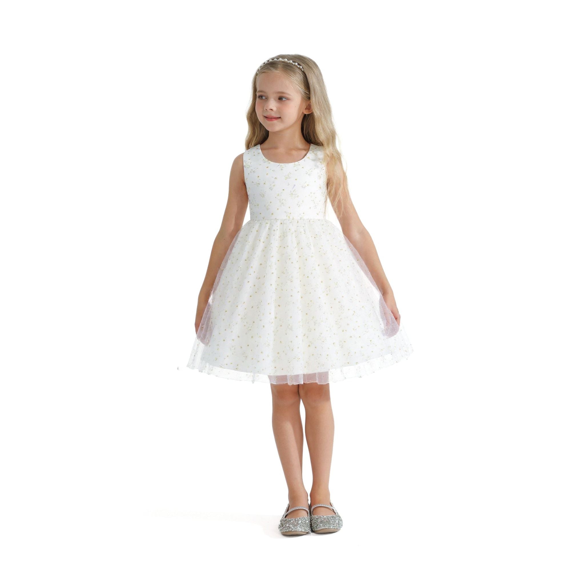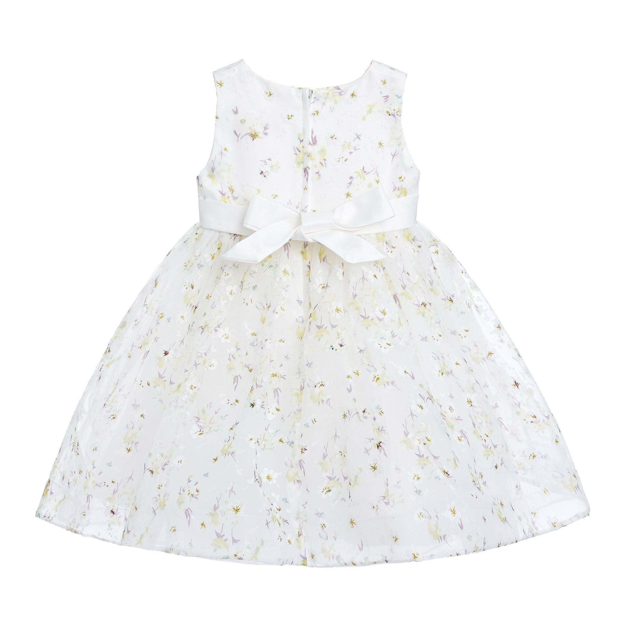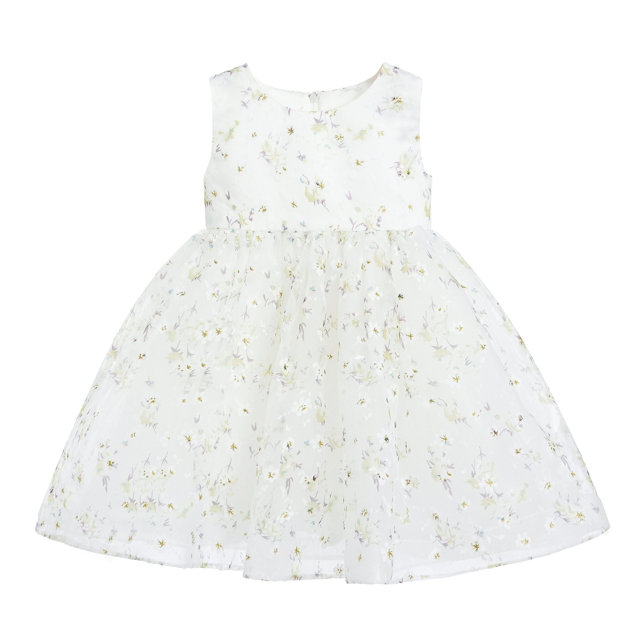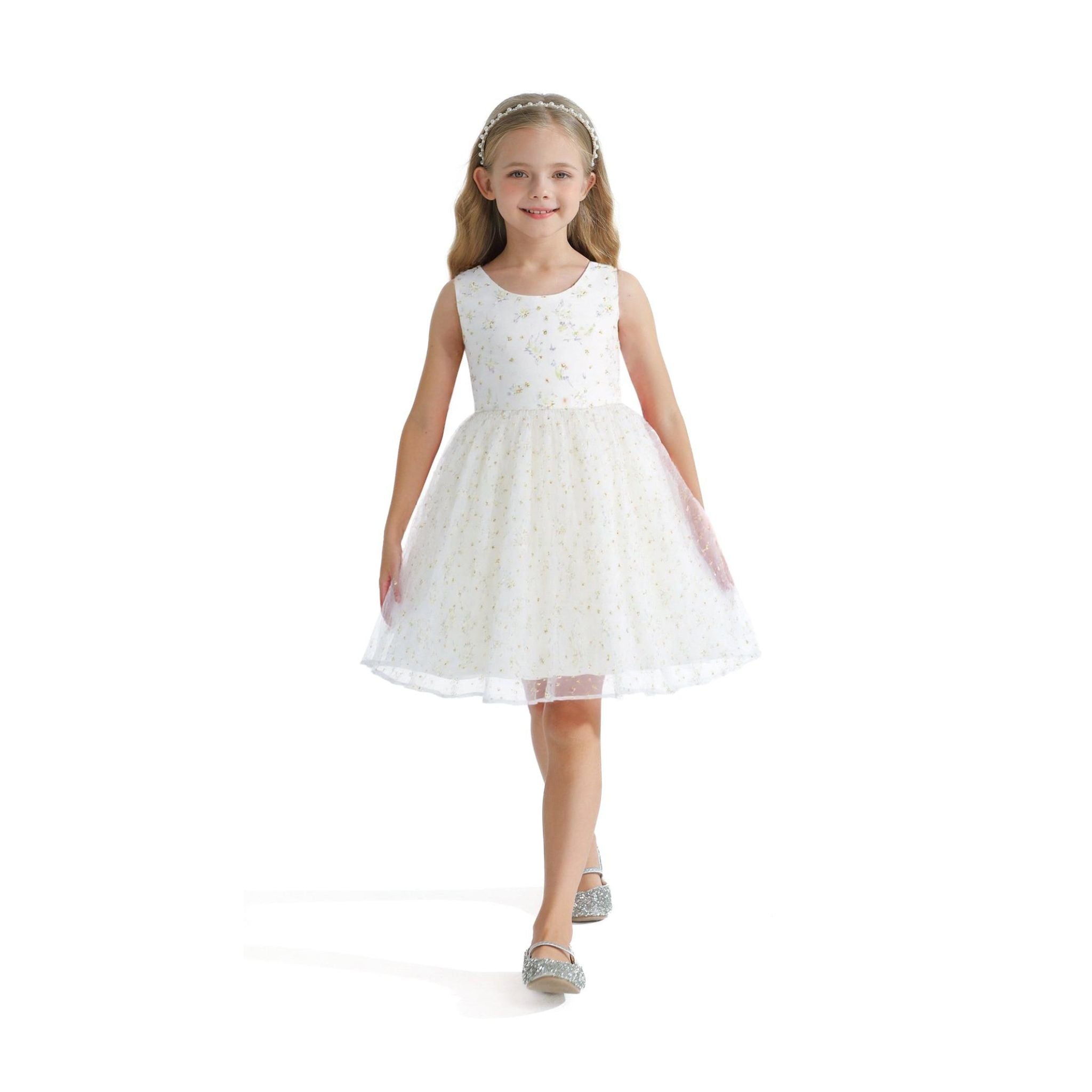 - Vibrant Summer Floral Pattern, on a Pristine Ivory Dress.