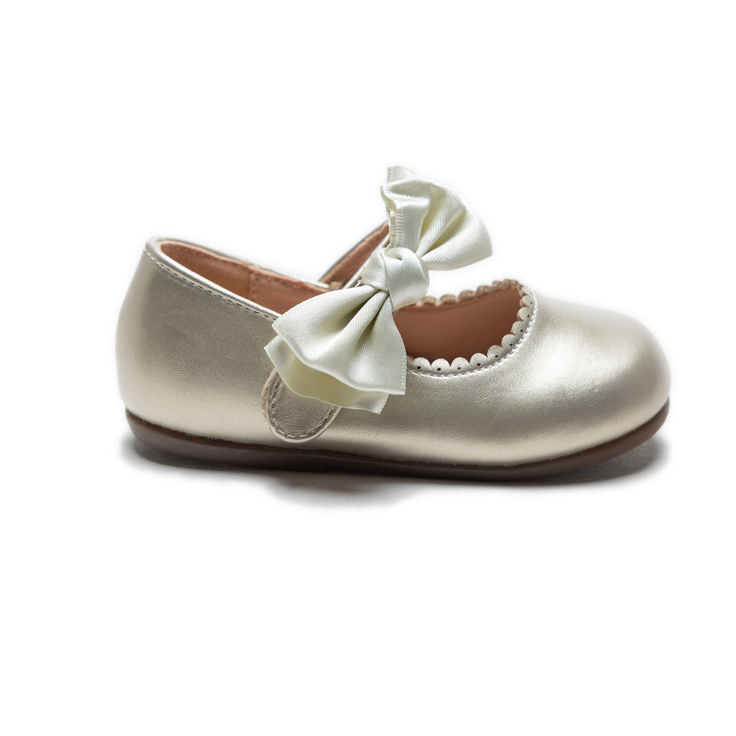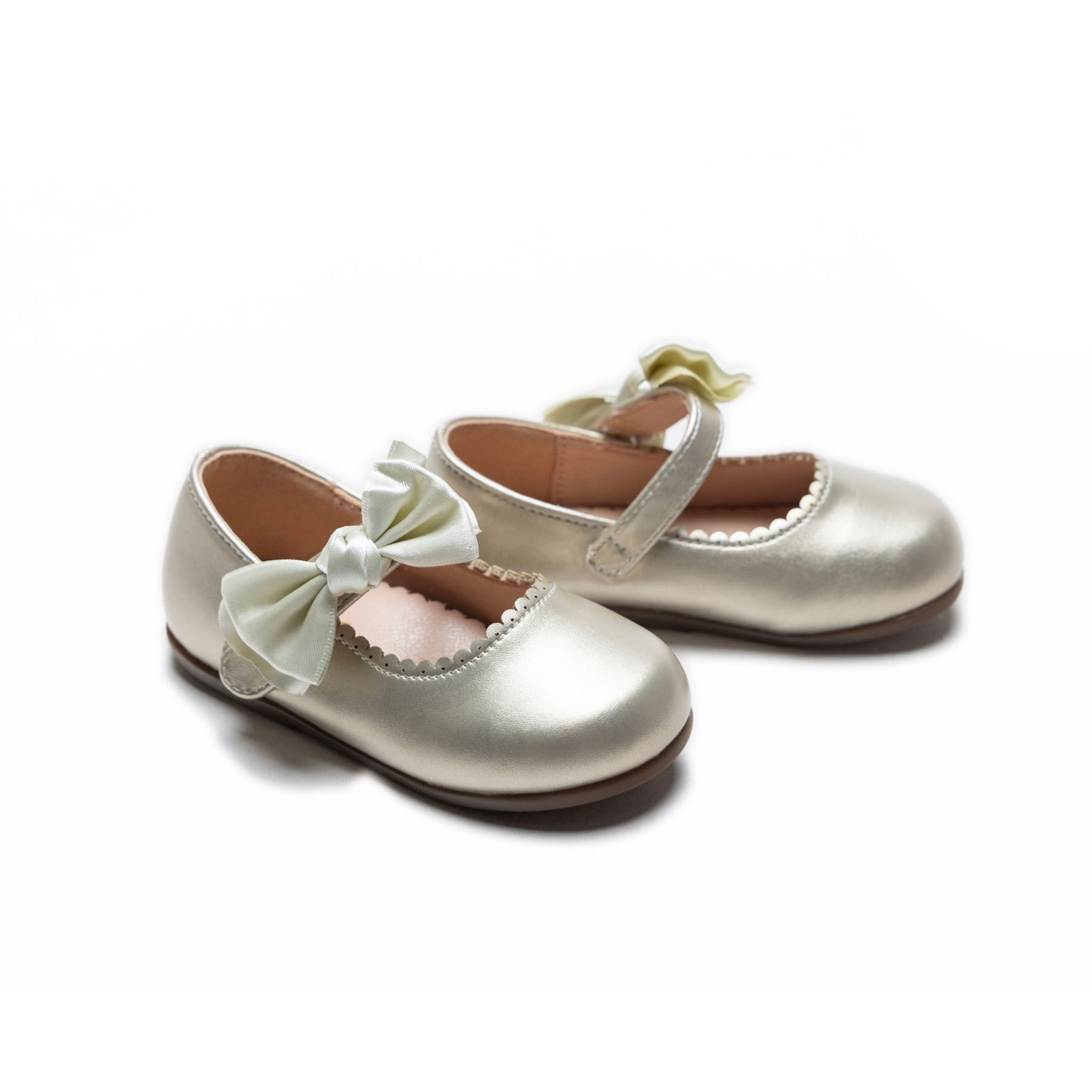 Designed for both comfort and style, the Ivory Satin Elodie Bow Flats by Tulleen offer a luxurious yet practical choice for little girls who love a refined and graceful aesthetic. Their exquisite detailing and timeless appeal make them a must-have addition to any wardrobe.