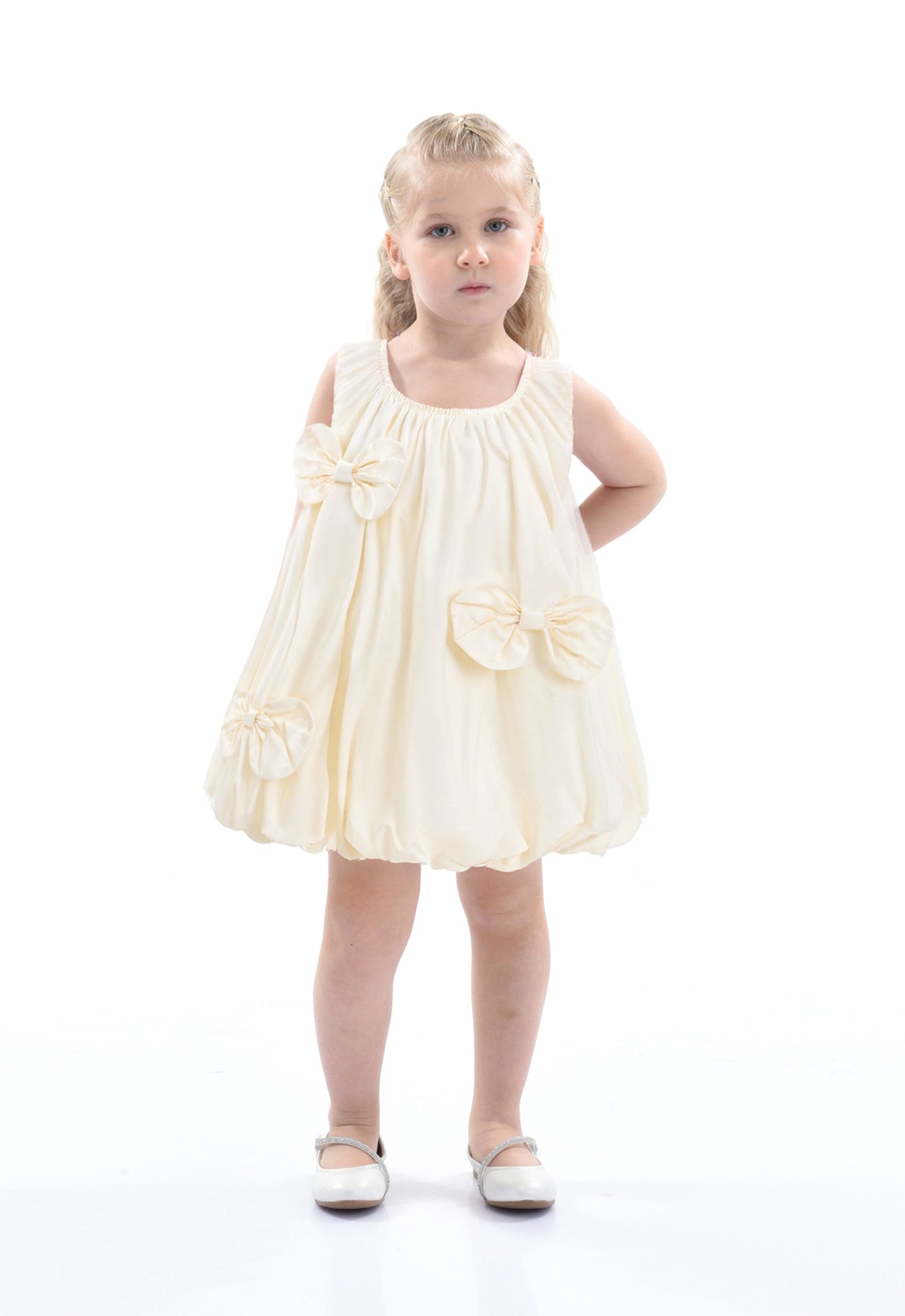 Ivory Sleeveless Bow Dress