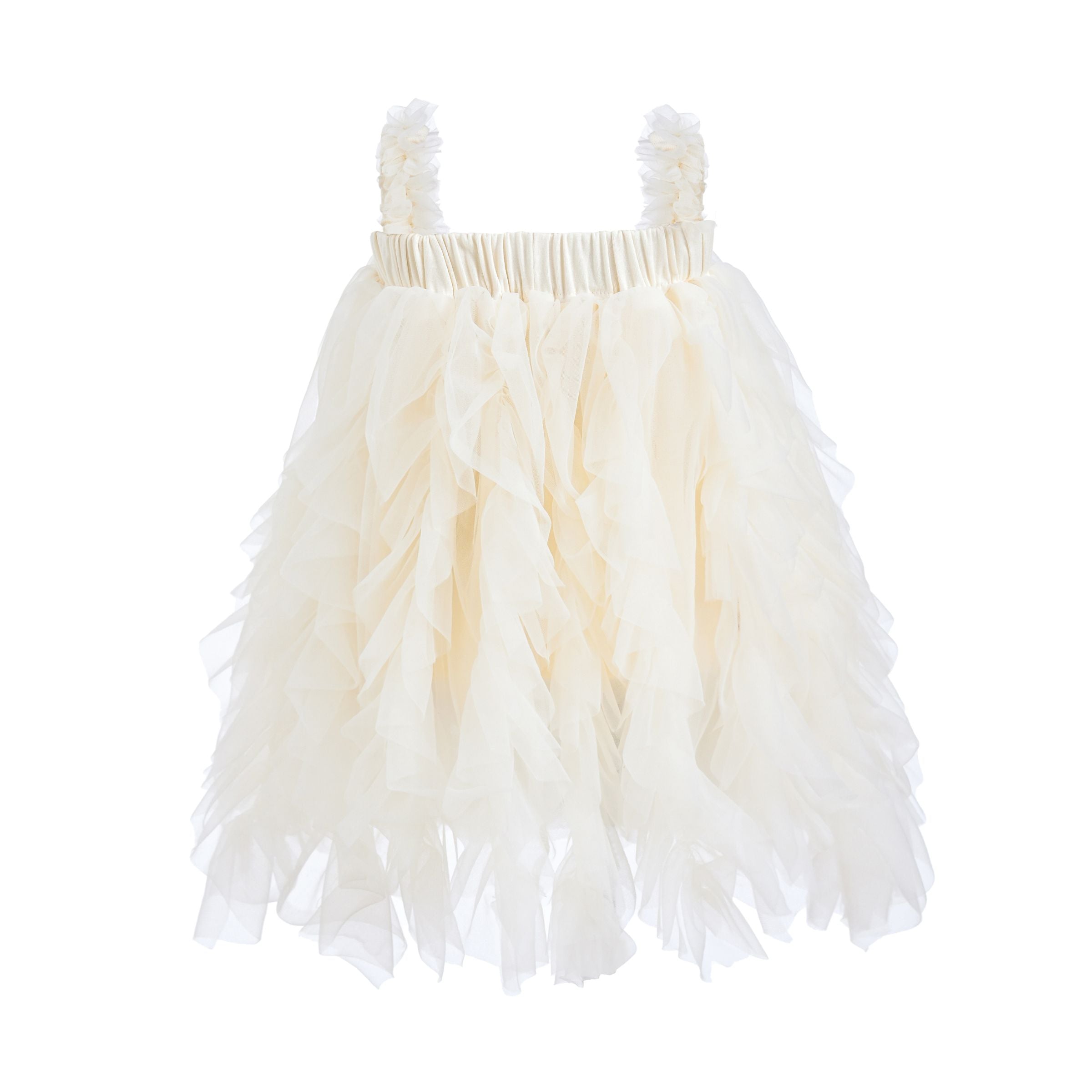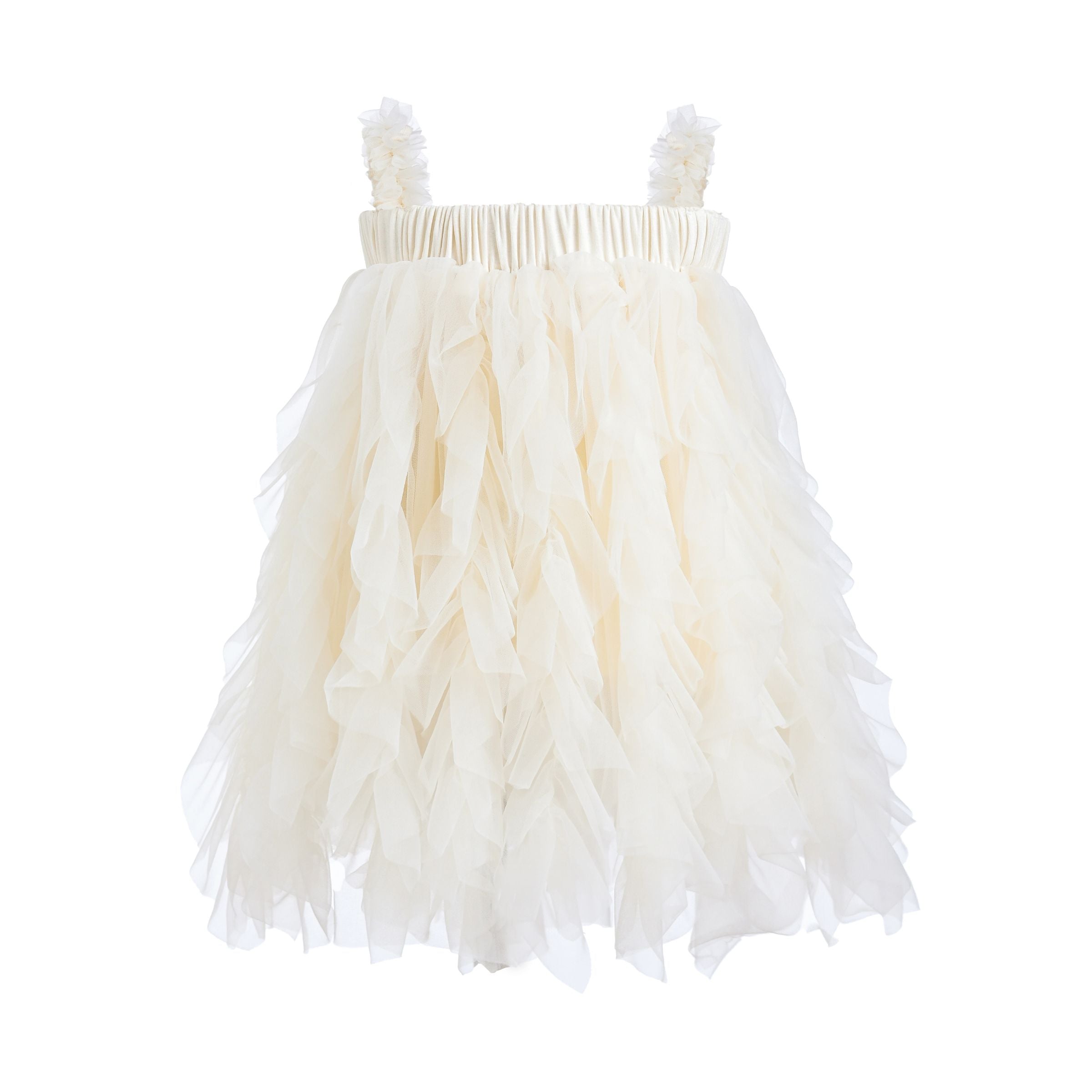 The Ivory Sleeveless Ruffle Layered Dress combines timeless elegance with playful movement, featuring cascading ruffle layers and a classic sleeveless cut. The soft ivory hue adds a touch of refined charm to its flowing silhouette.