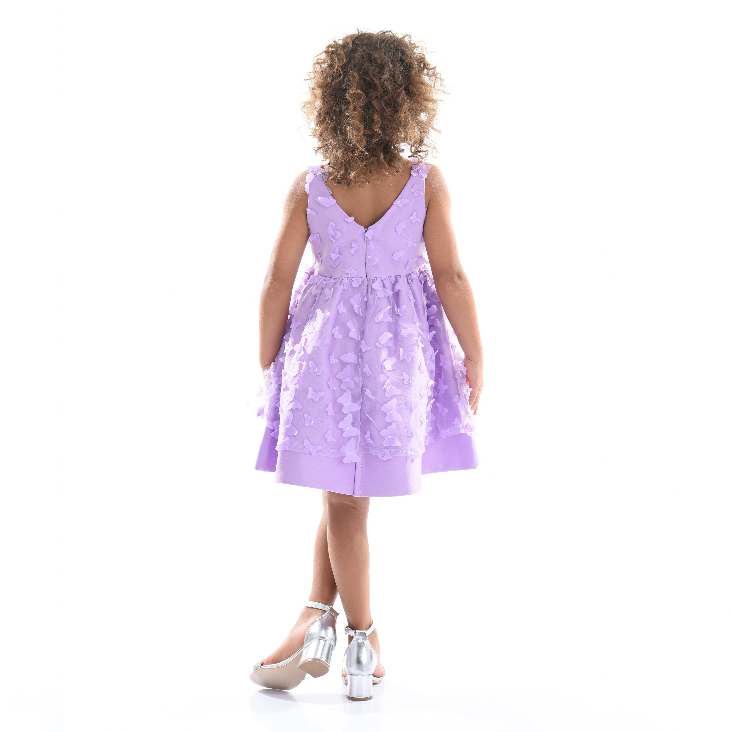 The Lavender Mariposa Tulle Dress for kid girls from Tulleen is a delightful and enchanting choice for any special occasion. This dress is decorated with 3D butterfly embellishments, adding a touch of whimsy and elegance. Firstly, the sleeveless cut and round neck ensure a comfortable and classic fit.