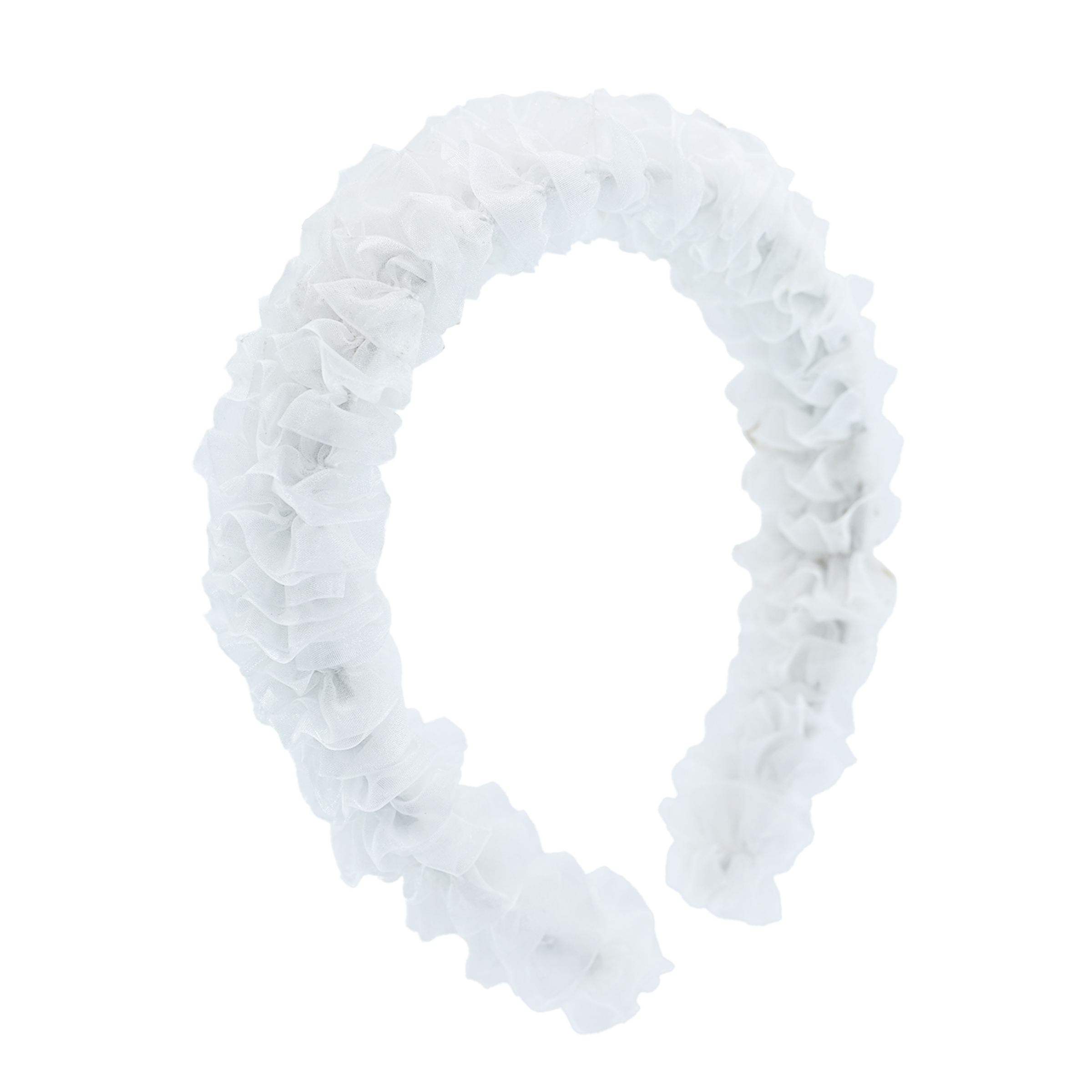 Introducing the Tulle Ruffled Headband by Mimi Tutu, a dreamy accessory that adds a touch of whimsy and elegance to any look. Designed with delicate tulle ruffles, this headband creates a soft, airy texture that enhances any hairstyle with effortless charm.