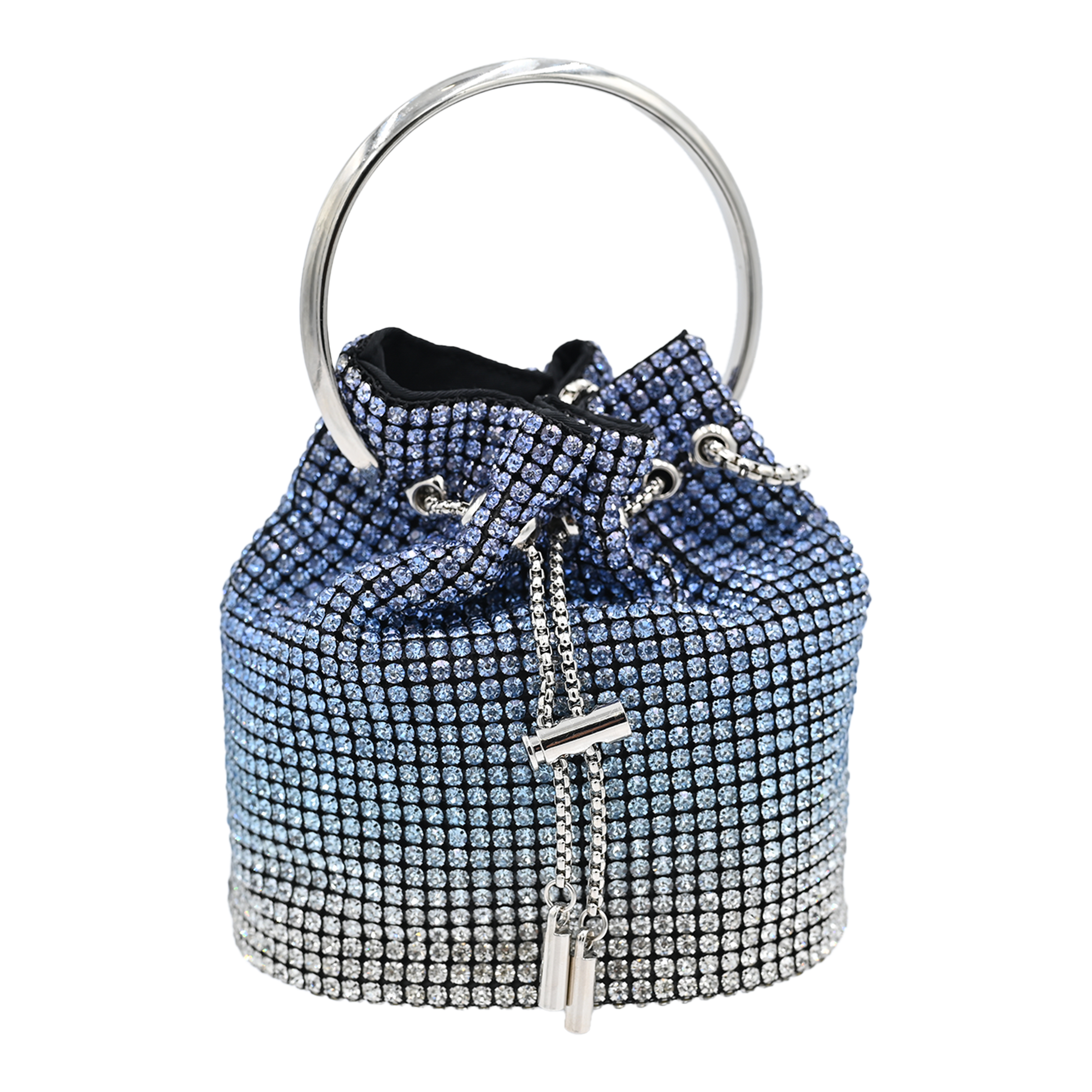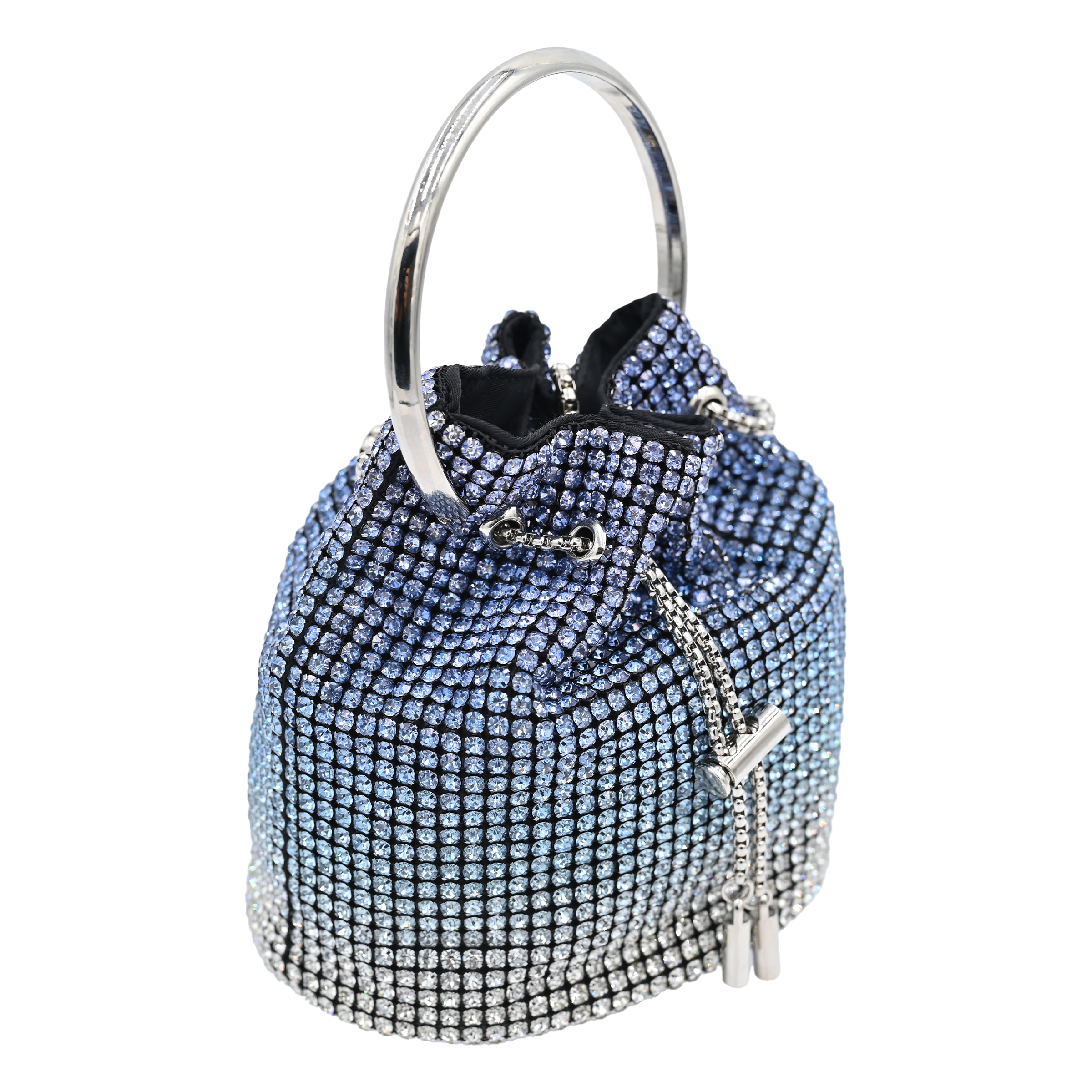Introducing the enchanting Moonstone Rhinestone Chain Buckle Purse by Mimi Tutu, a magical accessory designed to captivate little girls. This exquisite bucket bag sparkles with dazzling rhinestone accents, enhanced by a mesmerizing blue-silver gradient that evokes the ethereal glow of moonlight.