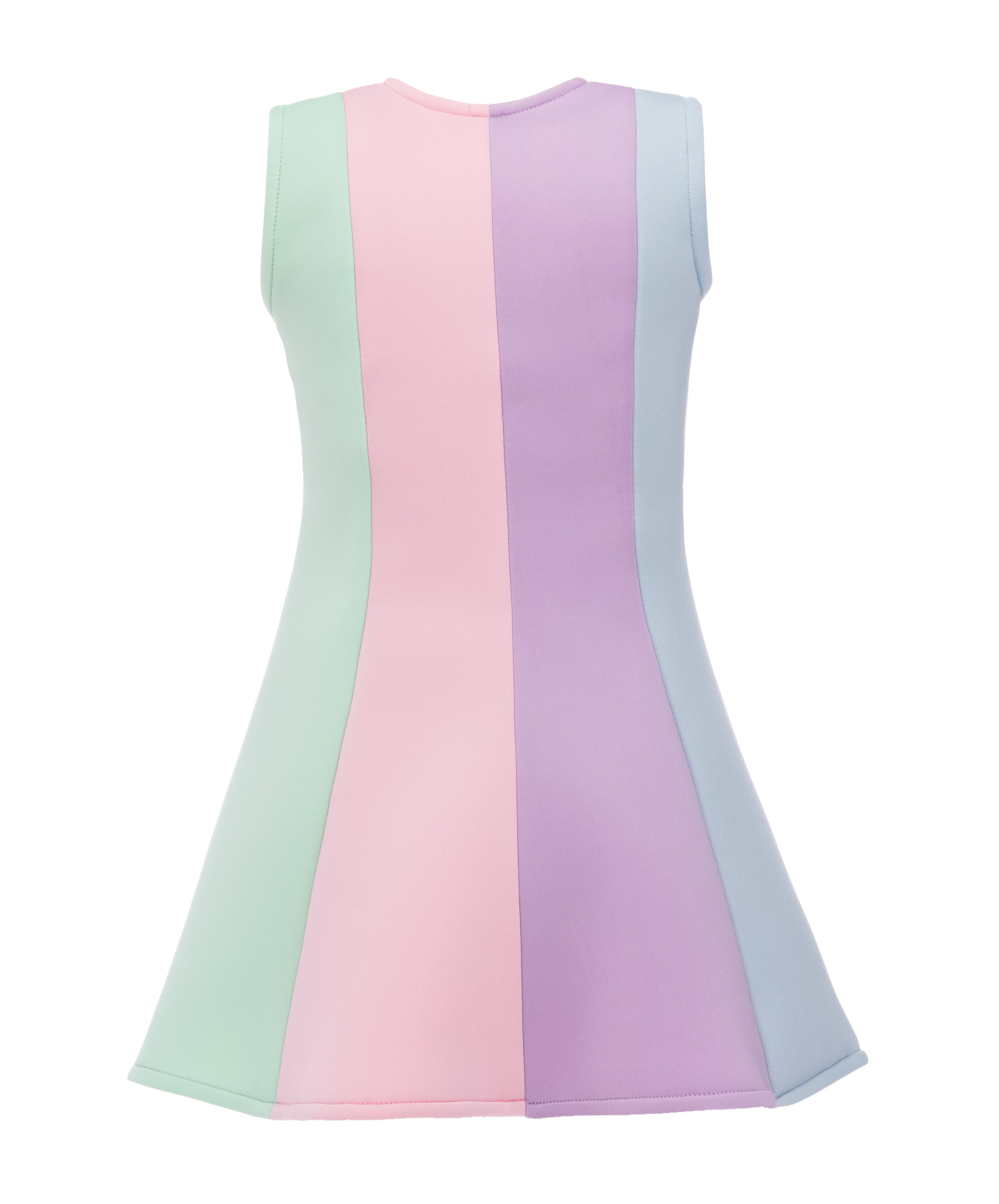 Made of soft scuba fabric, this dress is perfect for any fun and special occasion. The zip closure at the back makes it easy to wear. The Multi Sophie rainbow striped dress from Mimi Tutu is ideal for making a colorful statement.