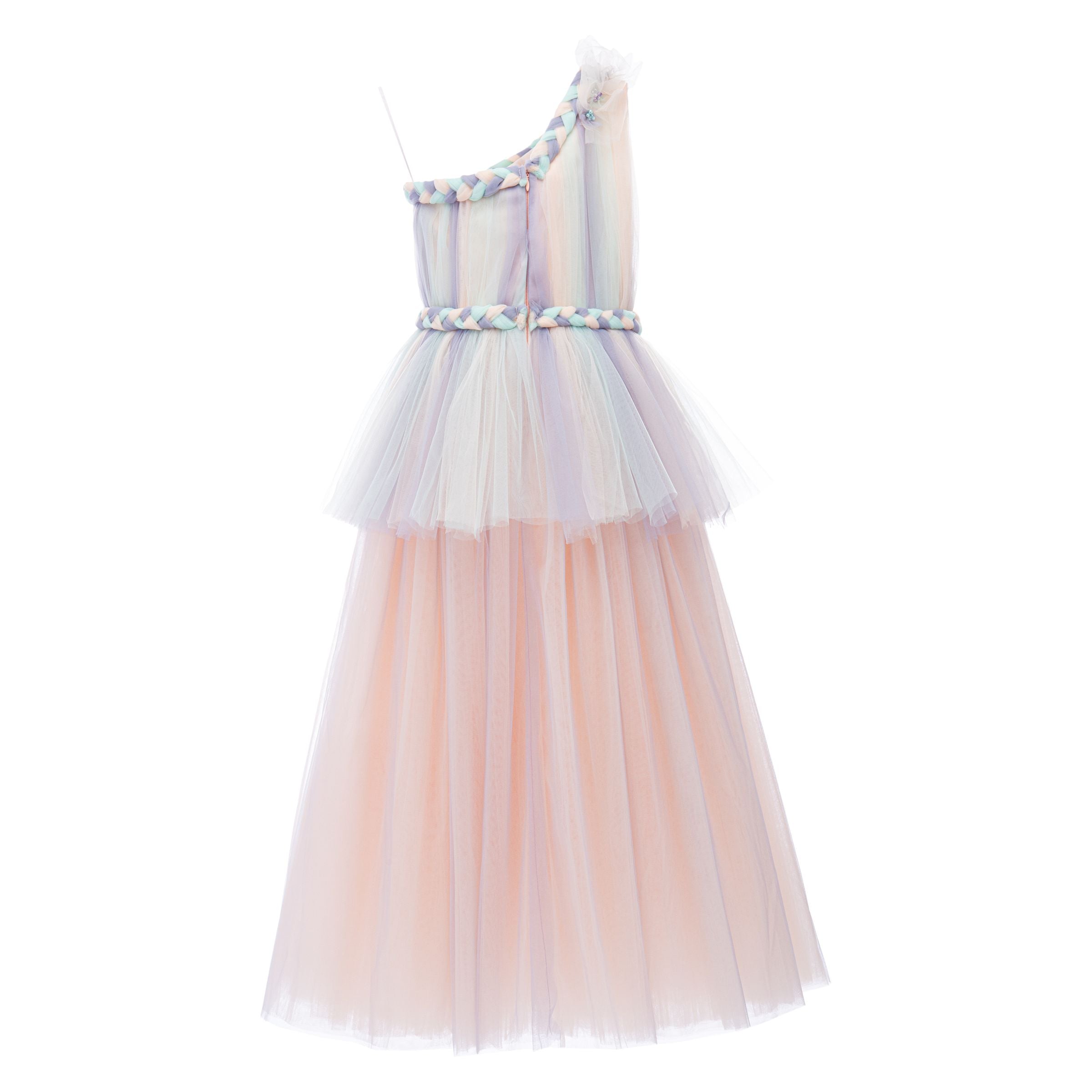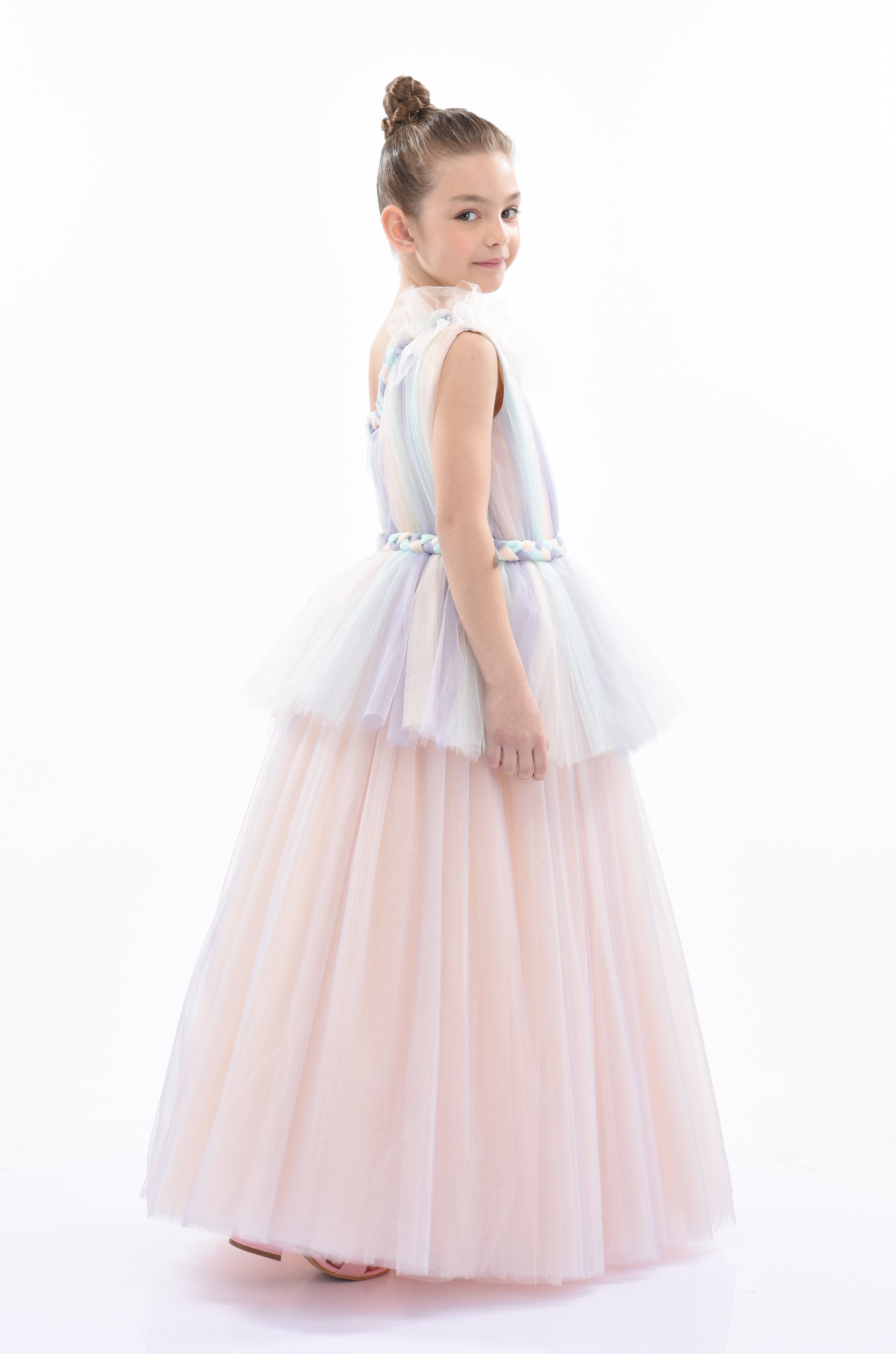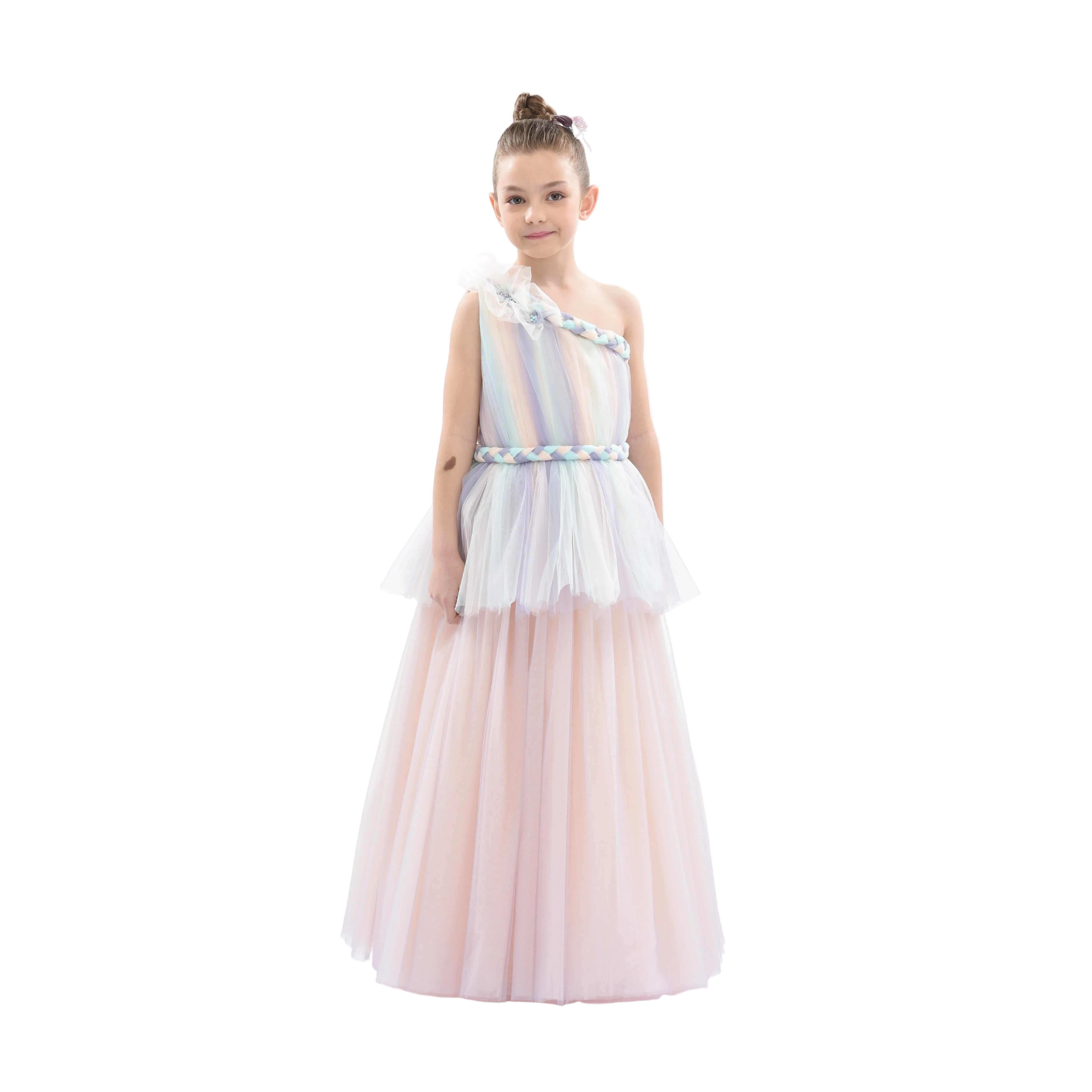 Overall, the Multicolor Apollo Iridescent Tulle Gown combines elegance, comfort, and vibrant design elements, making it a perfect showstopper piece for any young girl's wardrobe. This gown ensures your child looks and feels special at any event.
