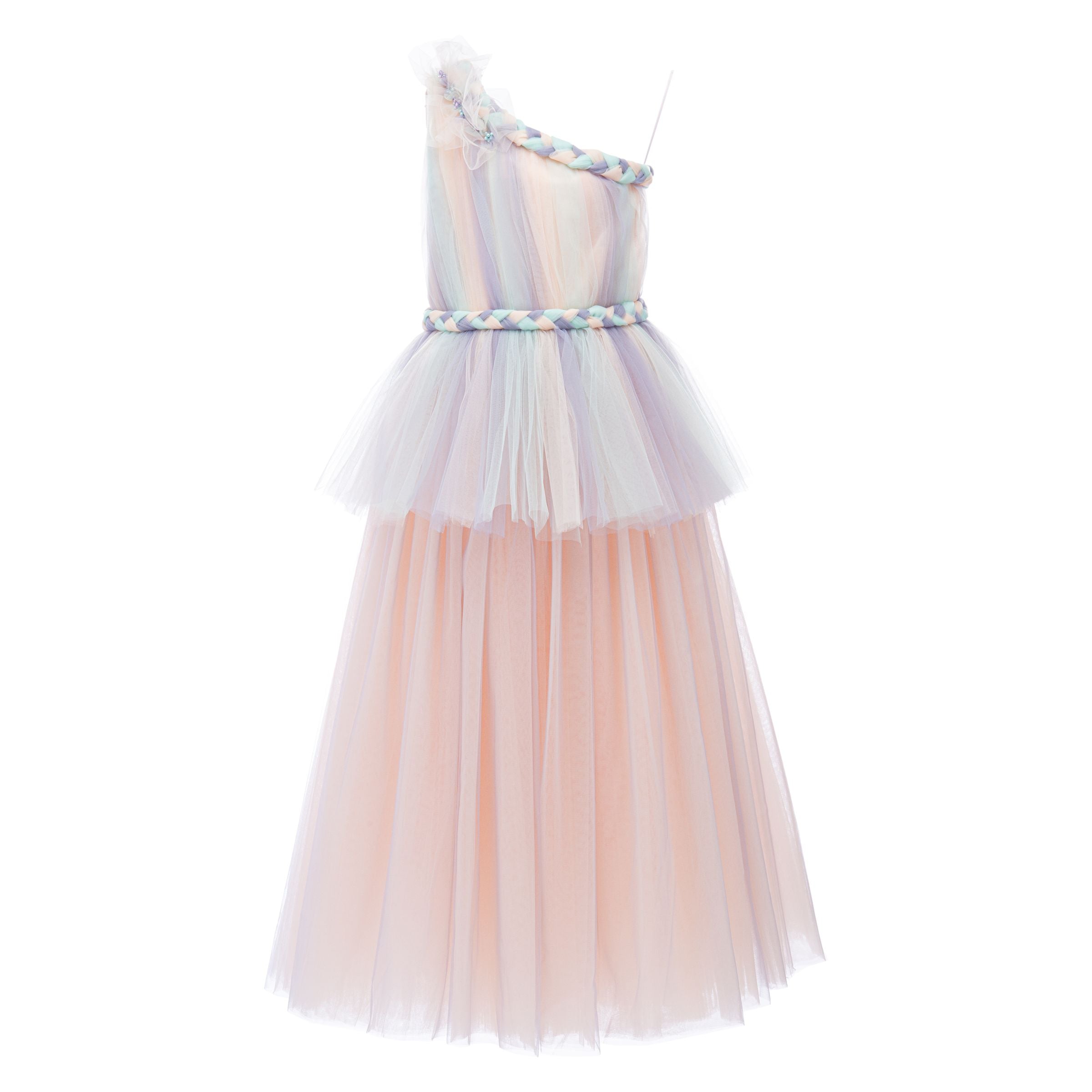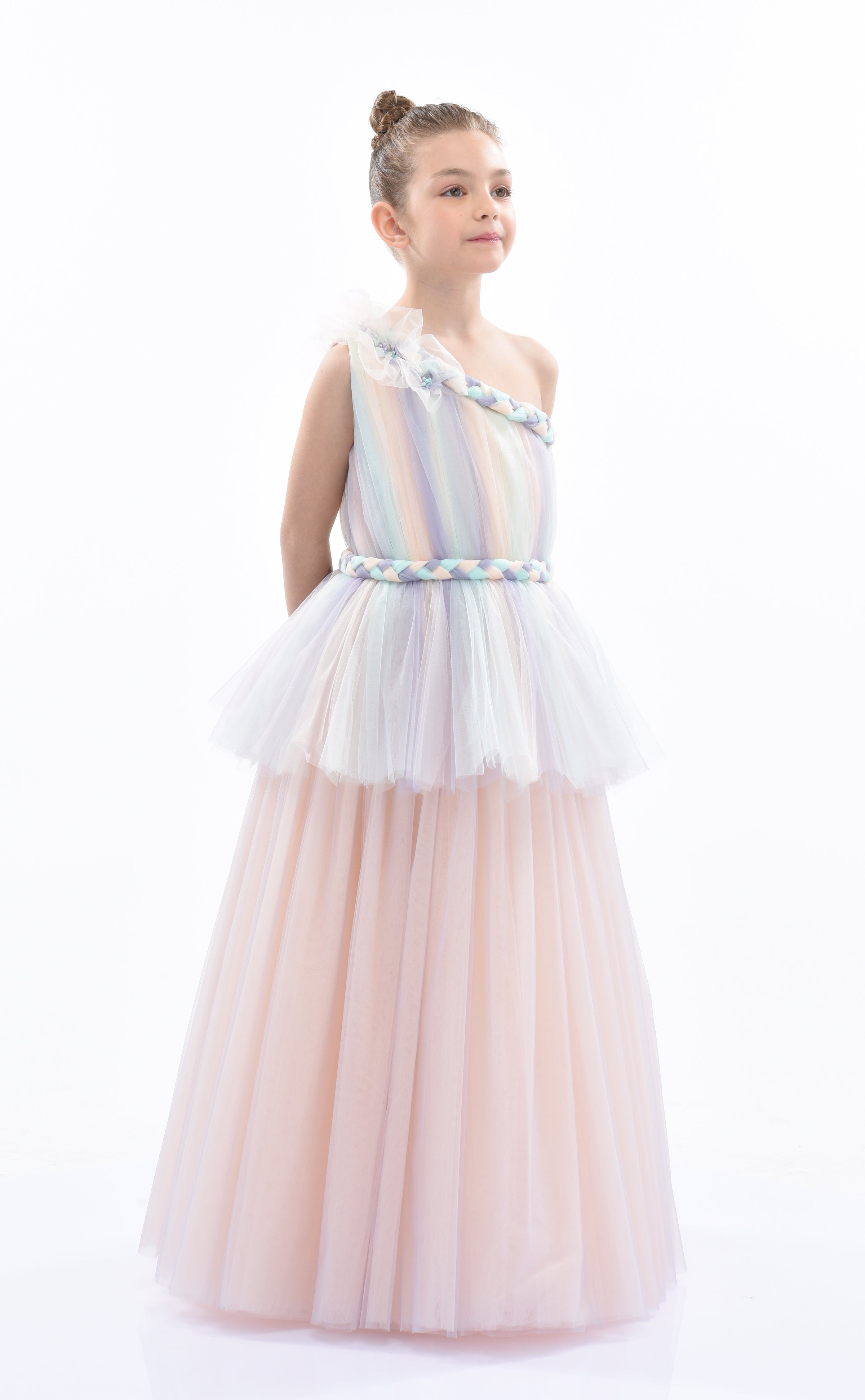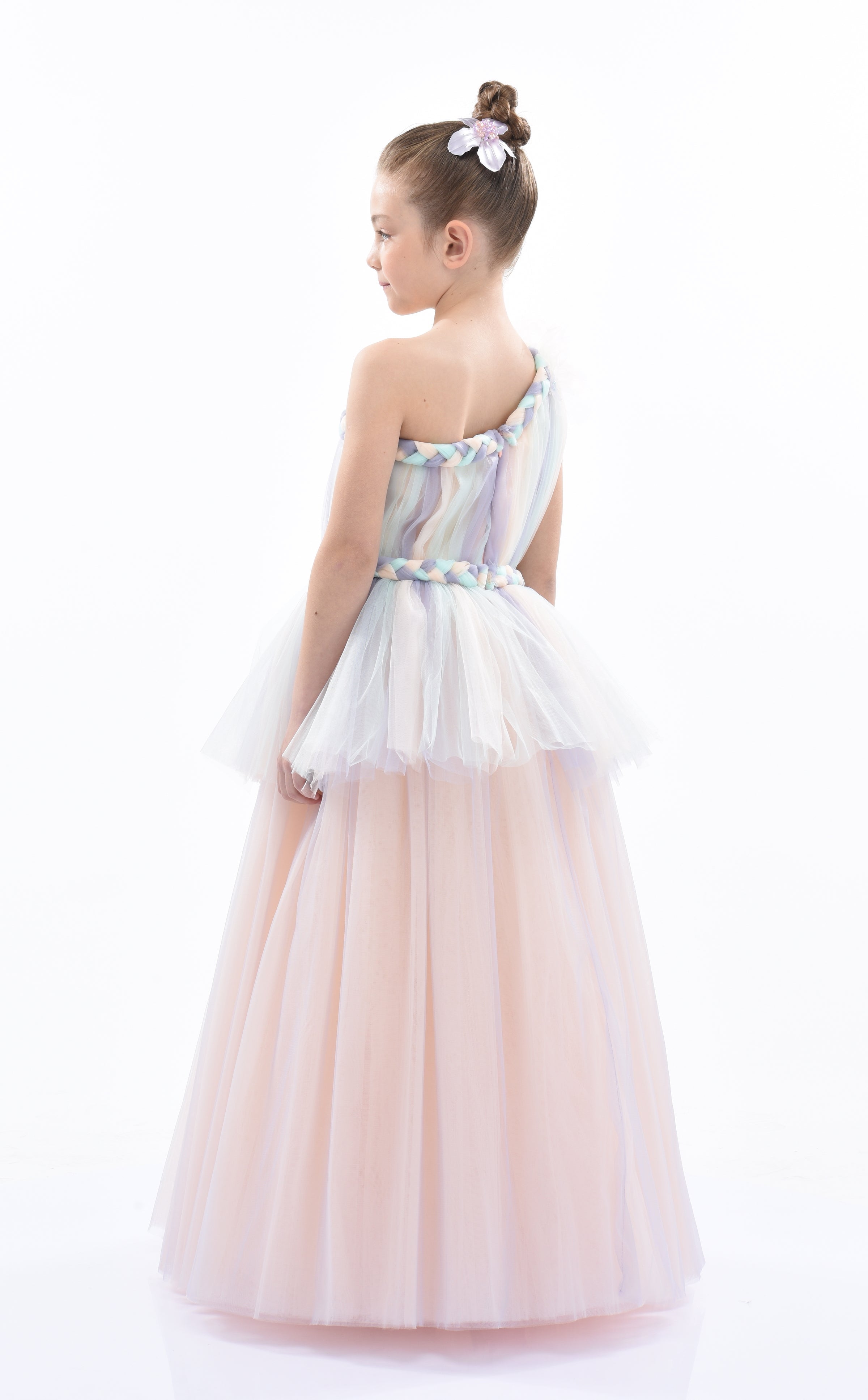 Overall, the Multicolor Apollo Iridescent Tulle Gown combines elegance, comfort, and vibrant design elements, making it a perfect showstopper piece for any young girl's wardrobe. This gown ensures your child looks and feels special at any event.