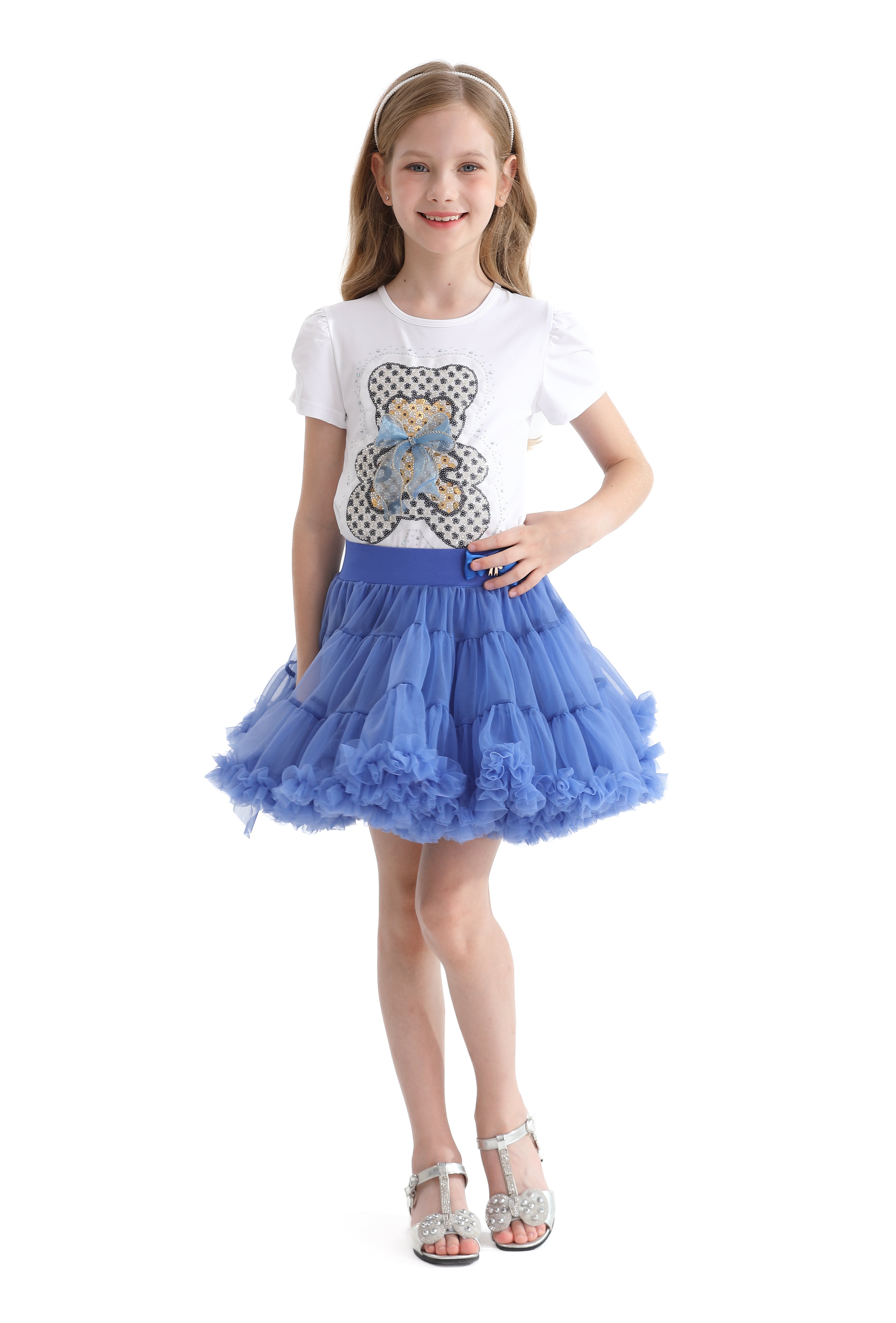 - Blue bow applique skirt