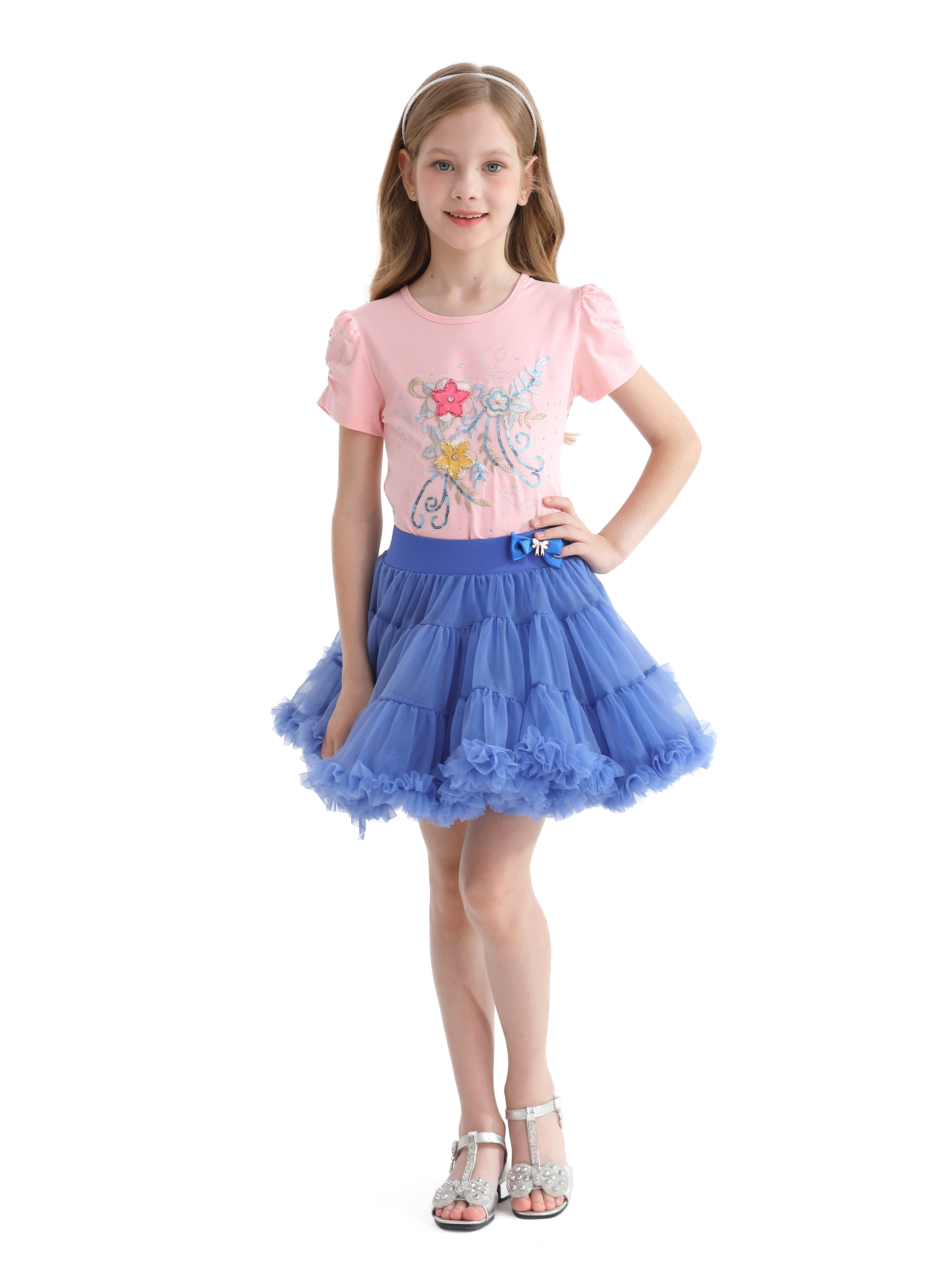 - Blue bow applique skirt