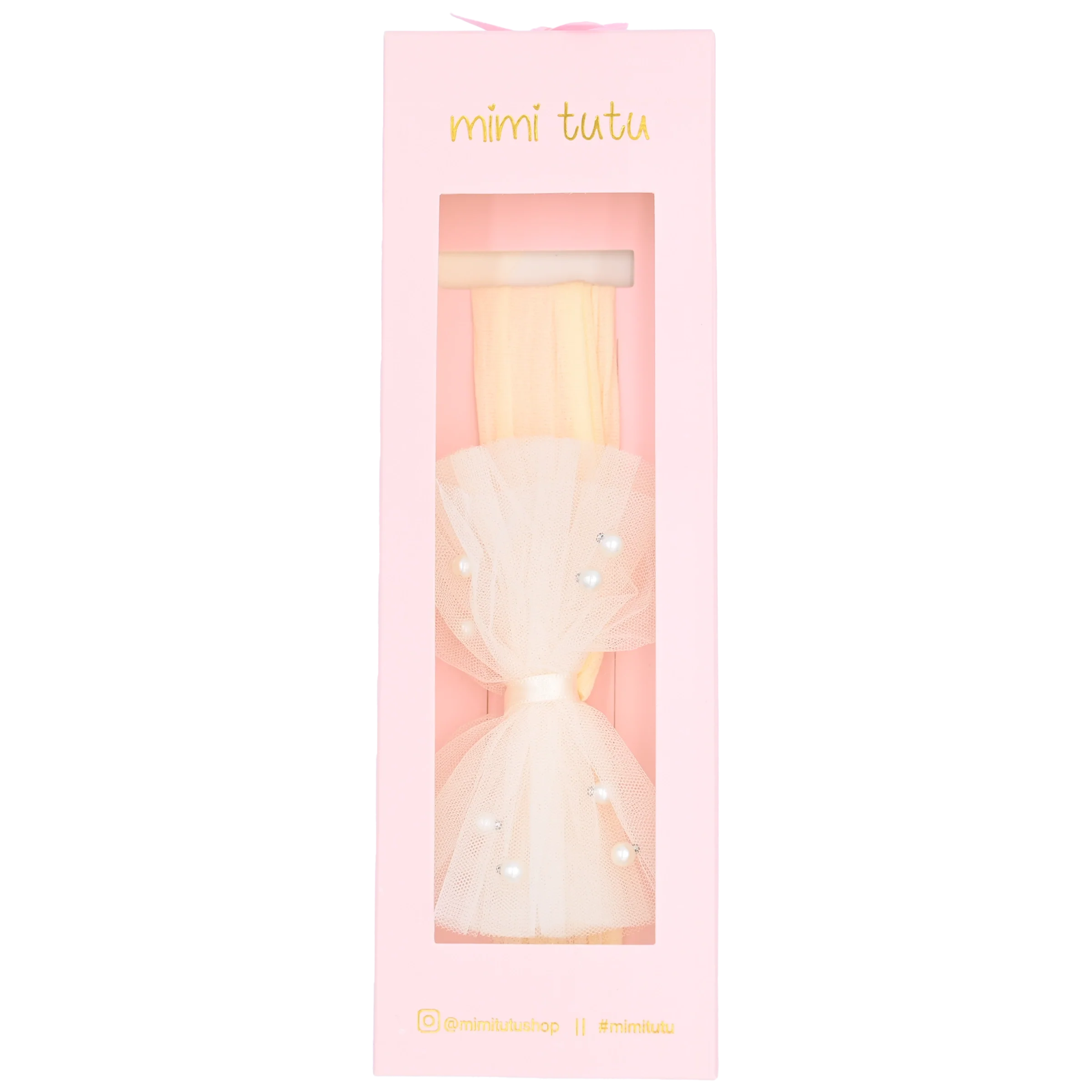 The Multicolored Tulle Pearl Ribbon Headband by Mimi Tutu is a must-have accessory for those who love a blend of charm and sophistication. Whether for everyday wear or a special event, this headband effortlessly elevates any look with its graceful design.