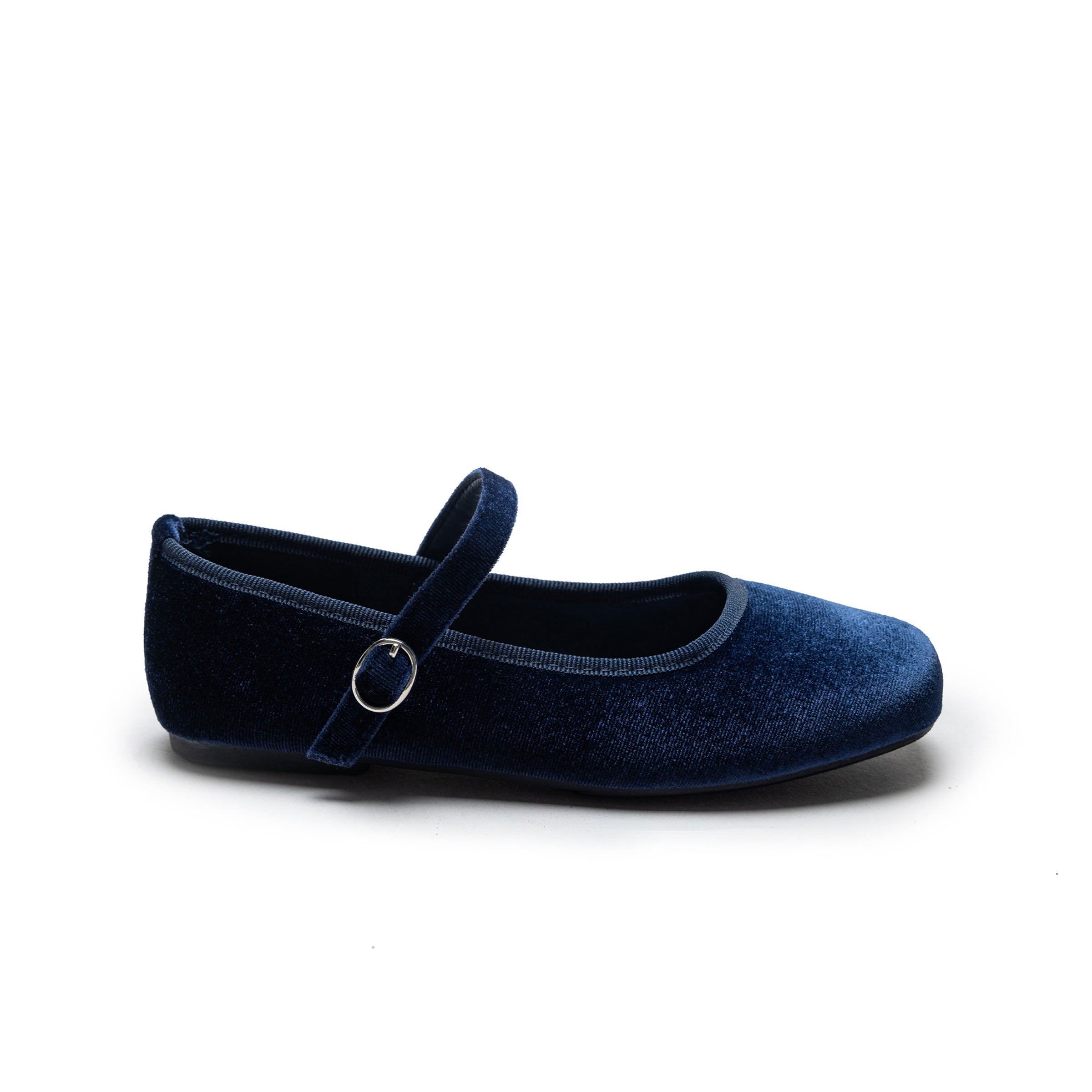 Whether paired with dresses or casual ensembles, the Navy Michelle Satin Velvet Flats add a polished and graceful finishing touch.