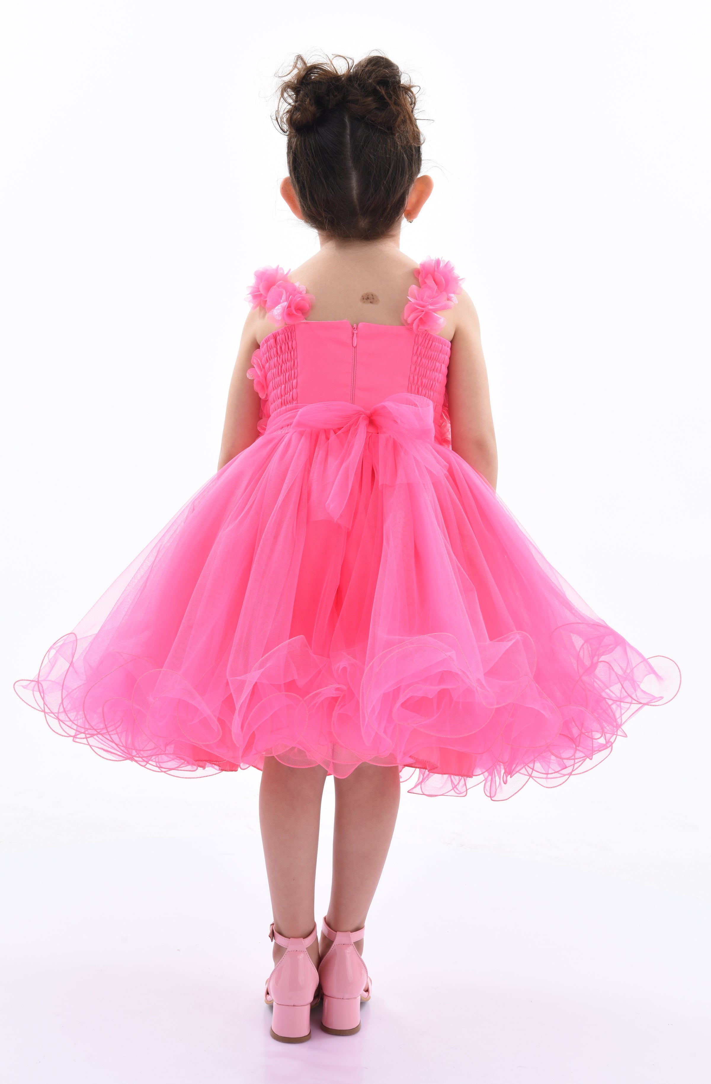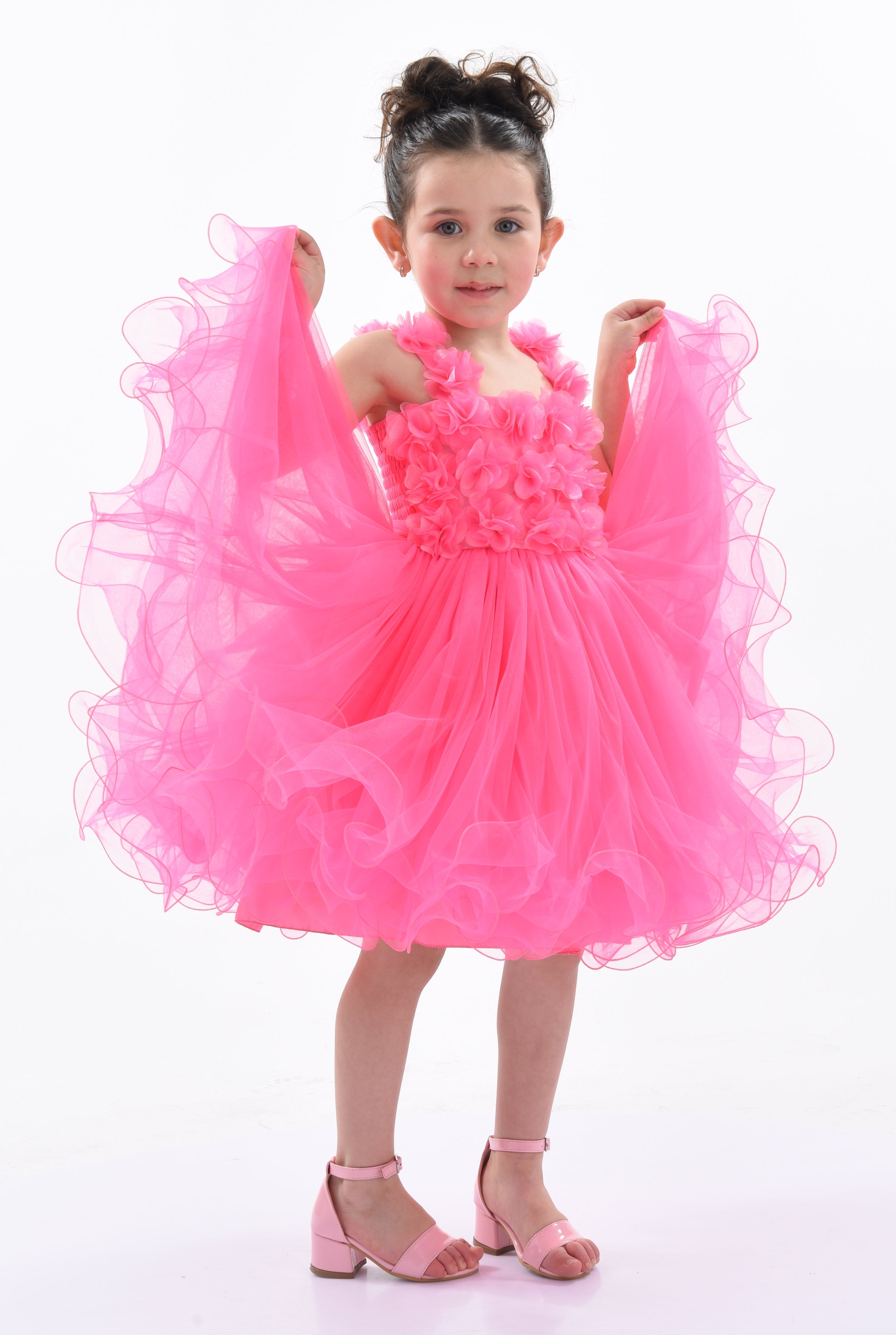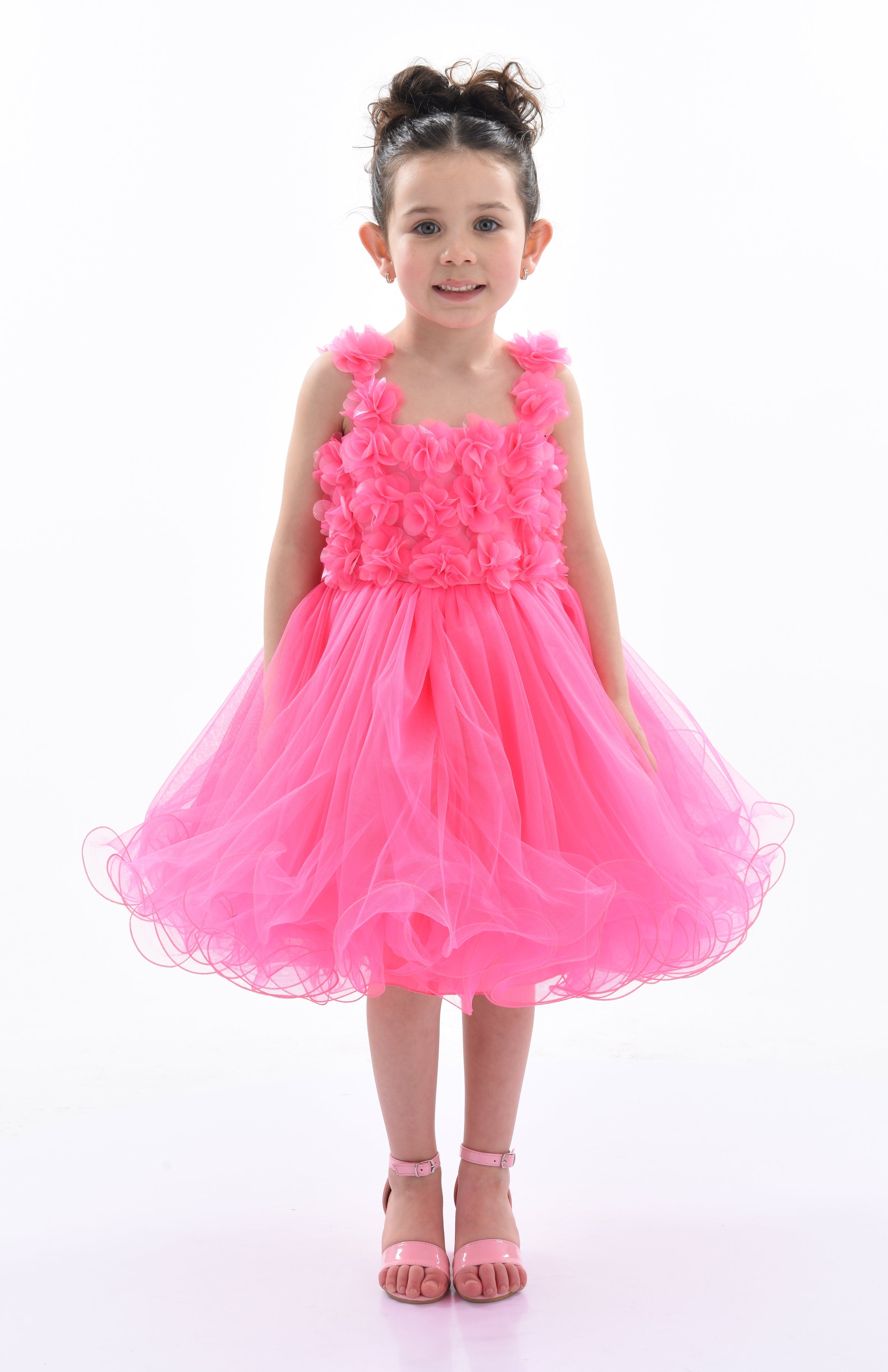 Overall, the Neon Pink Rose Campanula Dress combines bold elegance, comfort, and intricate design elements, making it a perfect addition to any young girl's wardrobe. This dress ensures your child looks and feels special at any event.