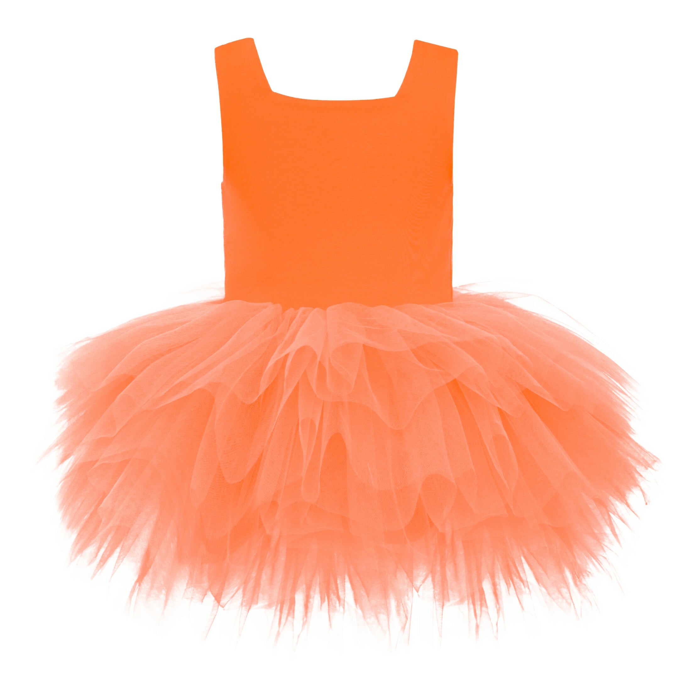 The Orange Neon Solid Dress from Mimi Tutu is an enchanting outfit for baby girls. This adorable dress features thin sleeves and a square neck, offering a timeless and sophisticated look. The multiple layers of lightweight lush tulle create a voluminous and airy skirt, perfect for twirling and dancing. The tulle underlay adds a touch of contrast, enhancing the dress's overall elegance.