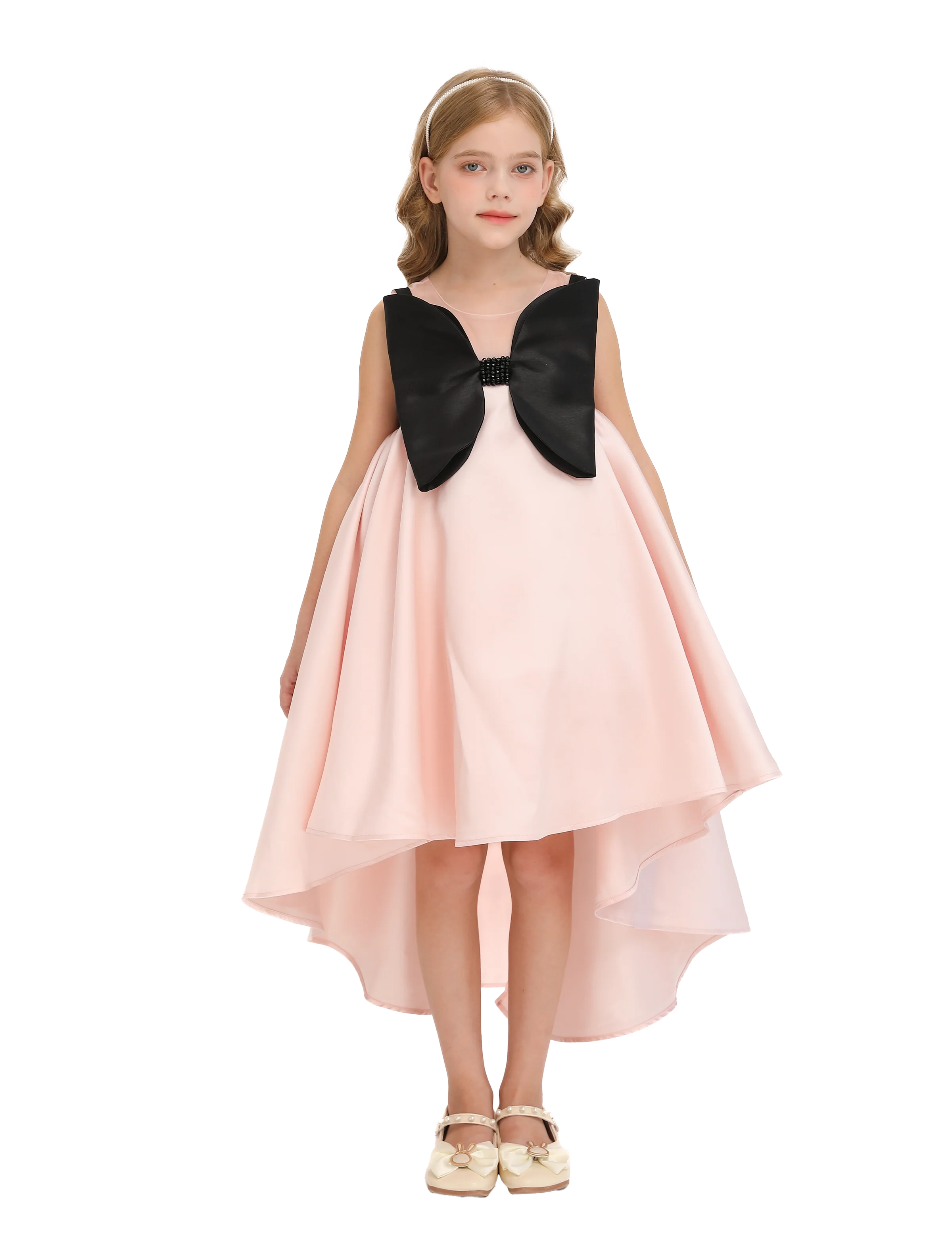 Introducing the charming Pink Dress Black Bow Ophelia Dress by Tulleen, a delightful combination of playful elegance and timeless design. This enchanting dress showcases a soft pink hue, beautifully complemented by a striking oversized black bow accent that adds a bold, stylish touch.