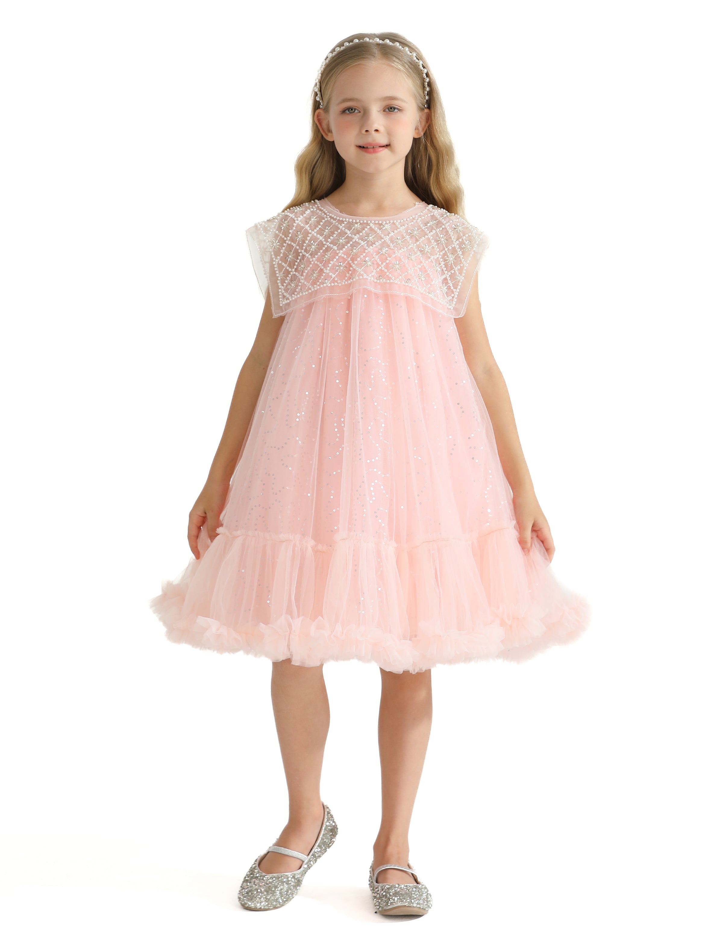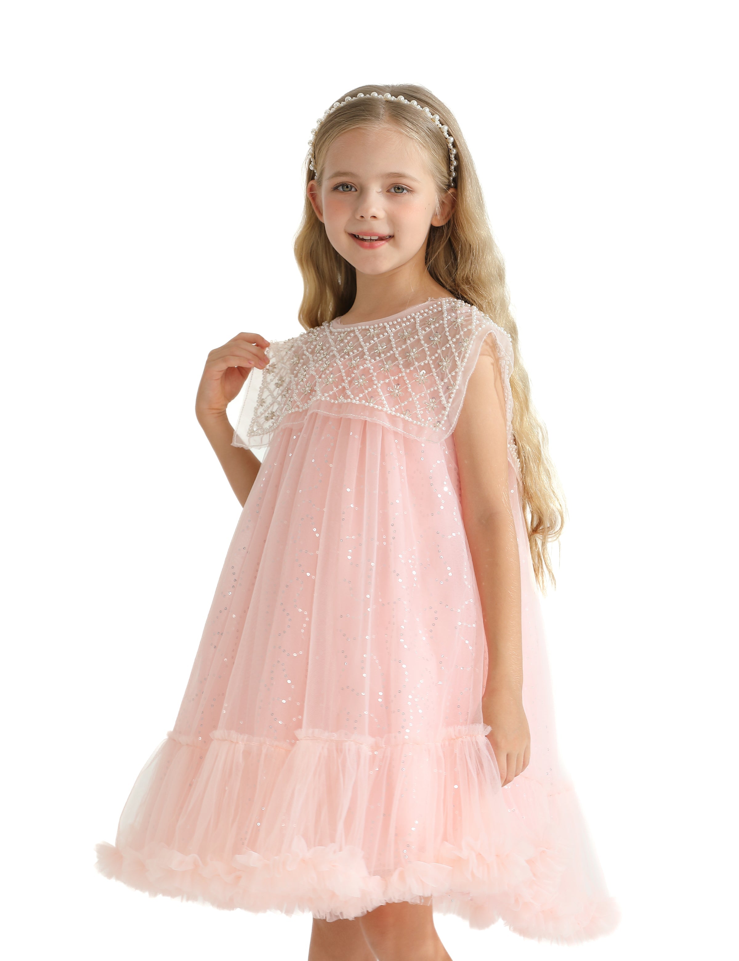 The Pink Esperanza Smocked Dress for kid and baby girls from Tulleen is an enchanting choice for any special occasion. This dress features a sleeveless balloon silhouette in different hues of pink, creating a playful and charming look. Firstly, the mesh shoulders add a delicate and airy touch, enhancing the overall elegance of the dress. The round neck provides a classic fit, ensuring comfort and style.