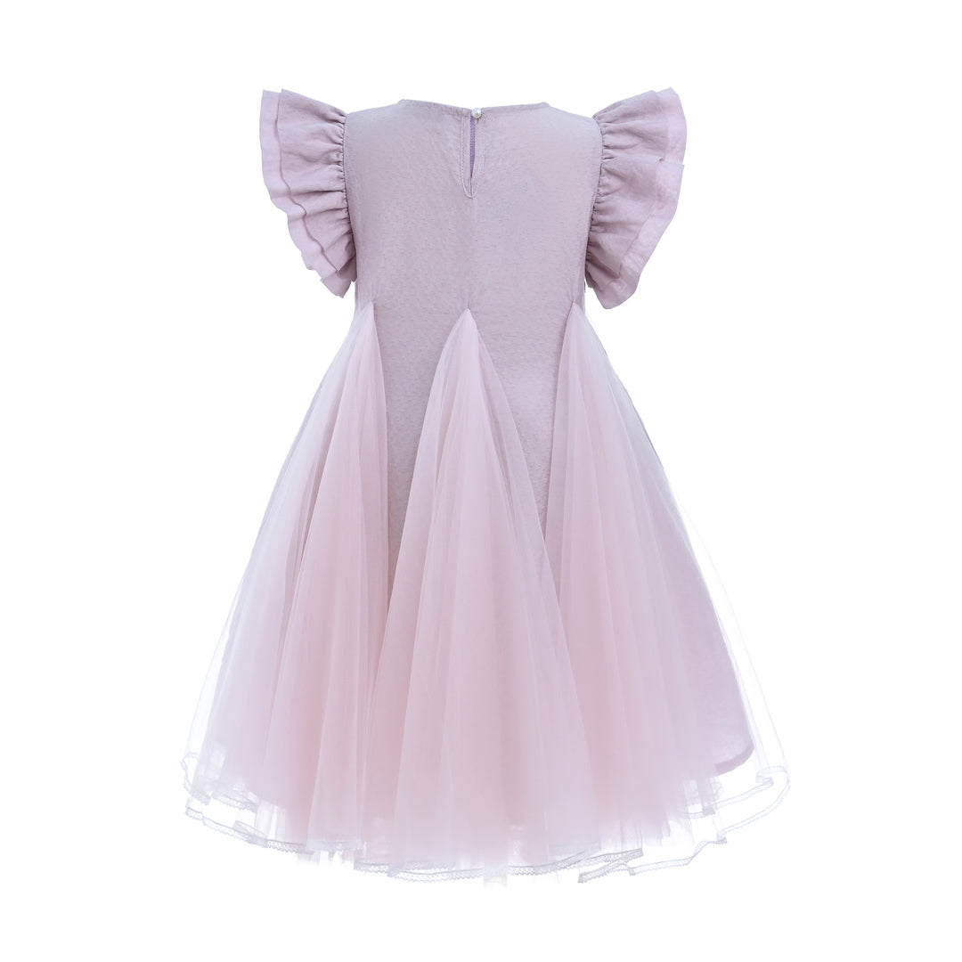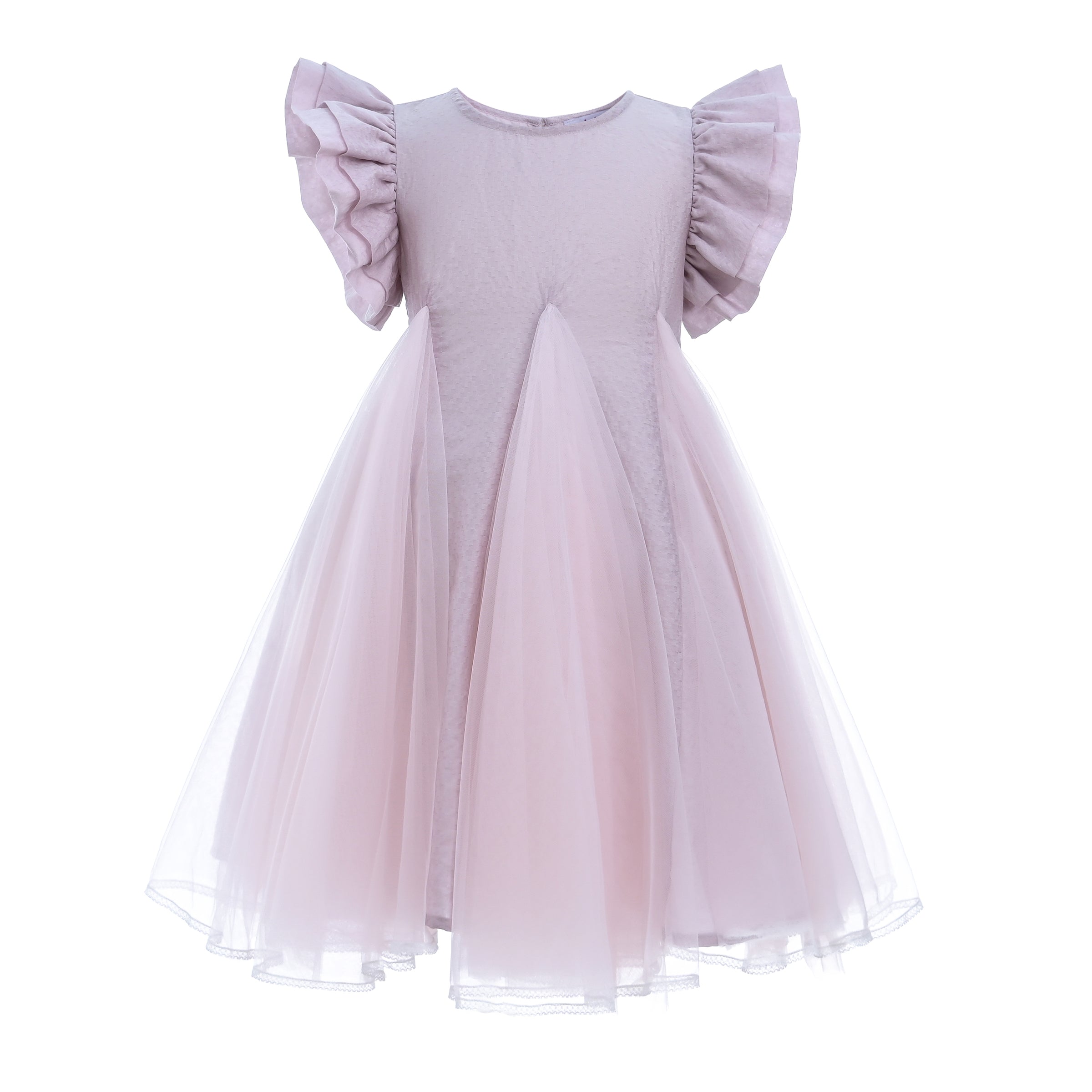 The Pink frill tulle dress for kid girls from Mimi Tutu is a charming and elegant piece perfect for any special occasion. This dress features short frills on the shoulders, adding a playful touch to the overall design. The round neck complements the segmented lightweight tulle skirt, creating a delicate and ethereal look.