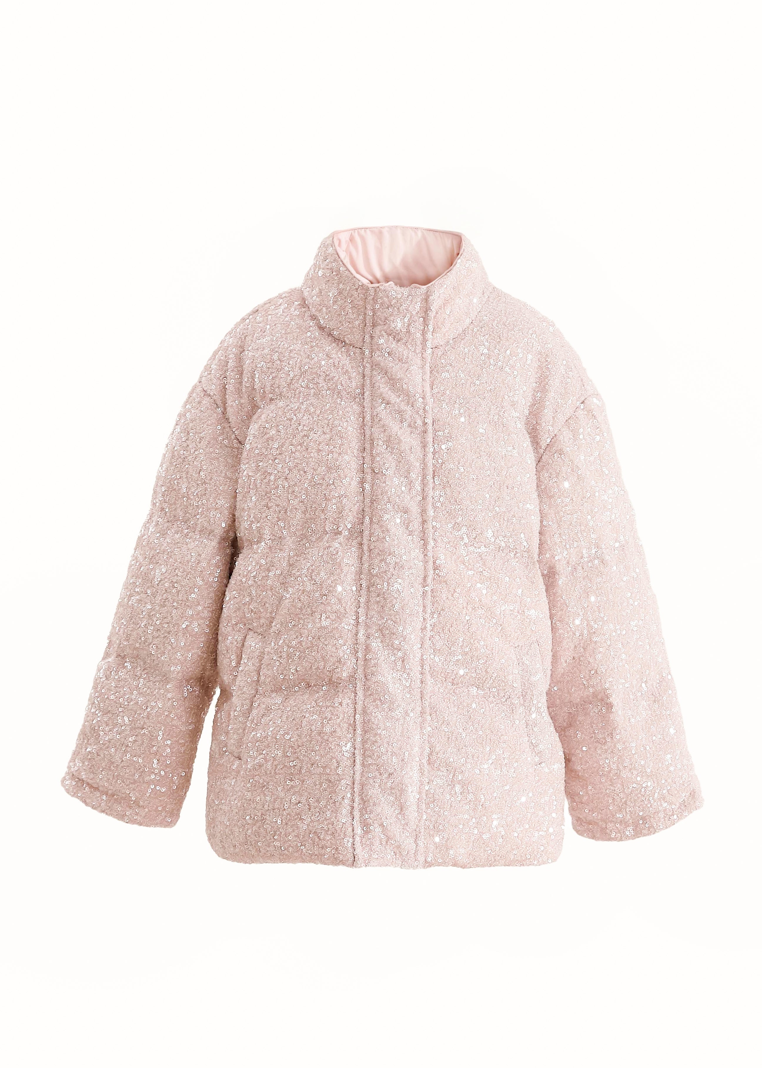 Pink Glitter Puffer Jacket