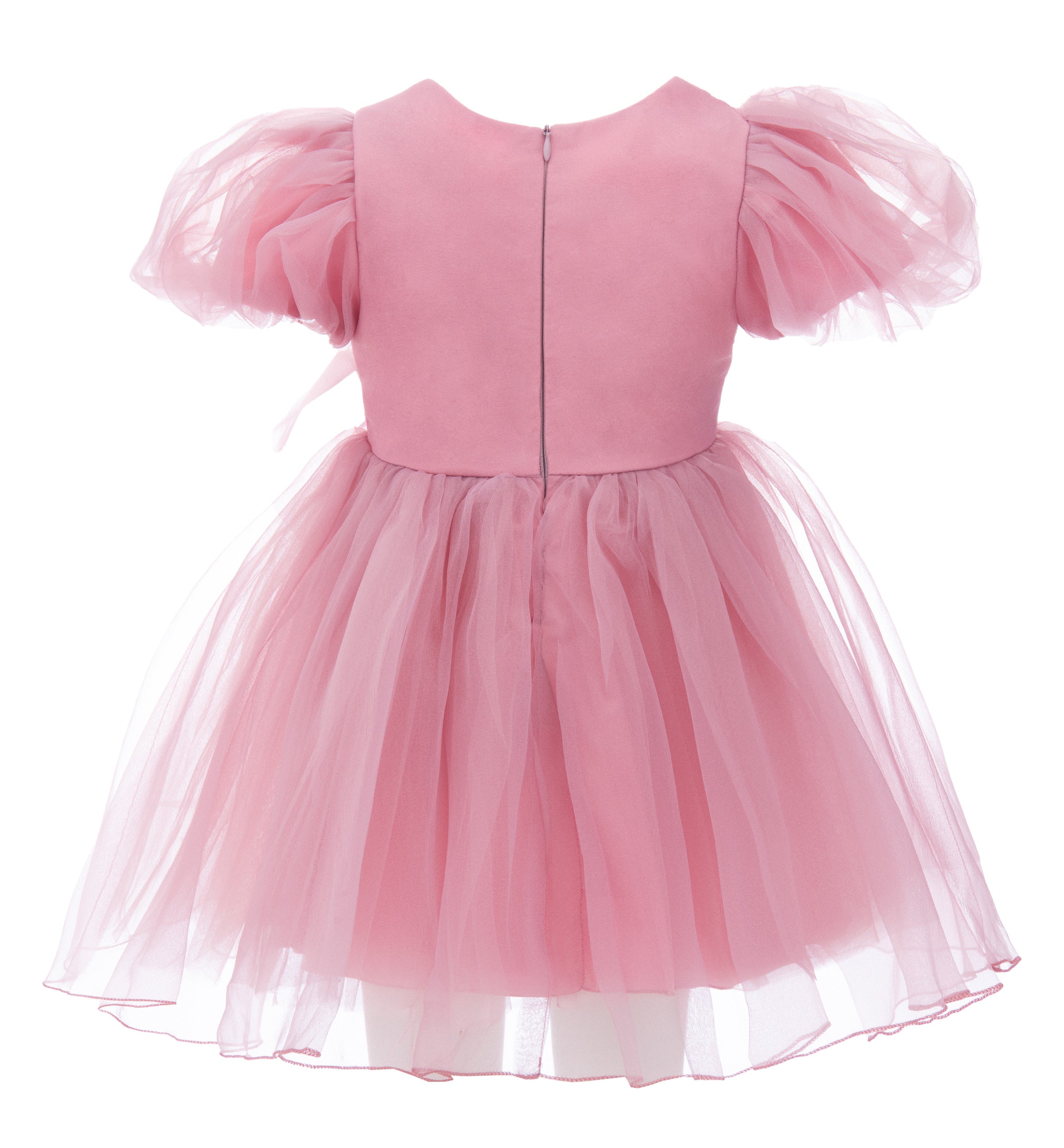 The Pink Raspberry Bow Organza Puff Shoulder Dress for kid girls from Tulleen is a delightful blend of elegance and whimsy, making it perfect for any special occasion. This dress features a lightweight tulle teacup organza design that ensures comfort and freedom of movement. Puffy lightweight shoulders add a touch of sophistication and charm.