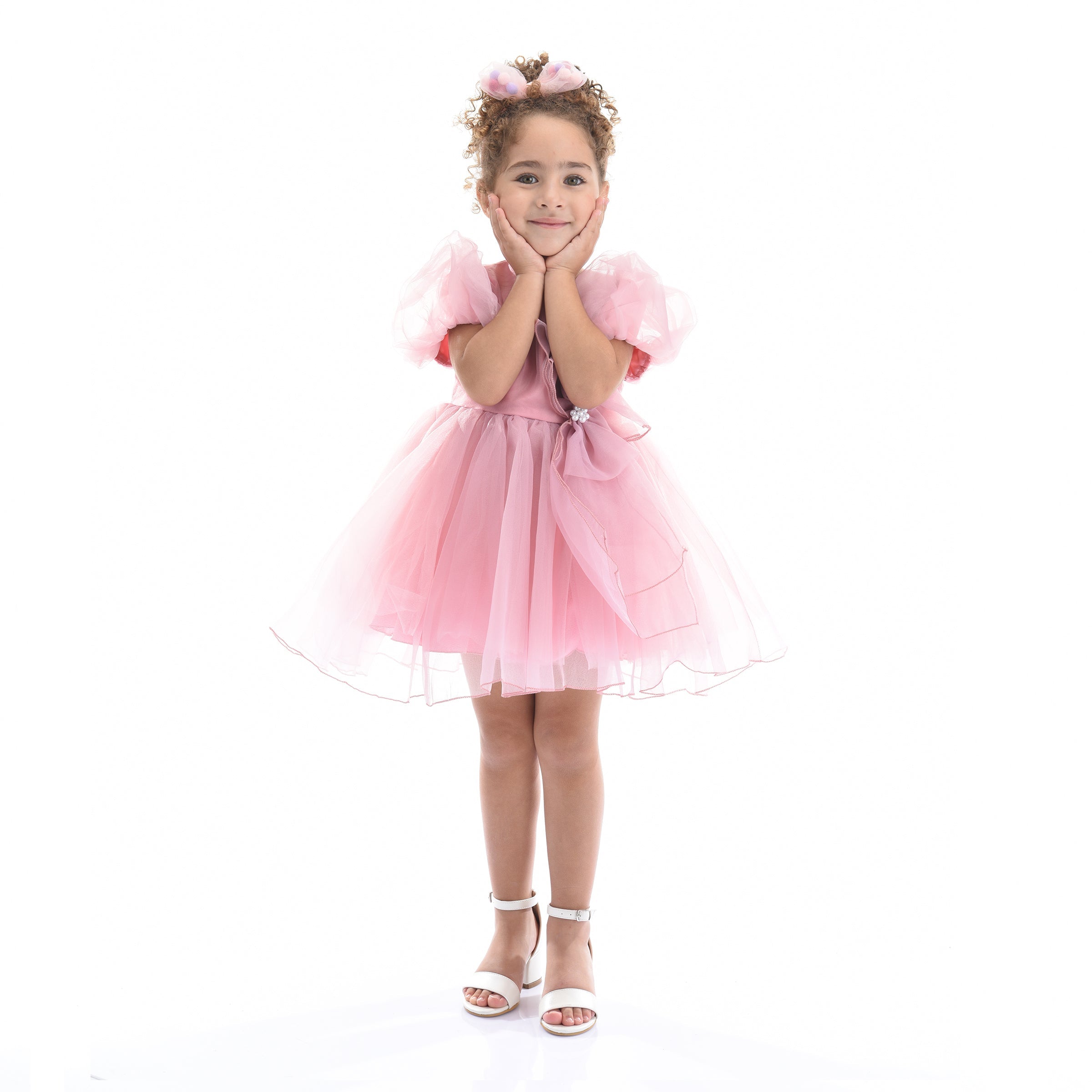 The Pink Raspberry Bow Organza Puff Shoulder Dress for kid girls from Tulleen is a delightful blend of elegance and whimsy, making it perfect for any special occasion. This dress features a lightweight tulle teacup organza design that ensures comfort and freedom of movement. Puffy lightweight shoulders add a touch of sophistication and charm.