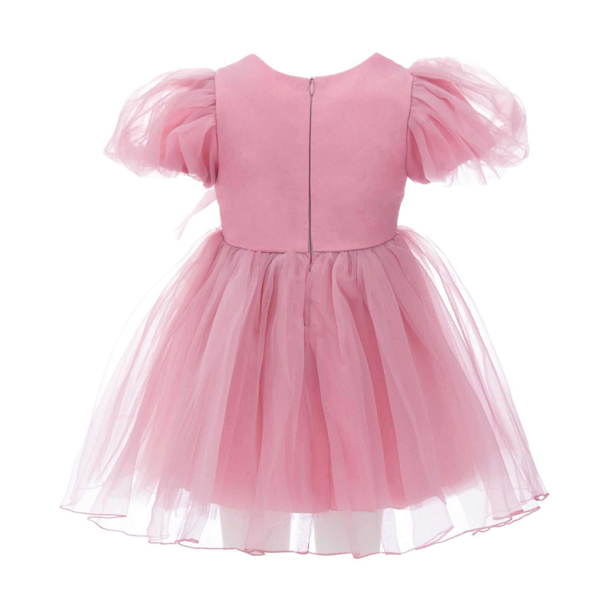 A detachable bow at the hem provides a whimsical and playful element. Made from 100% polyester with a 100% cotton lining, this dress offers both durability and comfort. Additionally, it requires dry cleaning to maintain its pristine appearance. Overall, the Pink Raspberry Bow Organza Puff Shoulder Dress combines charm, elegance, and playful design elements, ensuring your child looks and feels special at any event.