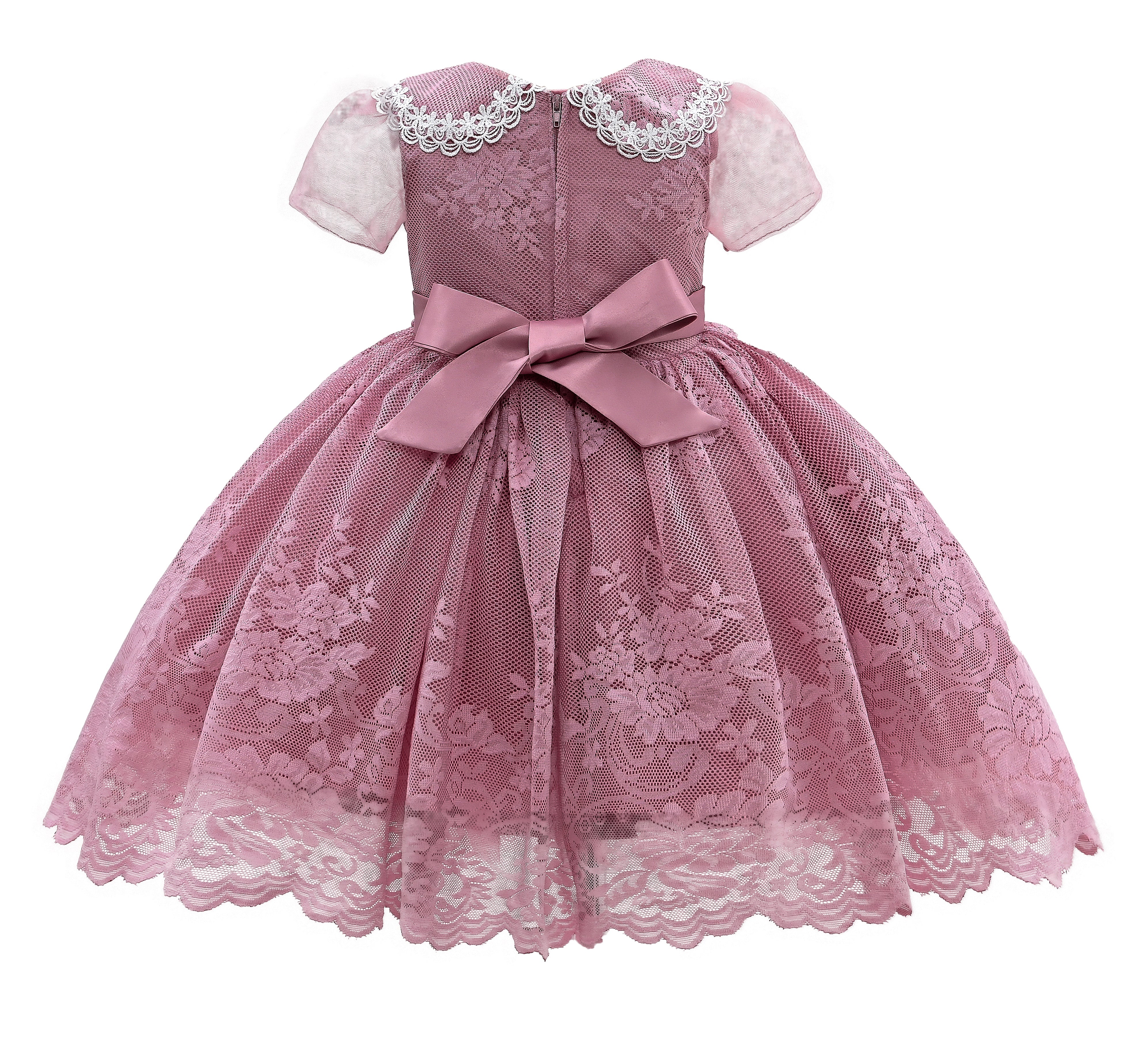 Furthermore, the true showstopper of this dress is its voluminous tulle skirt and satin bow in the back. This combination creates a dreamy silhouette with a captivating rose lace embroidered design on the tulle. Made from 100% polyester with a 100% cotton lining, this dress ensures both durability and comfort. Designed to be dry cleaned only, it maintains its pristine appearance over time. Overall, the Pink Rose Dolly Lace Embroidered Dress combines elegance, comfort, and enchanting design elements. This dress ensures your child looks and feels special at any event.