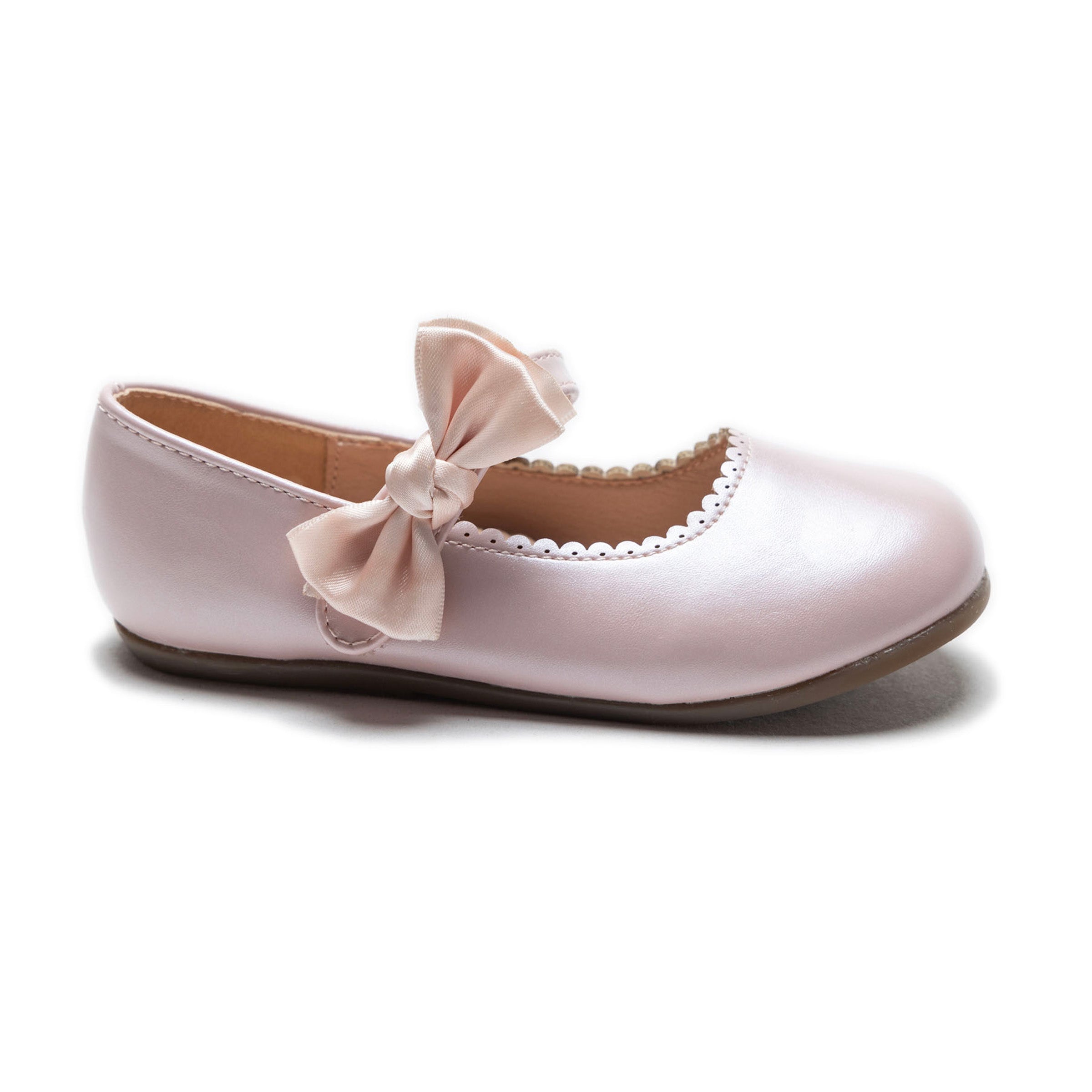 The Pink Satin Elodie Bow Flats by Tulleen are a must-have for any young fashionista. Blending sophistication with comfort, they bring a subtle shine and a delightful charm to every outfit, making them an essential addition to any wardrobe.