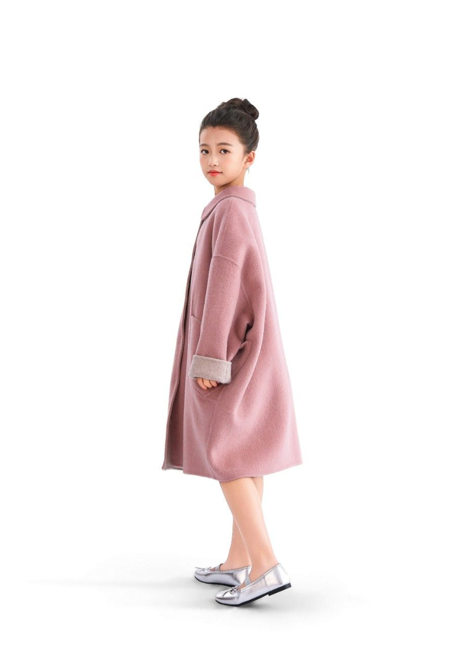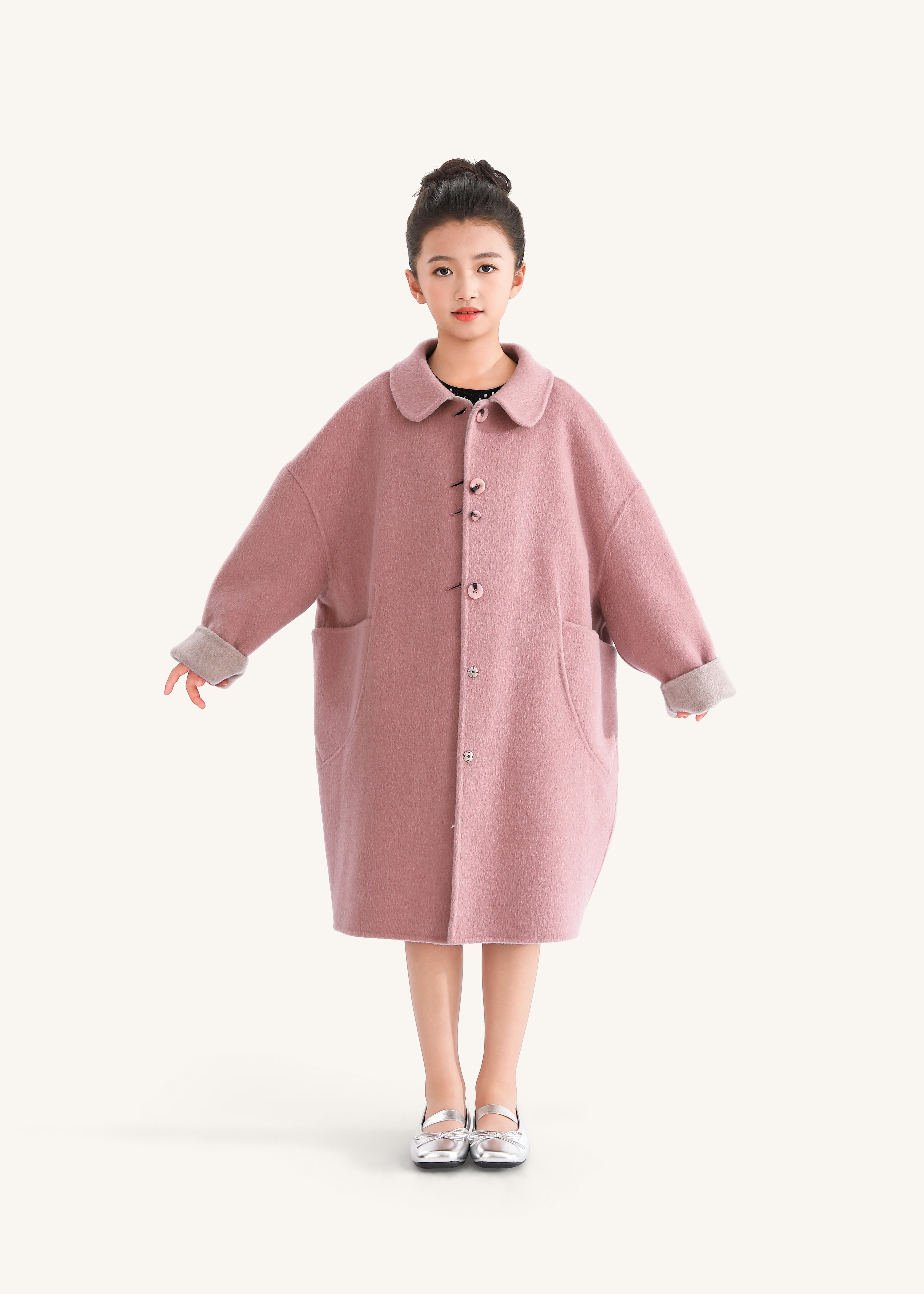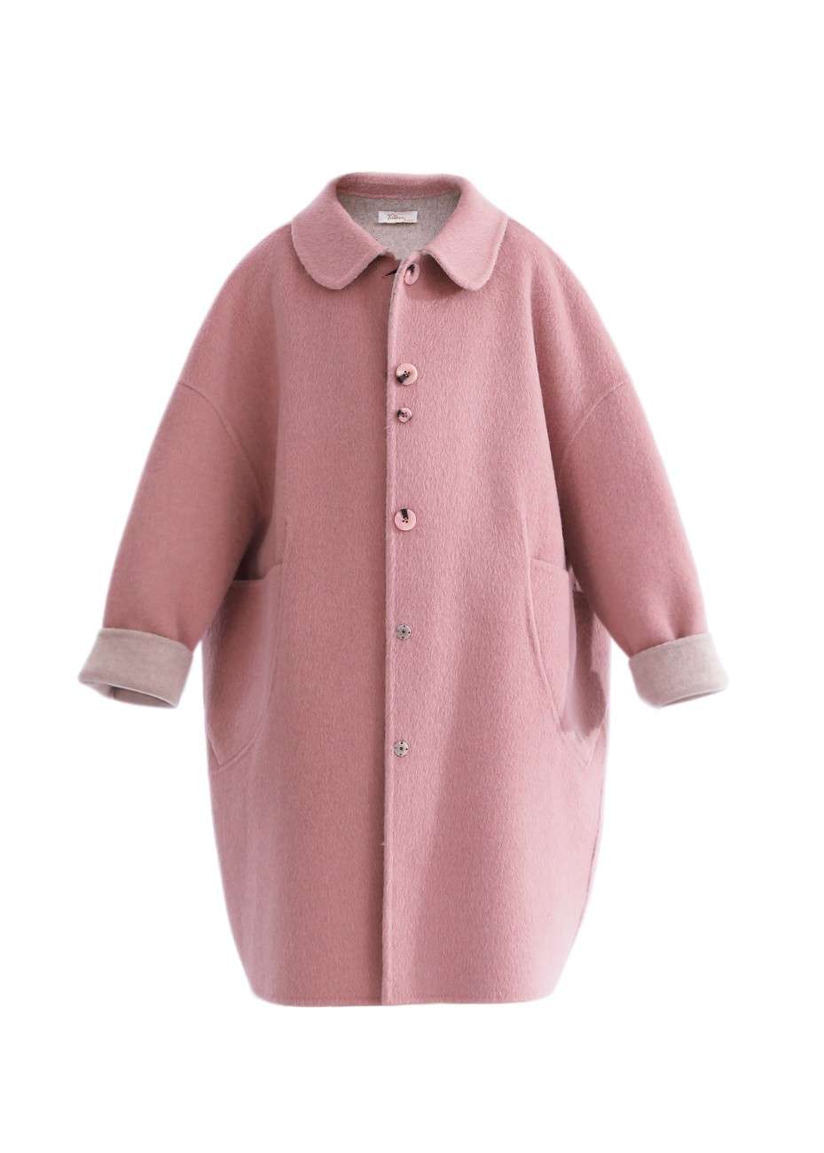 A timeless layer for cooler days, this pink wool coat blends classic charm with cozy comfort. Its oversized silhouette and soft texture make it a standout for stylish strolls and seasonal outings.