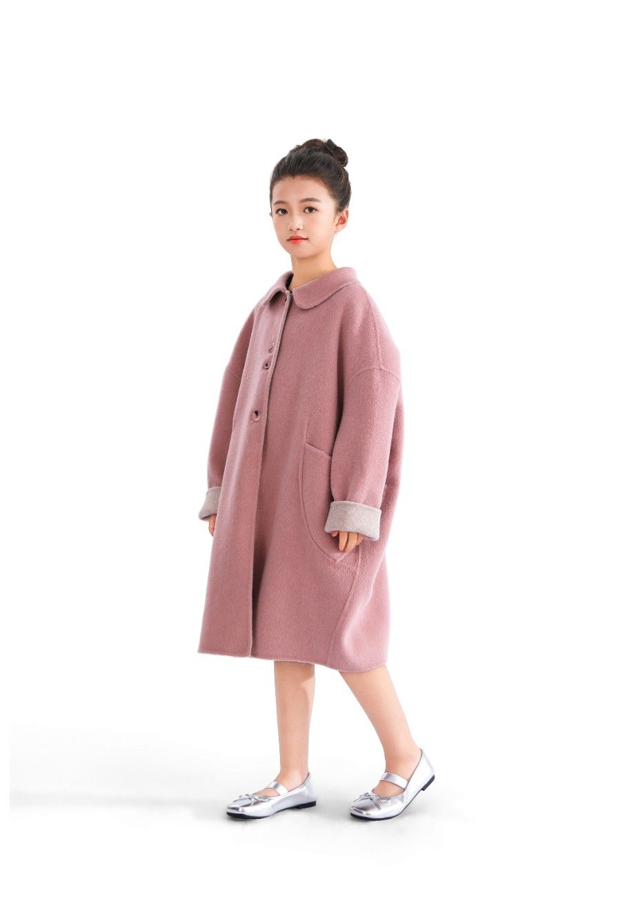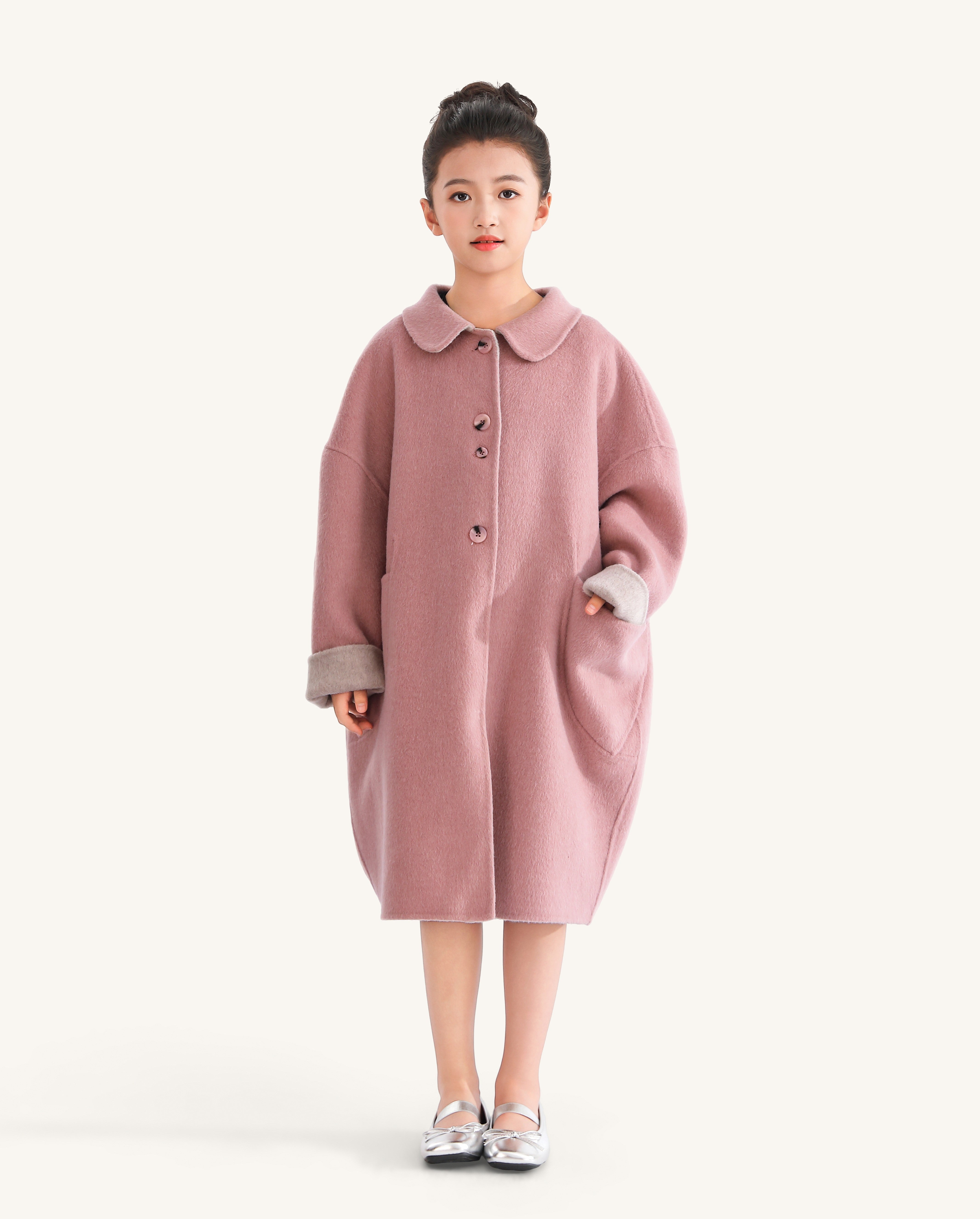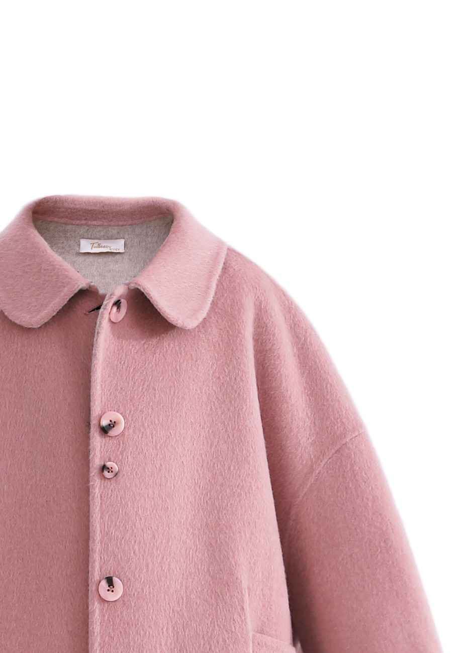 A timeless layer for cooler days, this pink wool coat blends classic charm with cozy comfort. Its oversized silhouette and soft texture make it a standout for stylish strolls and seasonal outings.